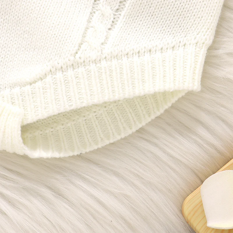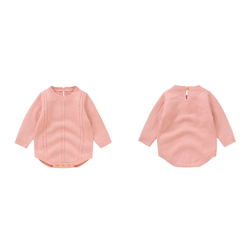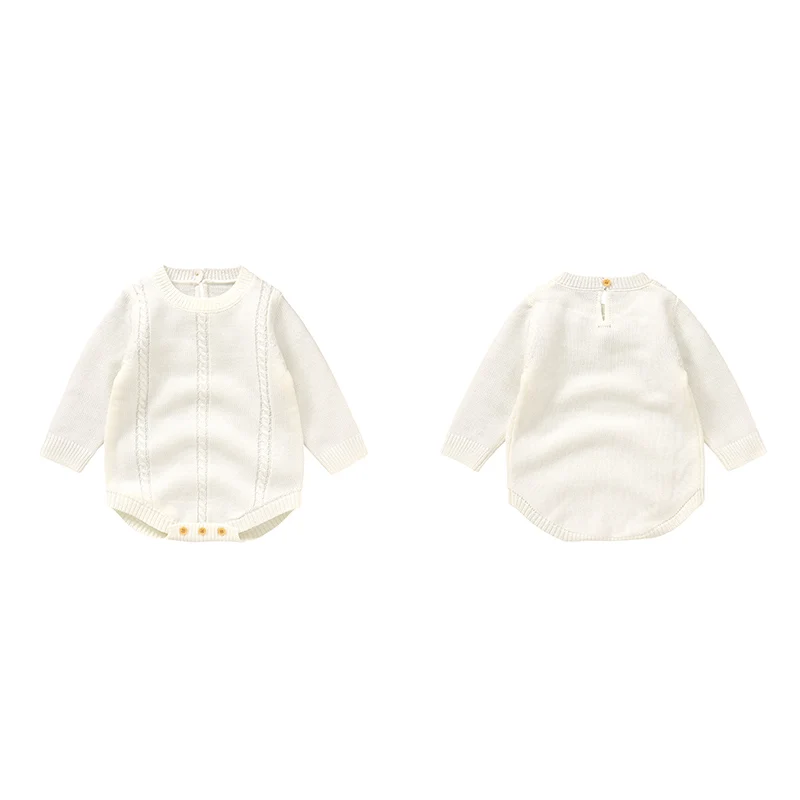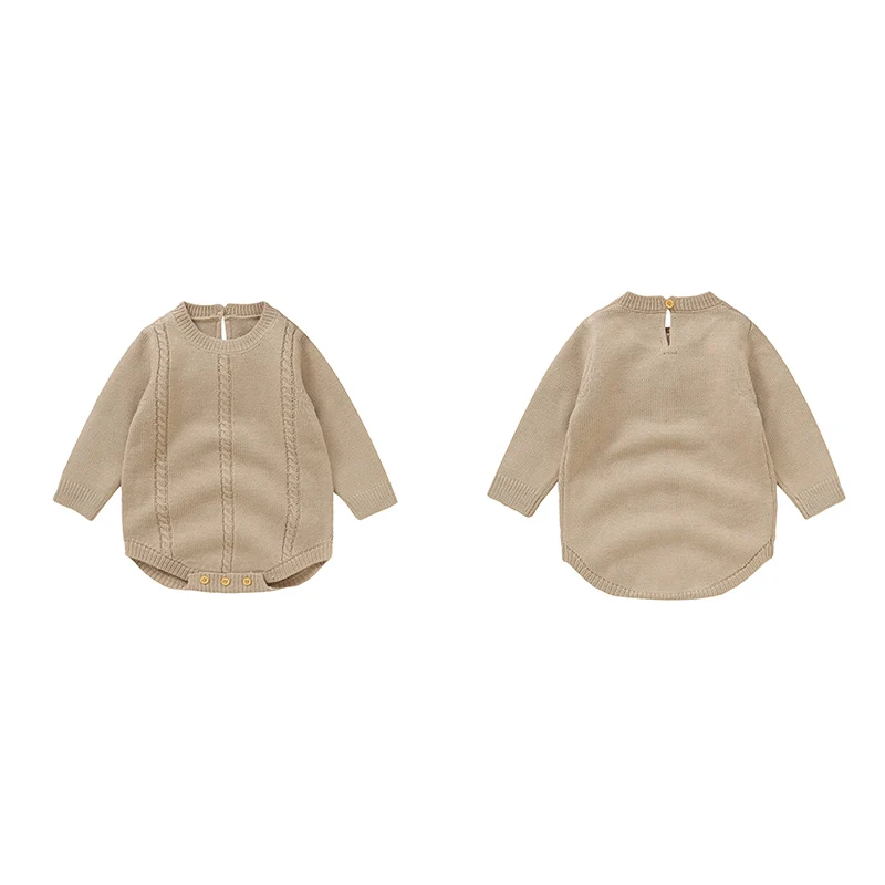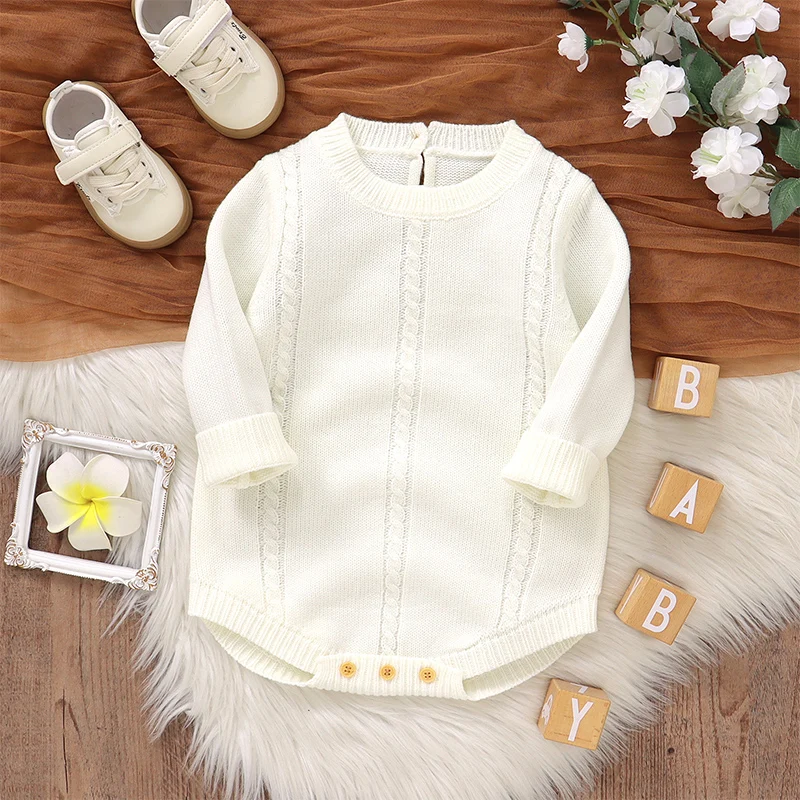 Suéter de bebé niña niño mameluco Color sólido cuello redondo manga larga Cable tejido Mono para invierno otoño