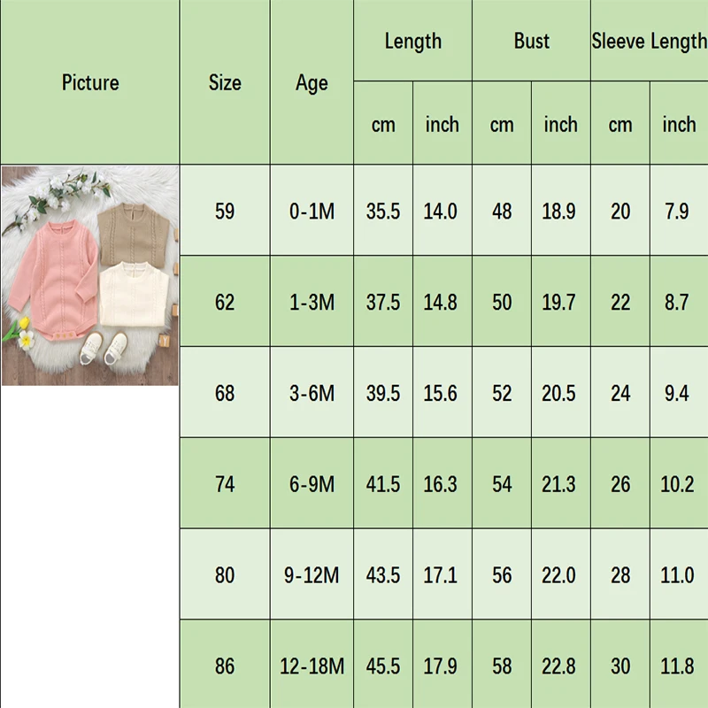 59 Longitud: 35,5 Busto: 48 Manga: 20 Edad recomendada: 0-1 meses
