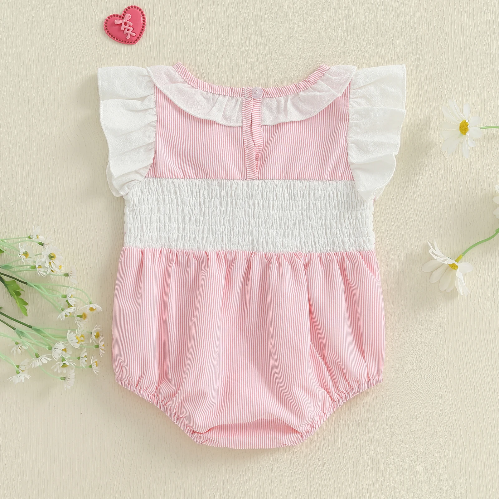 Comprar VISgogo-Pelele de verano para niña de 0 a 18 meses, mono con manga aleteo y cuello redondo con Bordado de letras, mono a rayas con burbujas