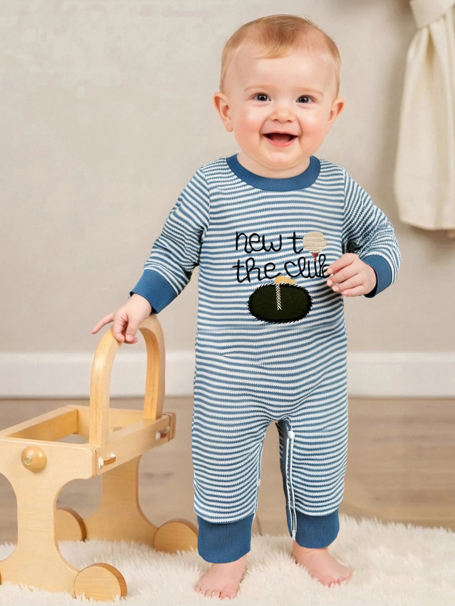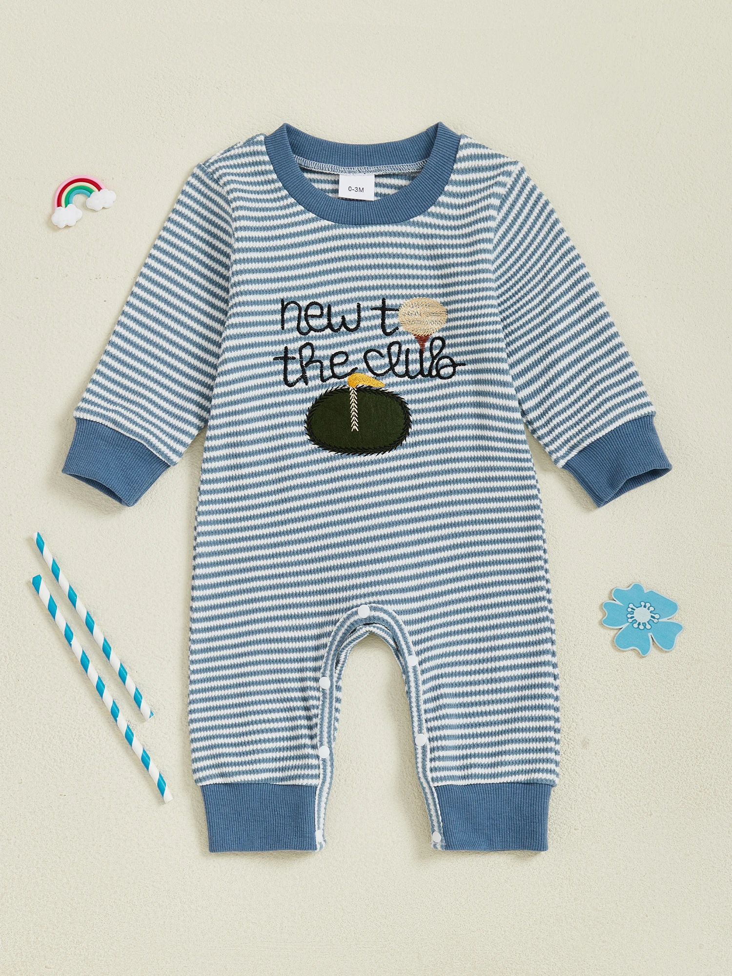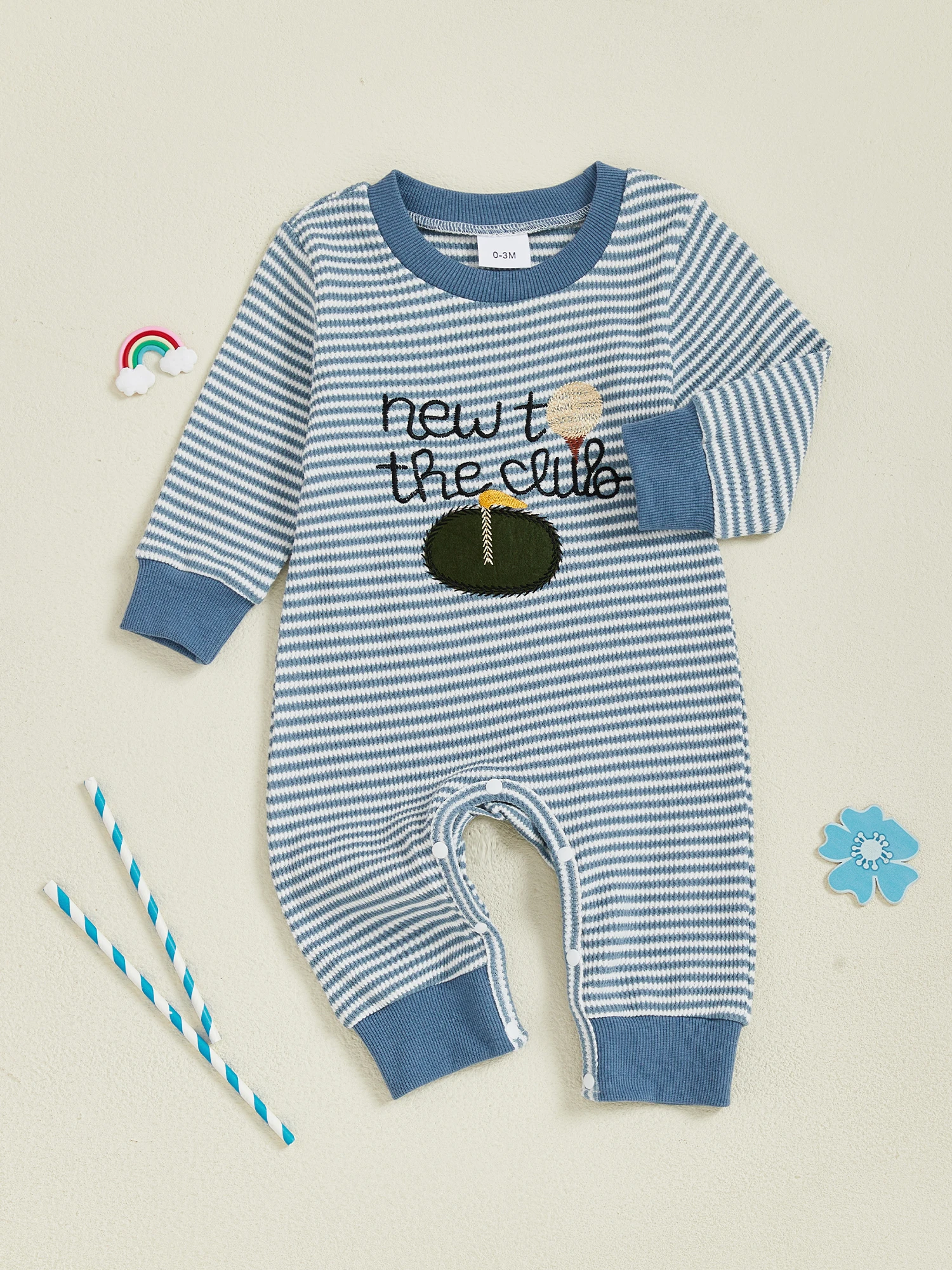 Especificación: Nombre: mamelucos para bebés Género: bebés niños Material: 96% algodón, 4% elastano Patrón: bordado de letras de golf.