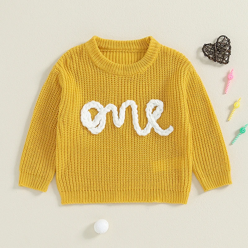 Comprar VISgogo-suéter de manga larga para niño y niña recién nacido, Jersey cálido de punto con bordado de letras, prendas de punto informales, 0-18 meses