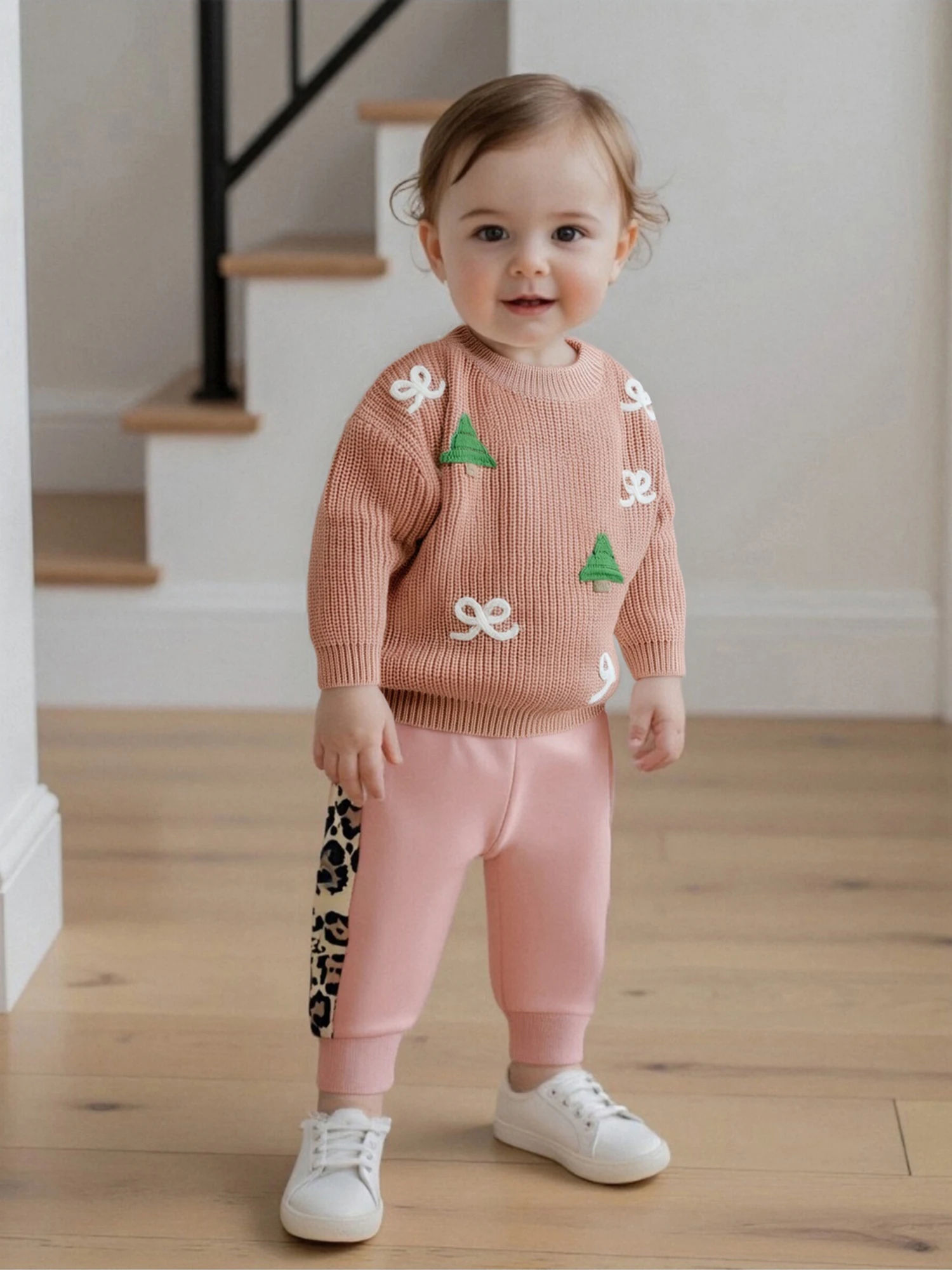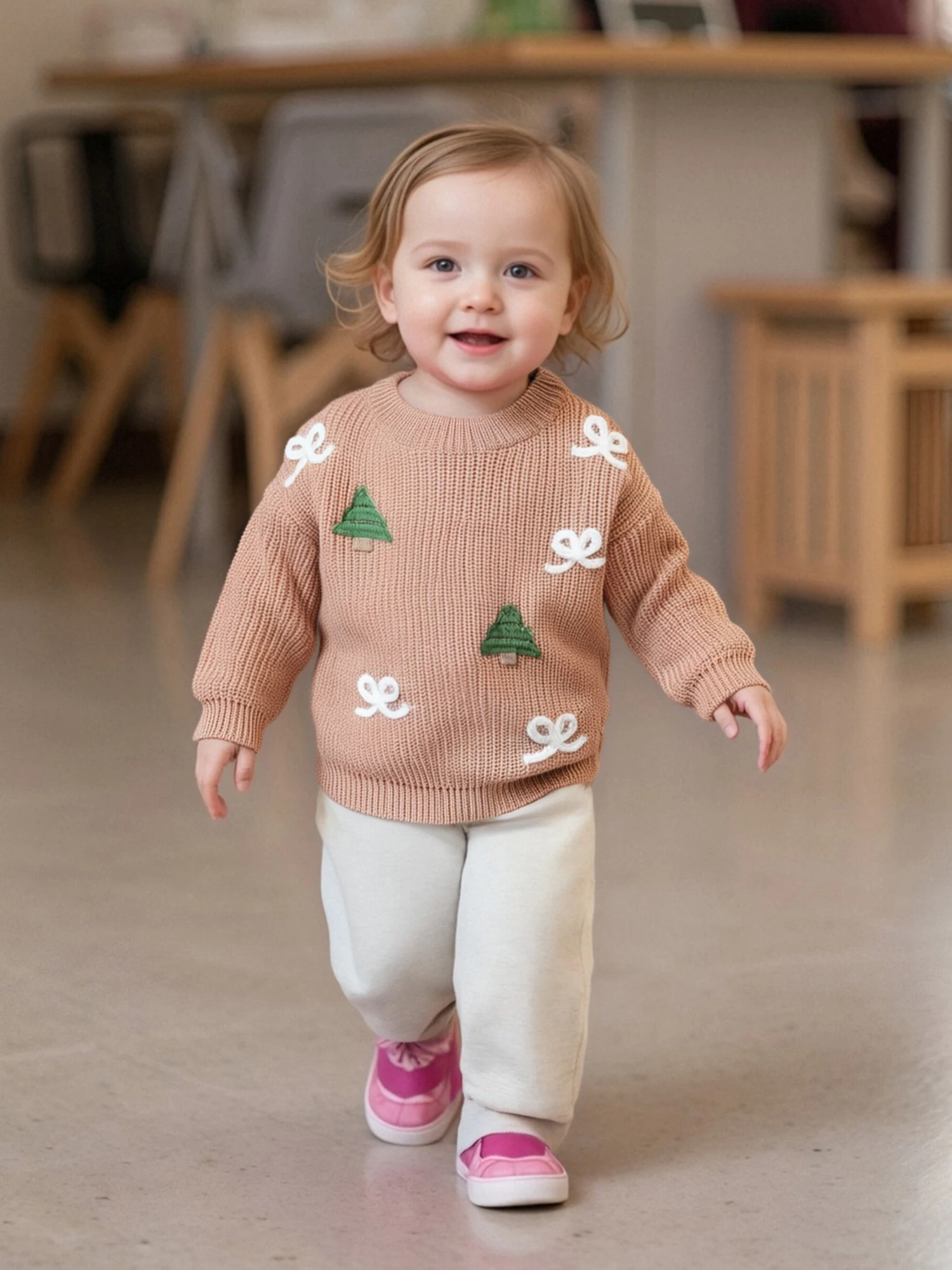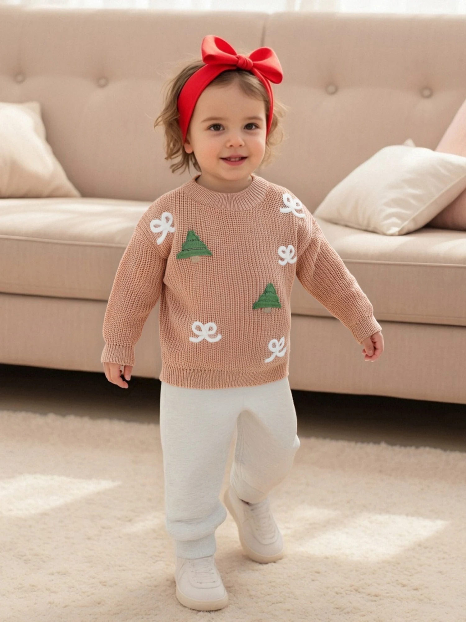 Especificaciones: Material: 95% algodón y 5% poliéster Color: multicolor Tamaño: 3-6 meses/6-9 meses/9-12 meses/12-18 meses/18-24 meses/2-3 años/3-4 años Patrón: Árbol de Navidad con lazo bordado Manga: manga larga Cuello: cuello redondo Género: bebé pequeño