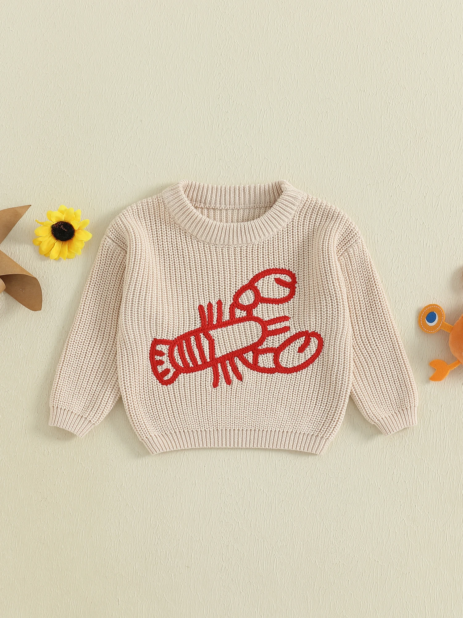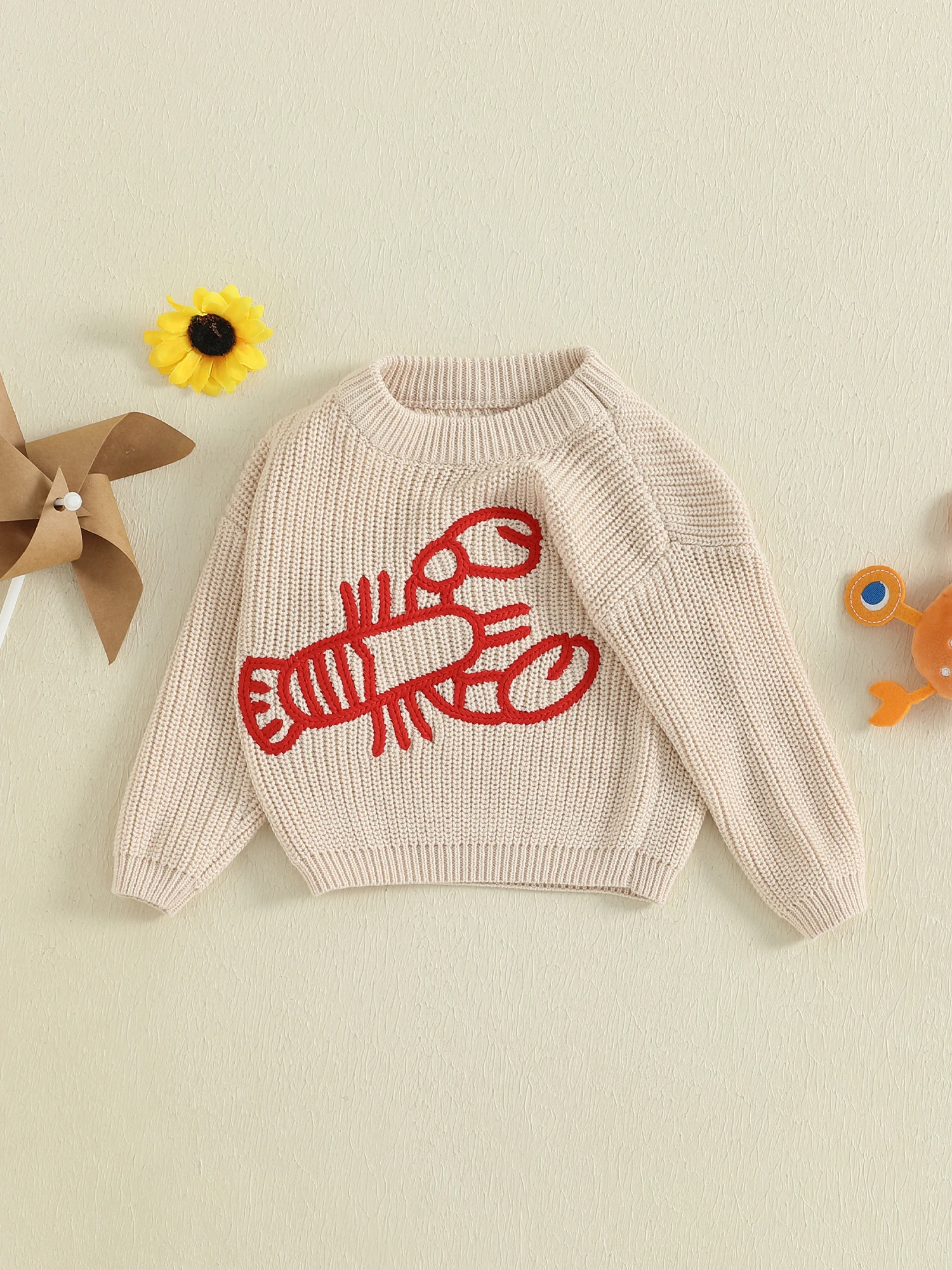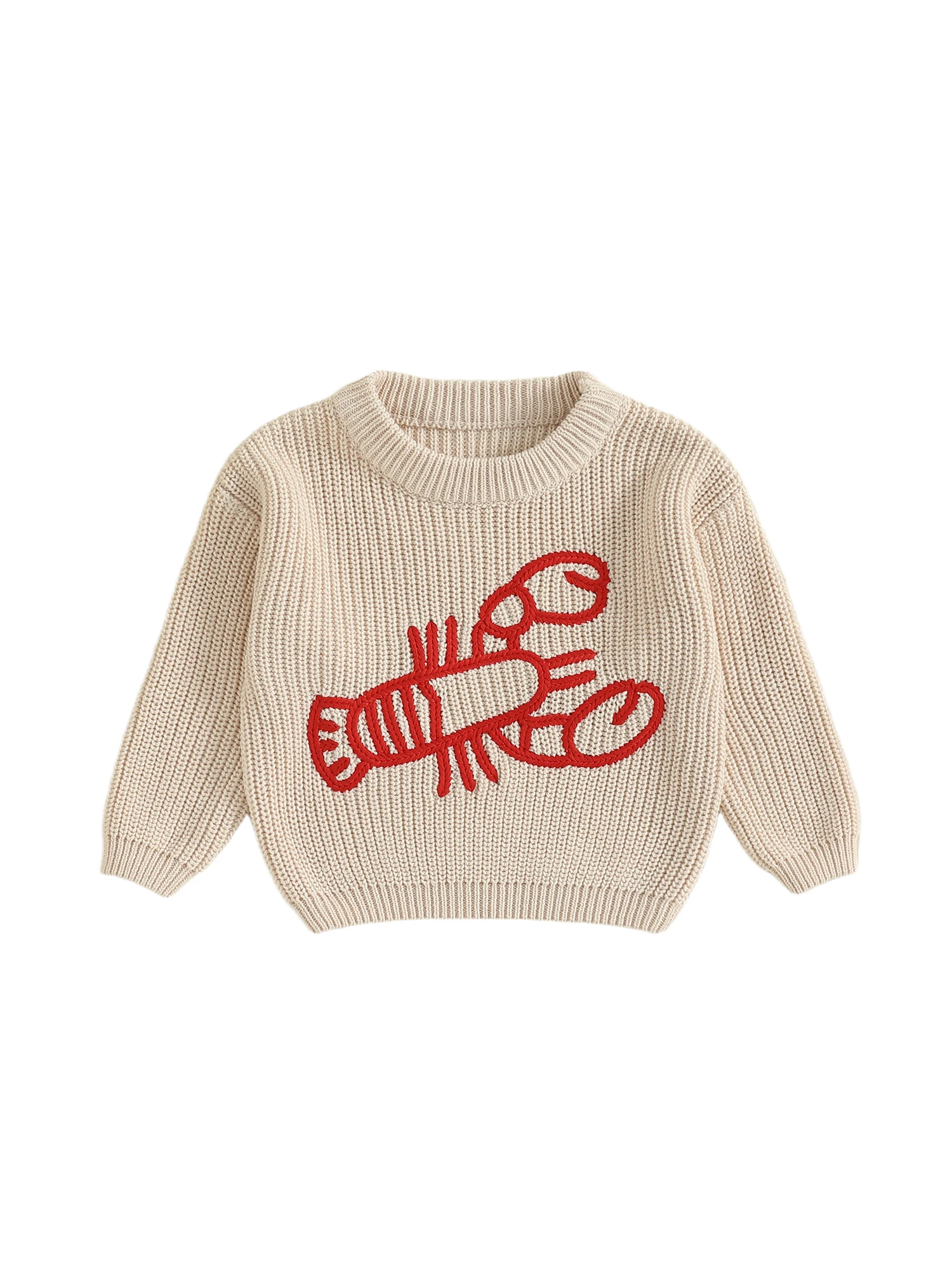 Suéter para niños, suéter de invierno cálido de manga larga con cuello redondo y cangrejos para niñas y niños
