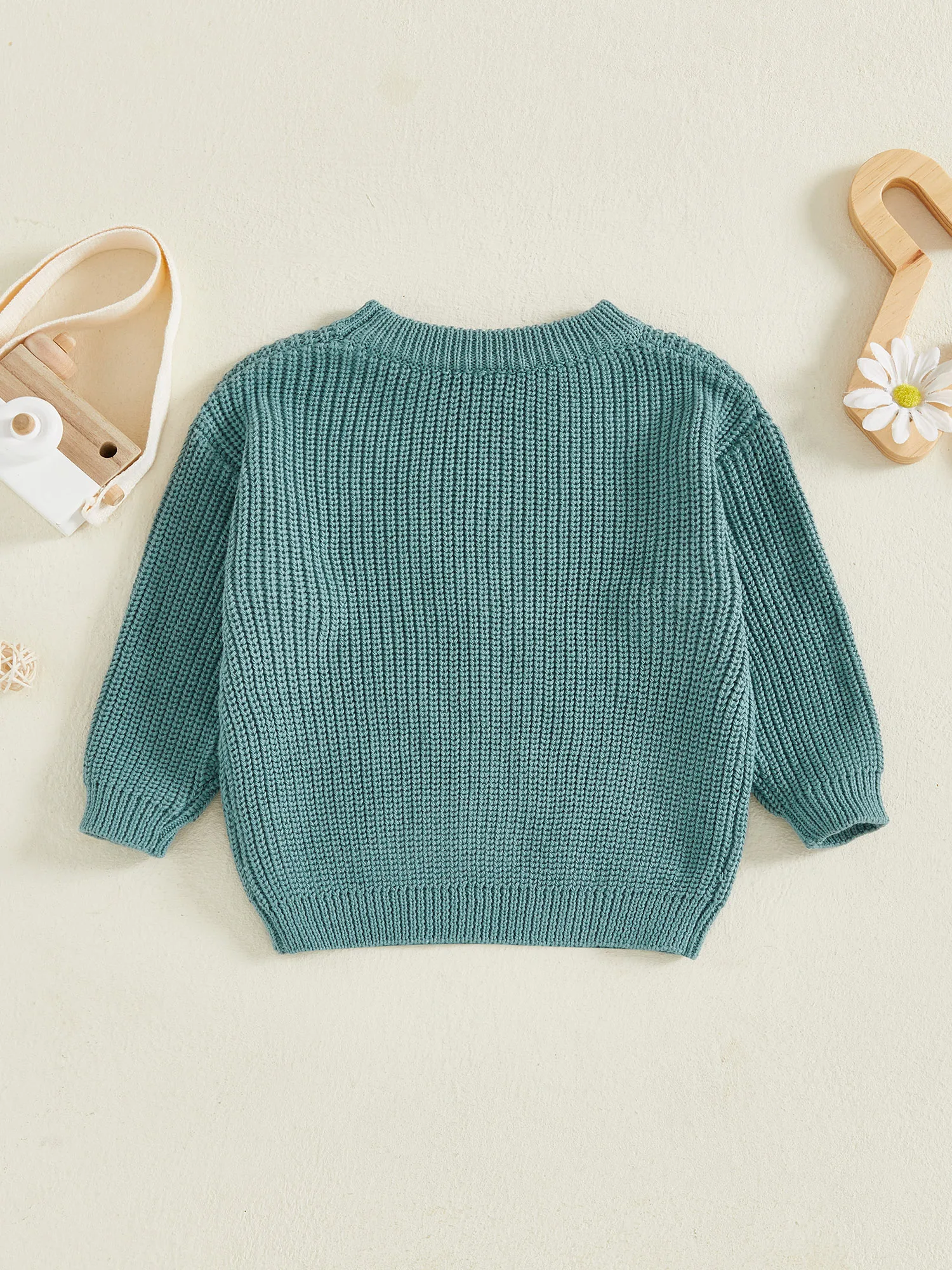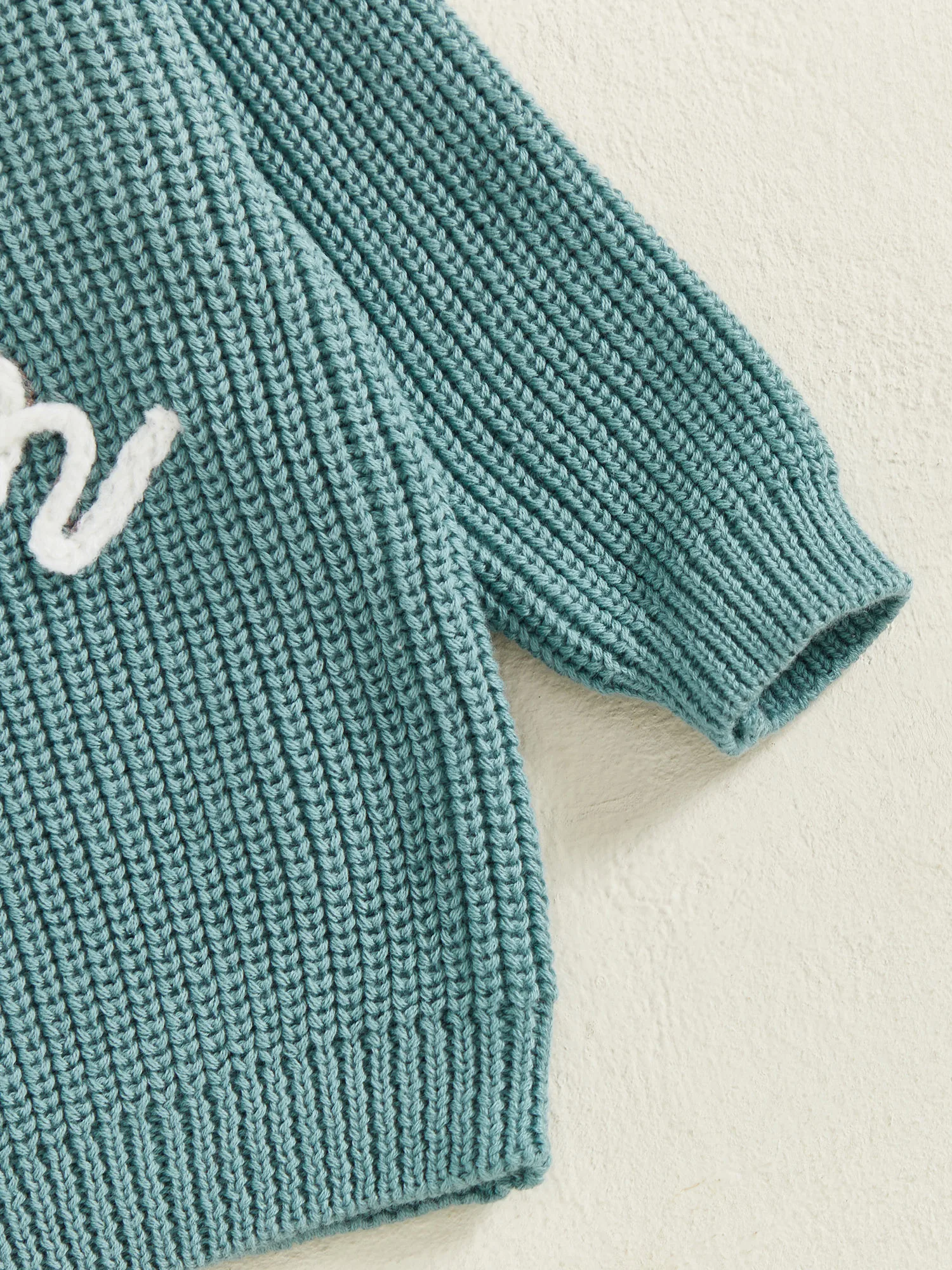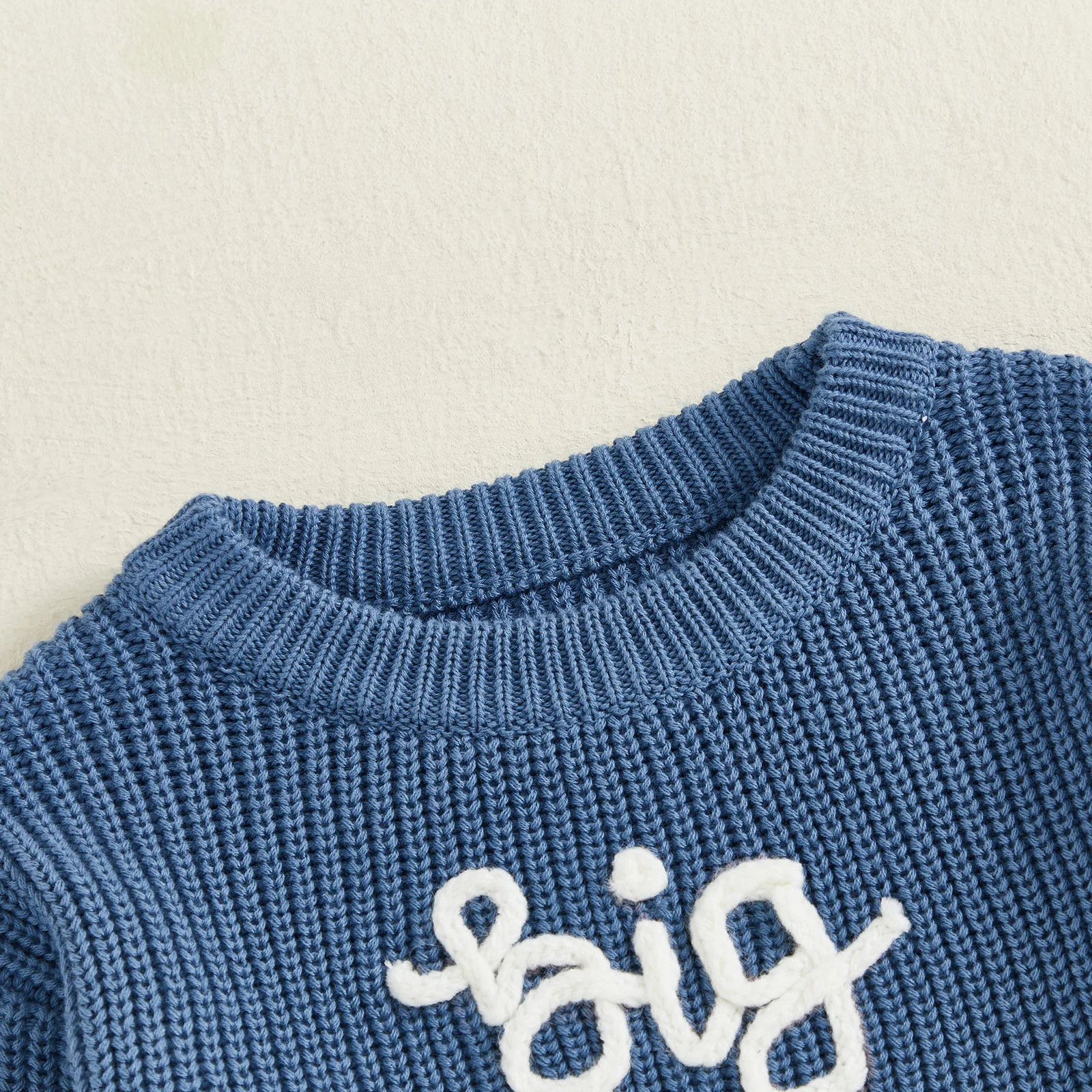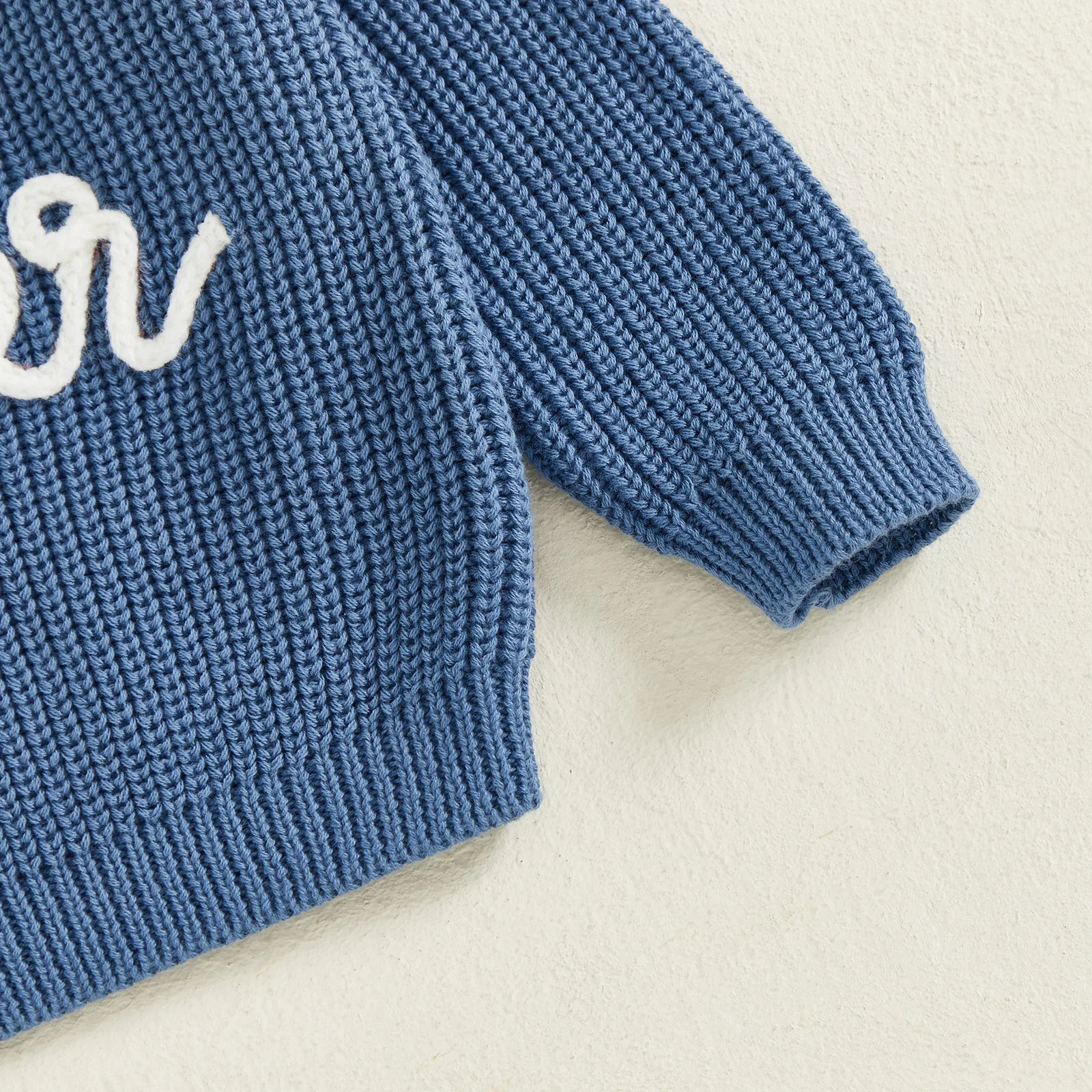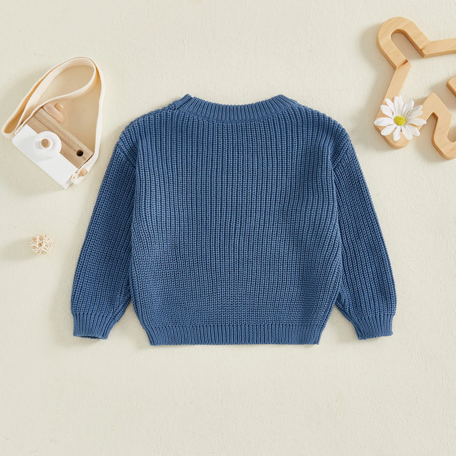 Comprar VISgogo Suéter de otoño para niño pequeño con letras bordadas, cuello redondo, manga larga, jersey de punto grueso