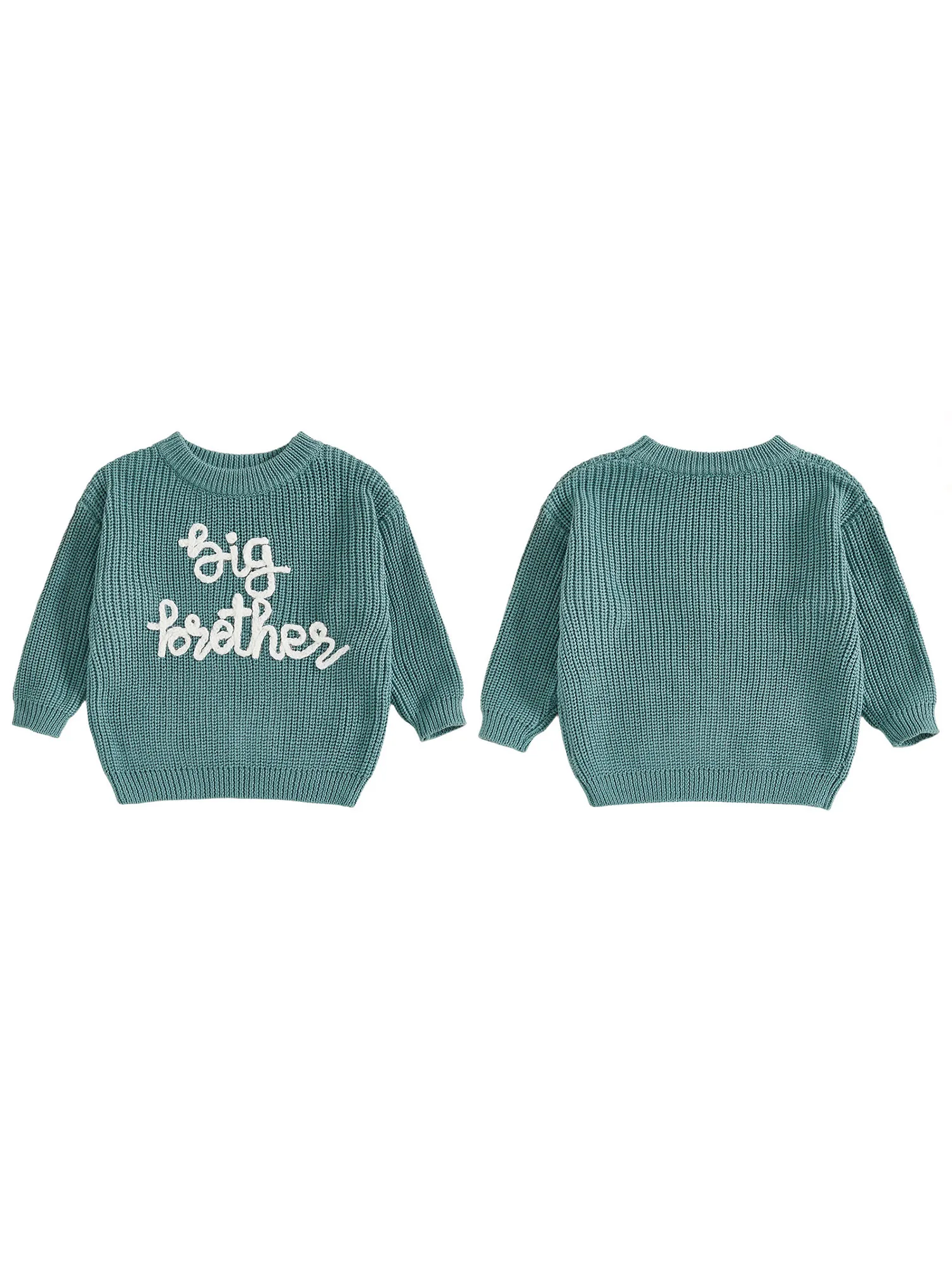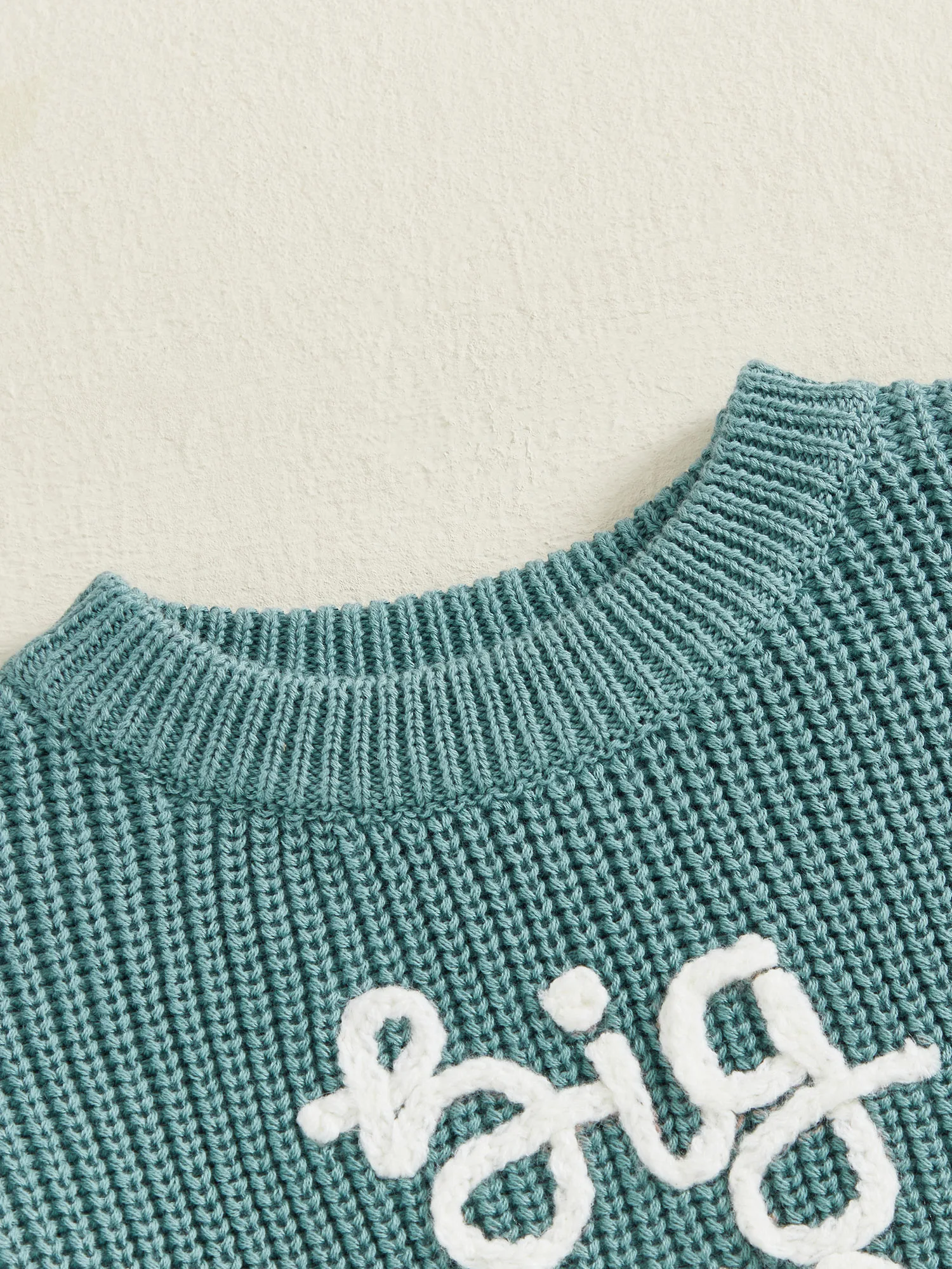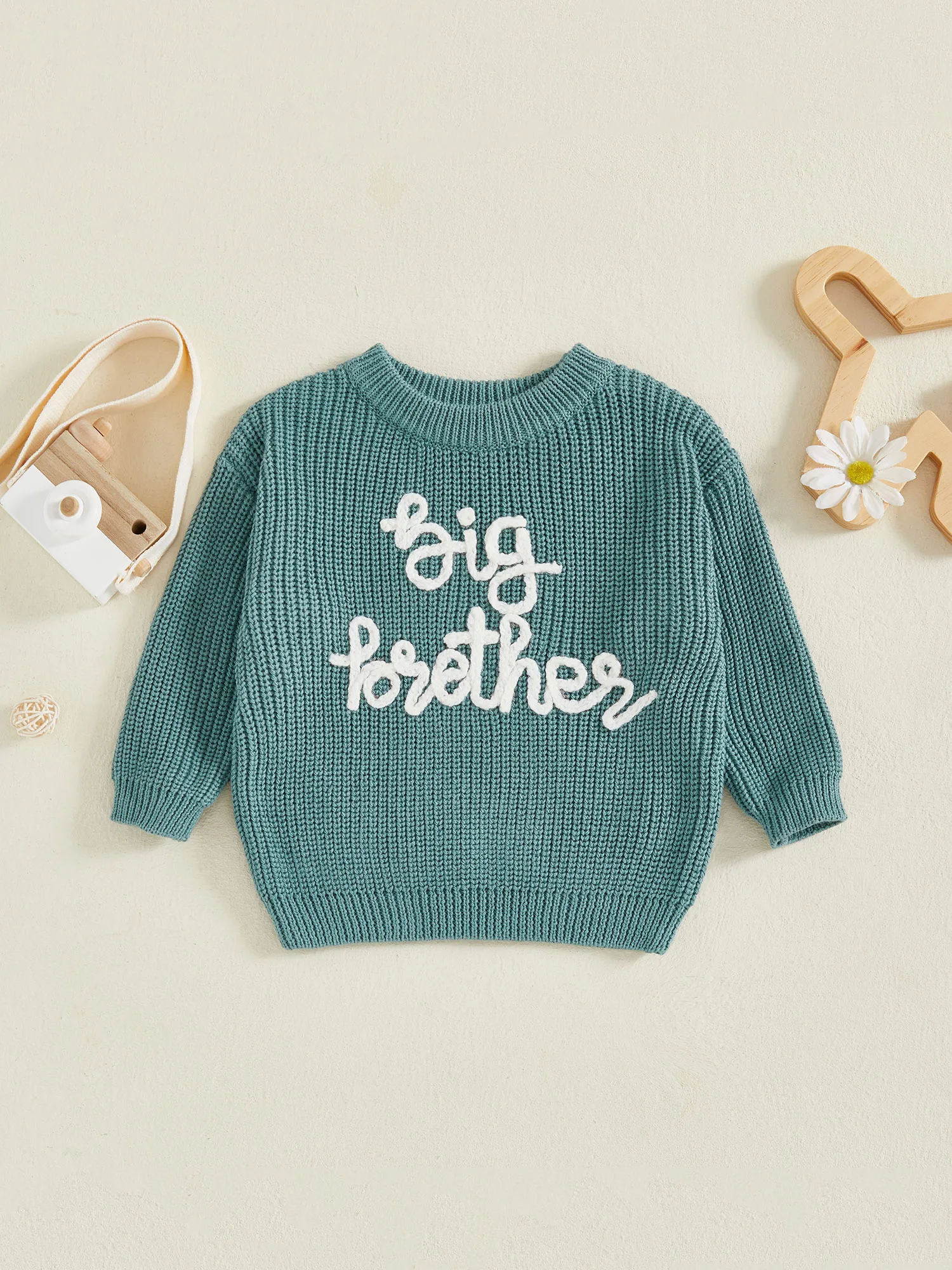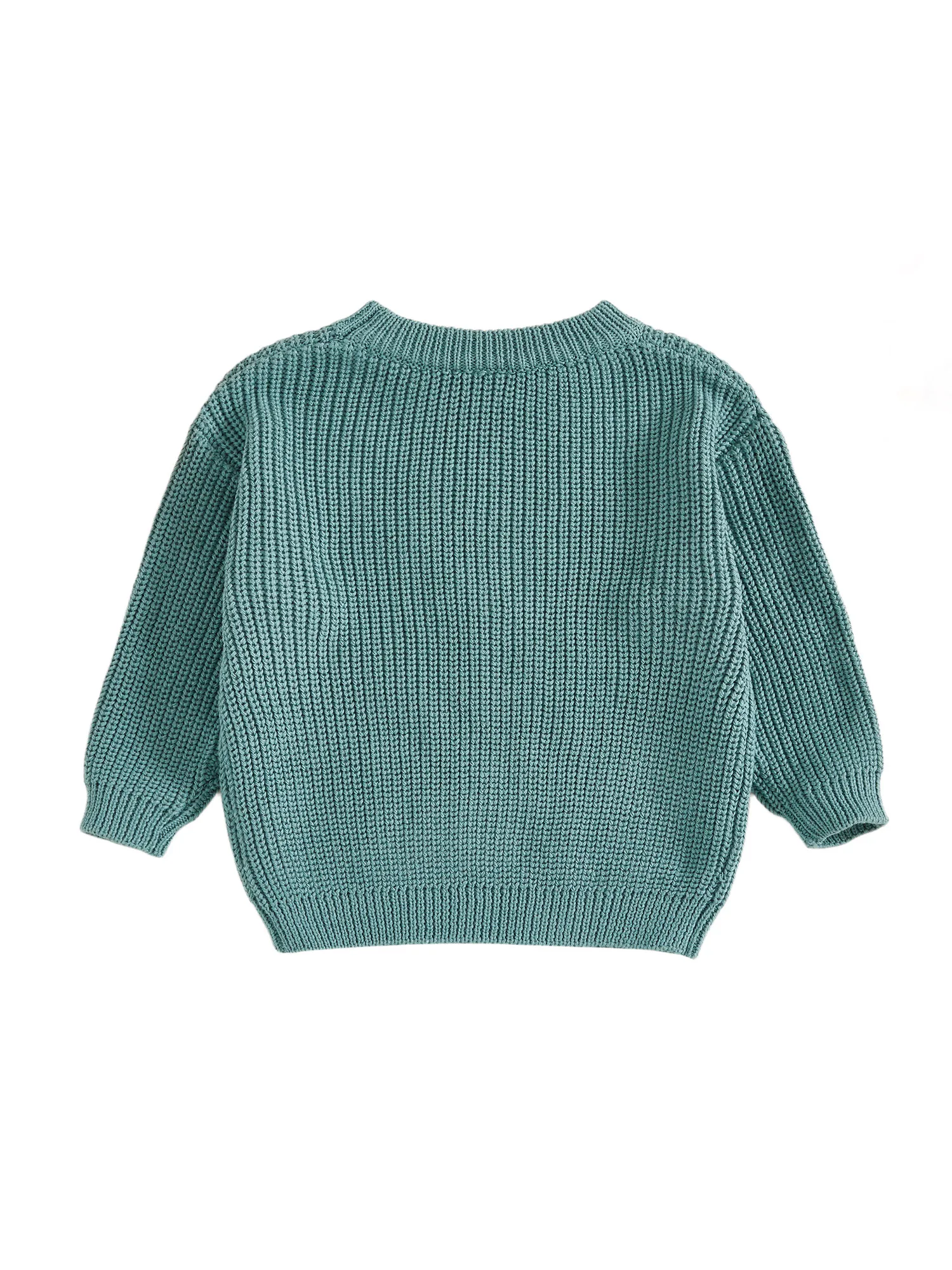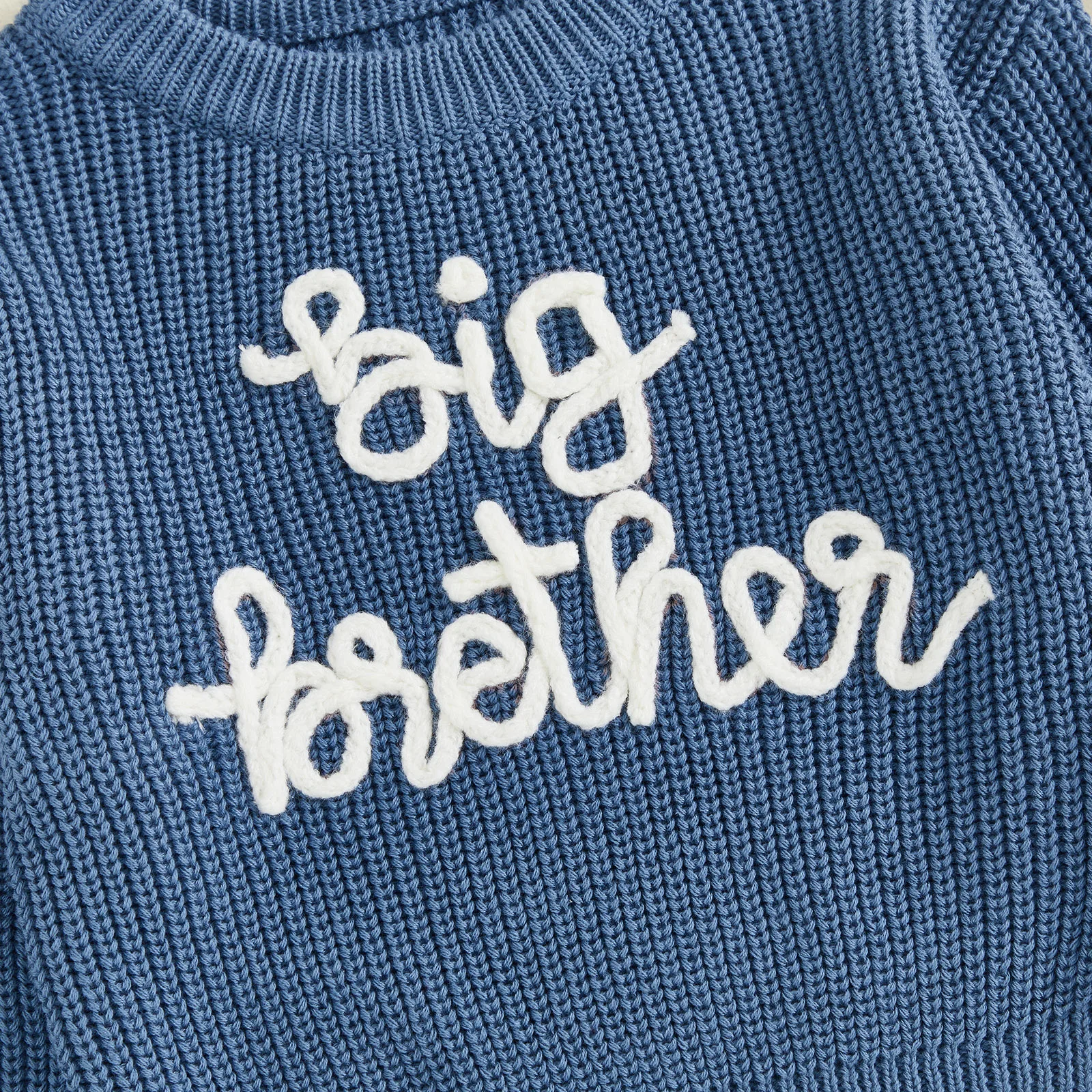Comprar VISgogo Suéter de otoño para niño pequeño con letras bordadas, cuello redondo, manga larga, jersey de punto grueso