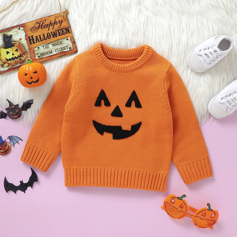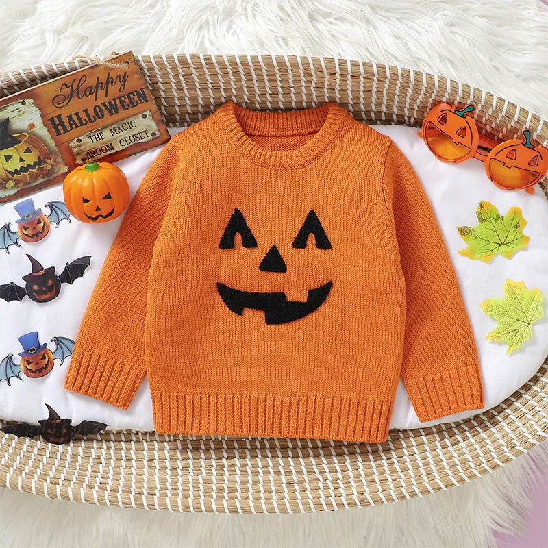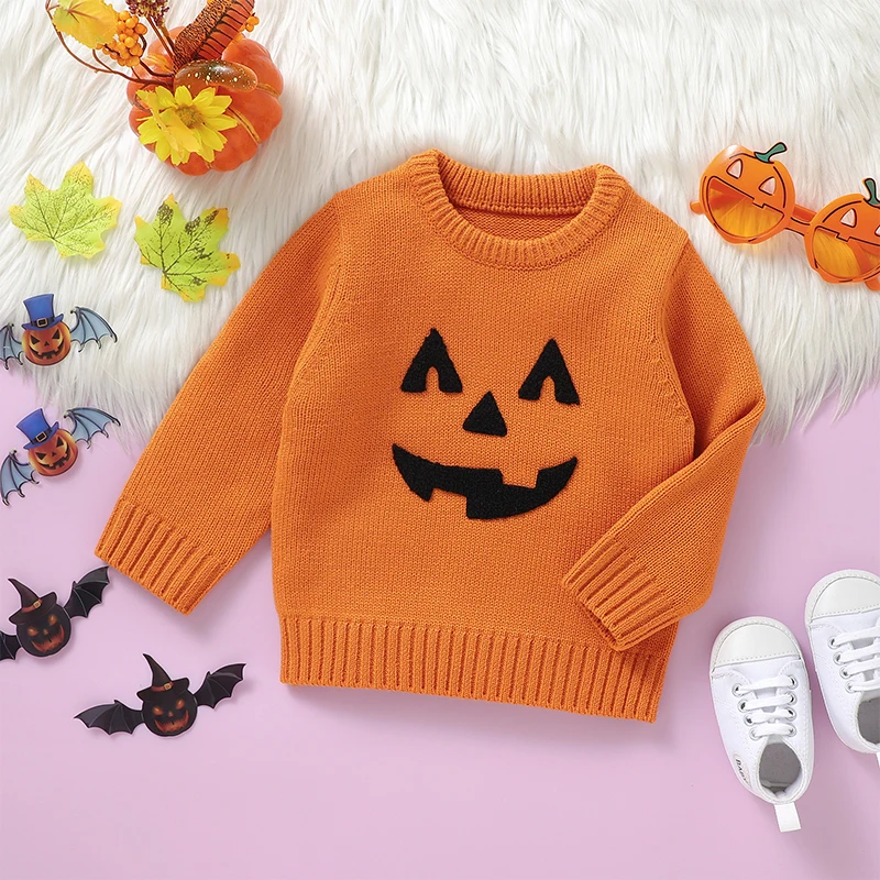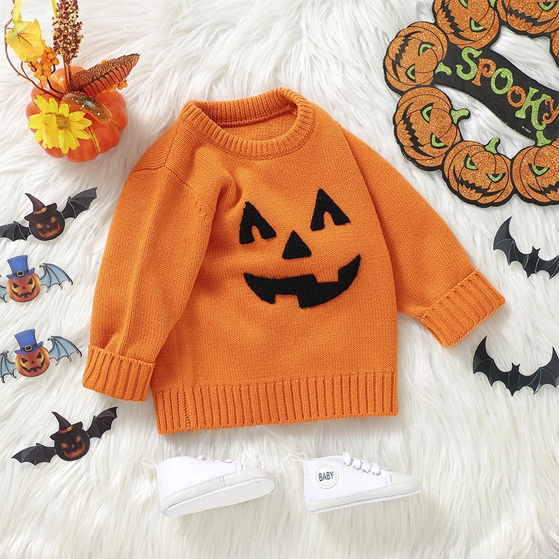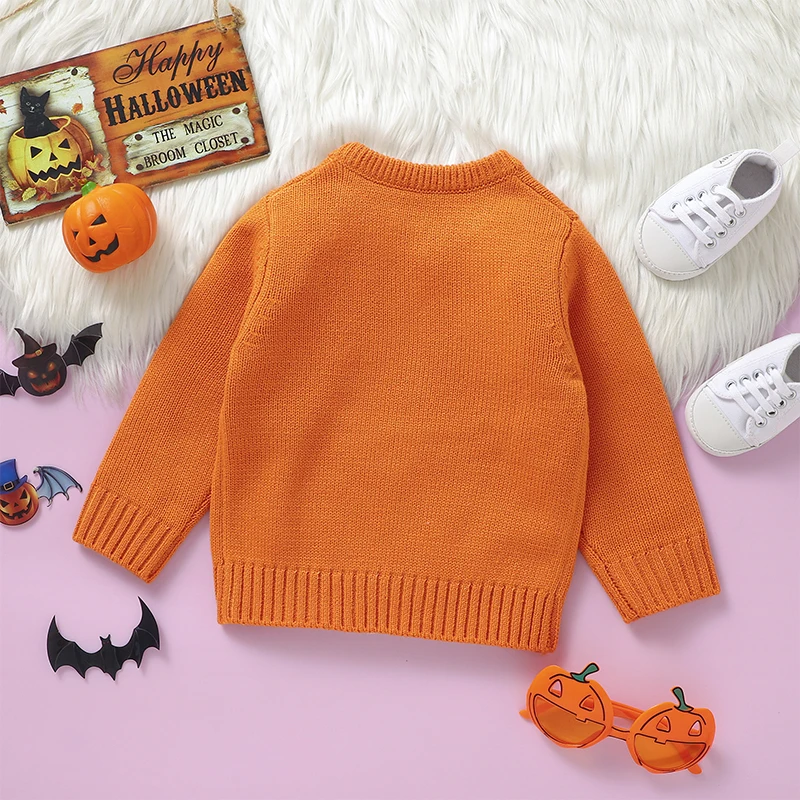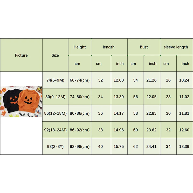 Especificaciones: Material: acrílico 100% Patrón: calabaza de bruja Edad sugerida: 6-9 meses/9-12 meses/12-18 meses/18-24 meses/2-3 años Manga: manga larga