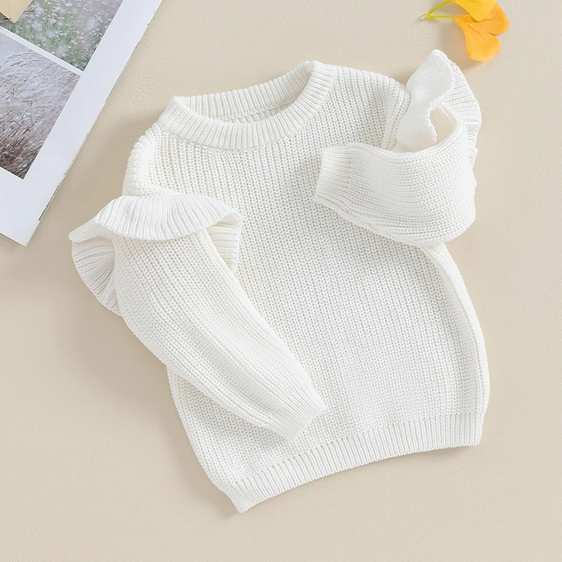 Suéteres para niña, Jersey de punto de Color sólido de manga larga con volantes bonitos, Tops sueltos para niño pequeño