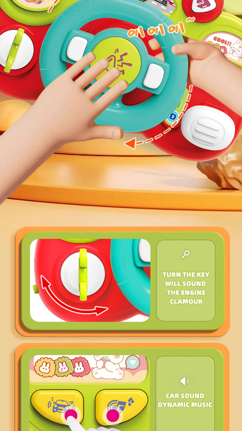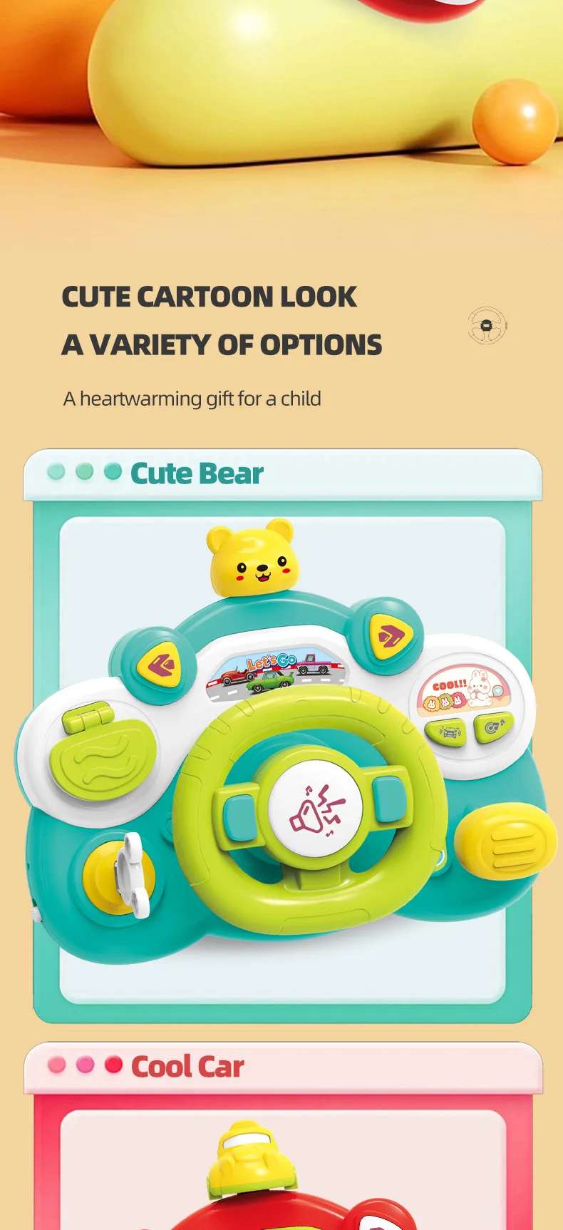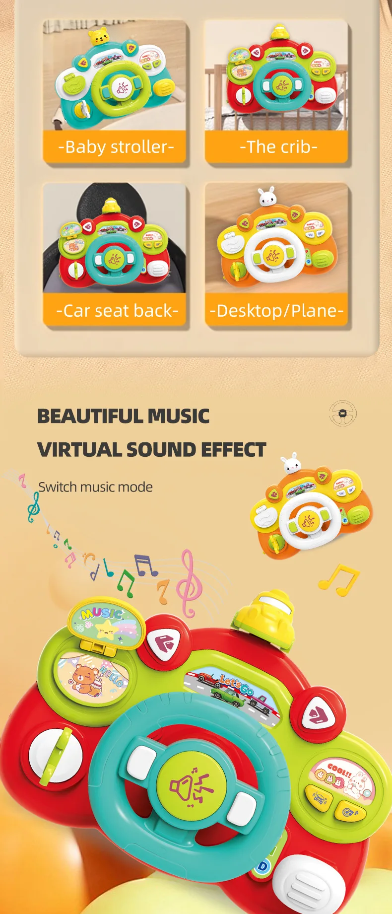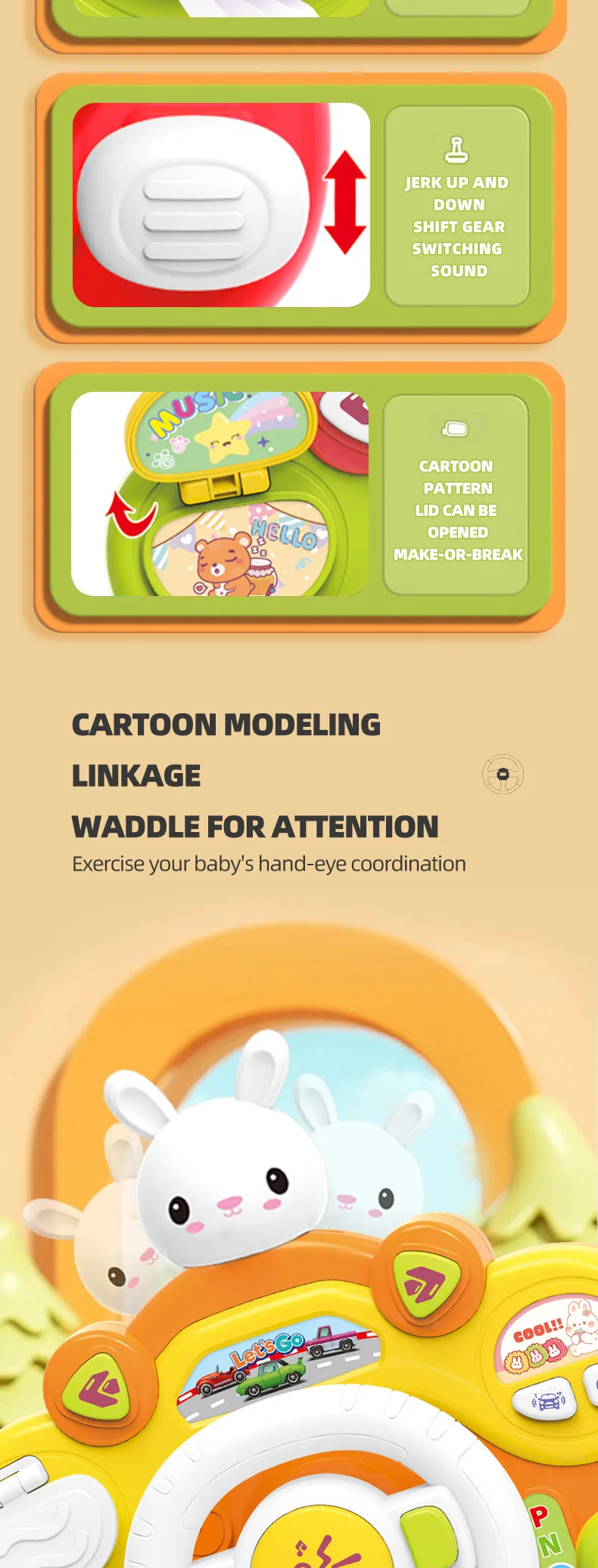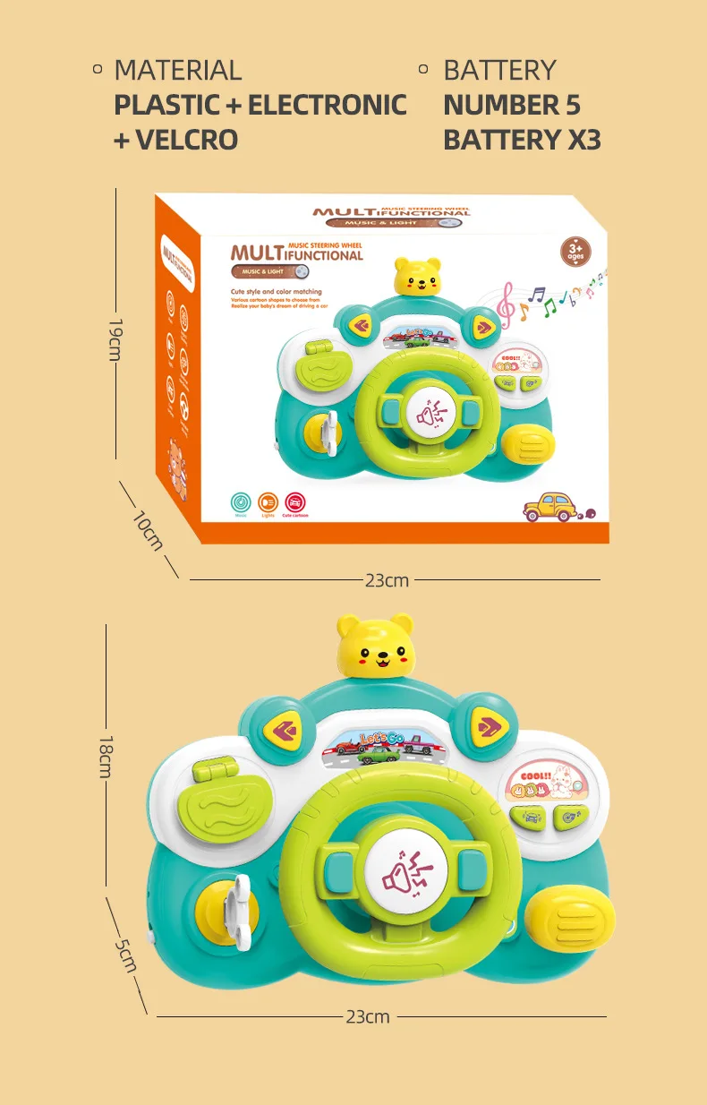 Comprar Volante de simulación para niños, juguete multifuncional de dibujos animados, simulación de coche, conducción, música, rompecabezas para bebé, regalo de educación temprana
