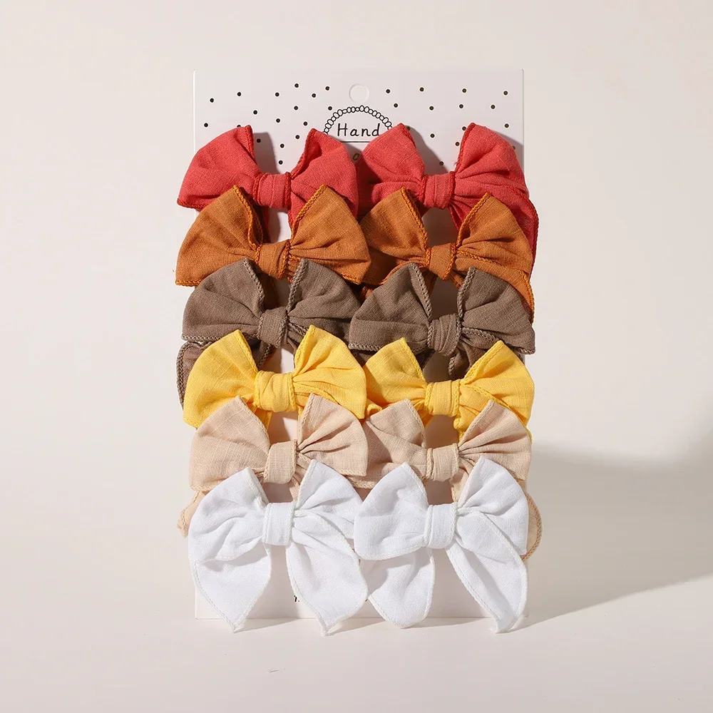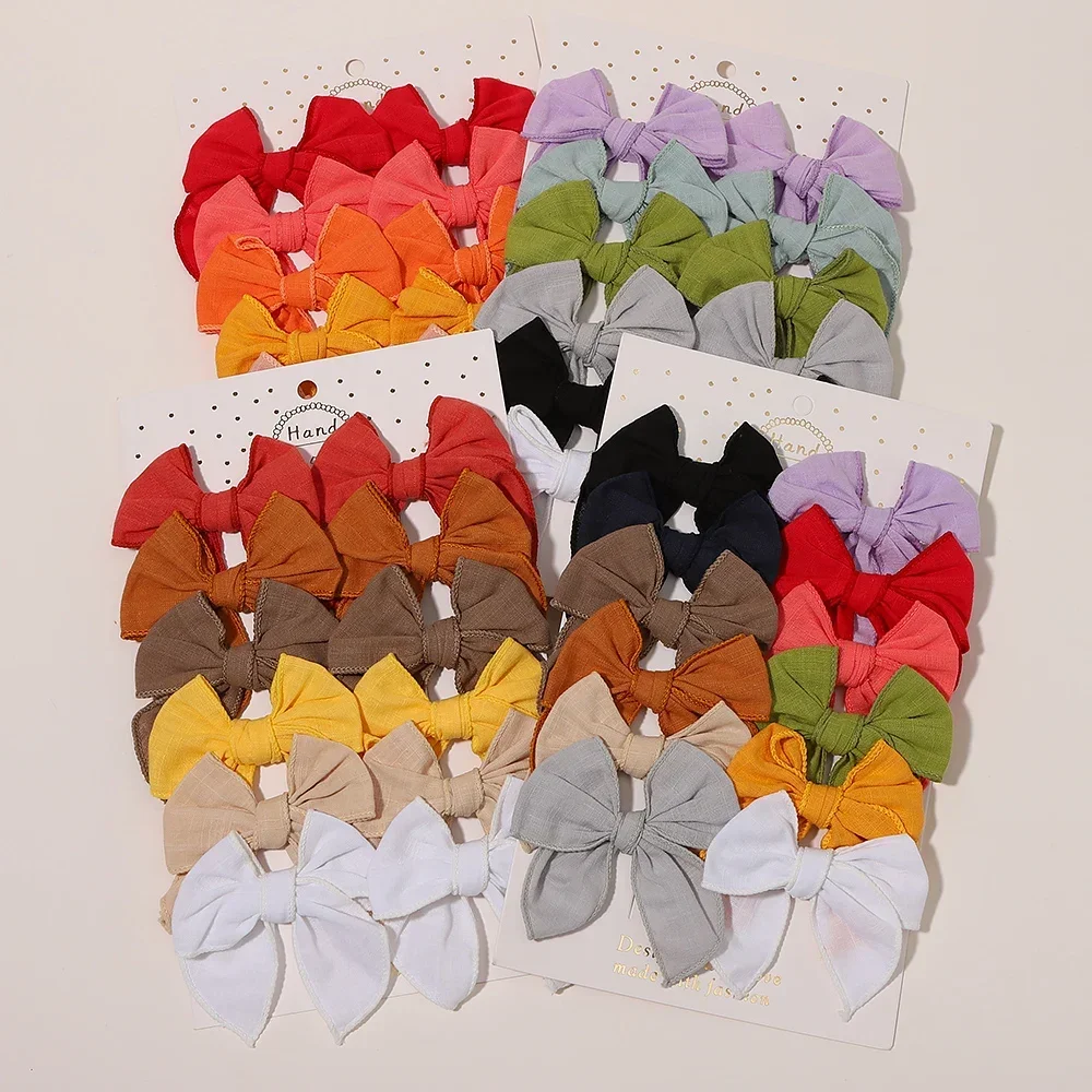 Weet-Pinzas para el pelo de algodón para niña, lazos sólidos hechos a mano, horquilla con lazo, pasador, accesorios para el cabello para niño, venta al por mayor, 12 unidades por juego