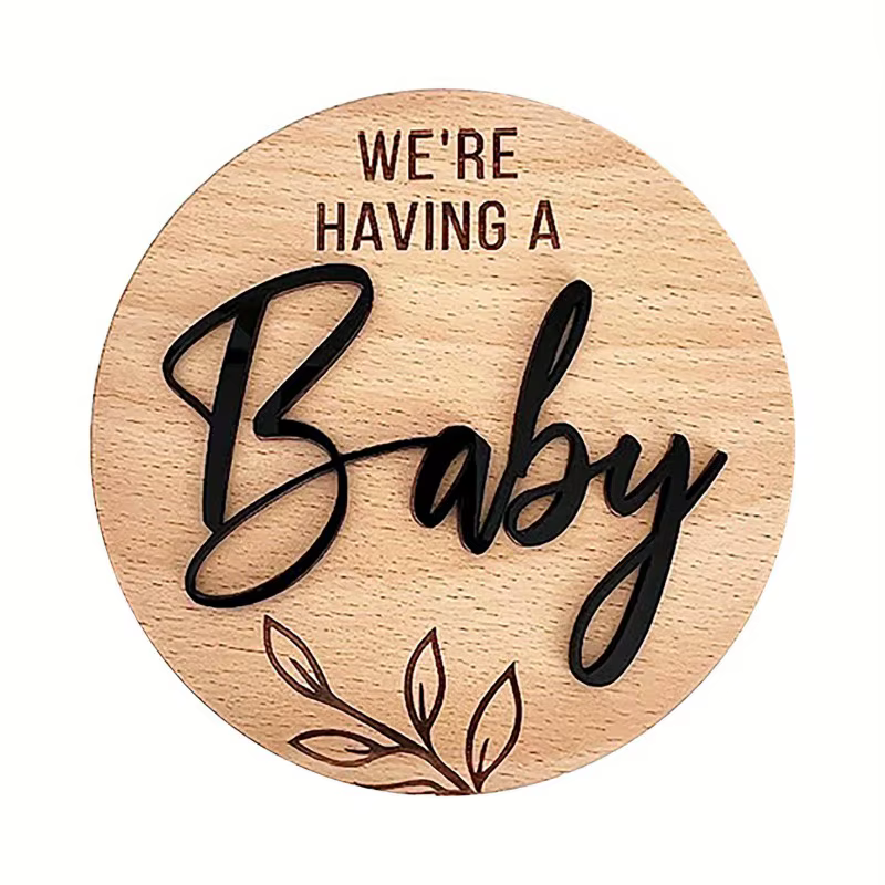 We're Having-señal de anuncio embarazo para bebé, disco madera redondo, decoración maternidad, utilería sesión fotos