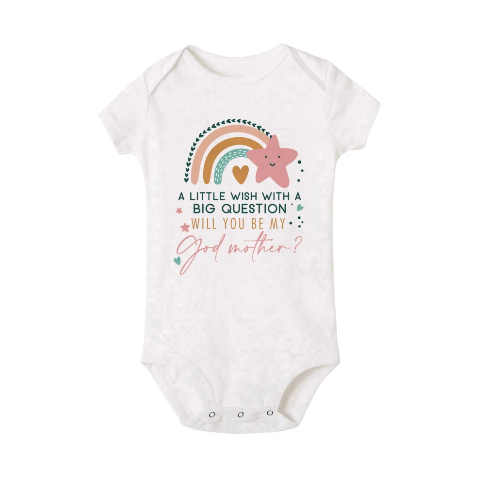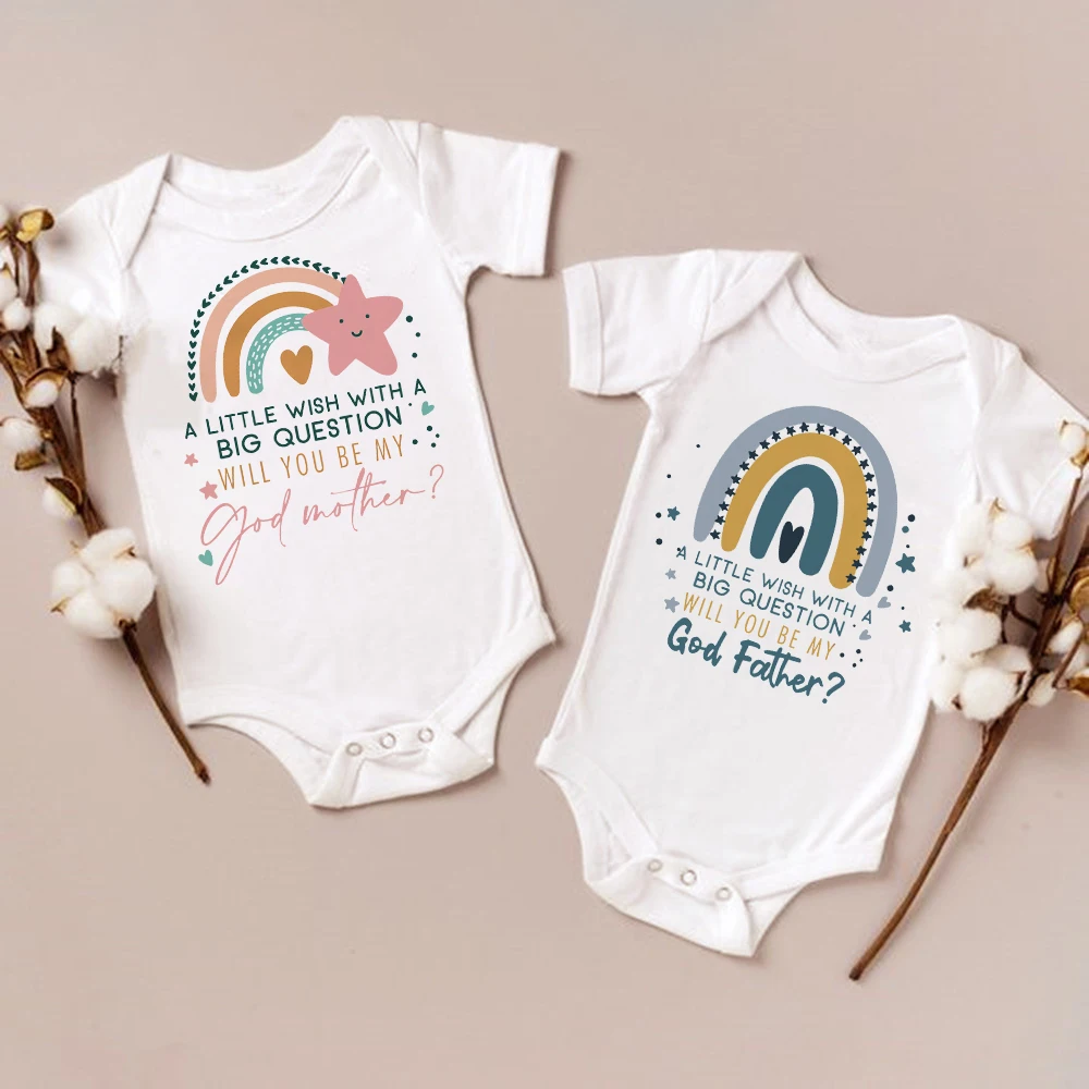Comprar Will You Be My God-Body de bebé estampado para madre/padre, ropa de bautismo para padrino, madrina, mono infantil de manga corta