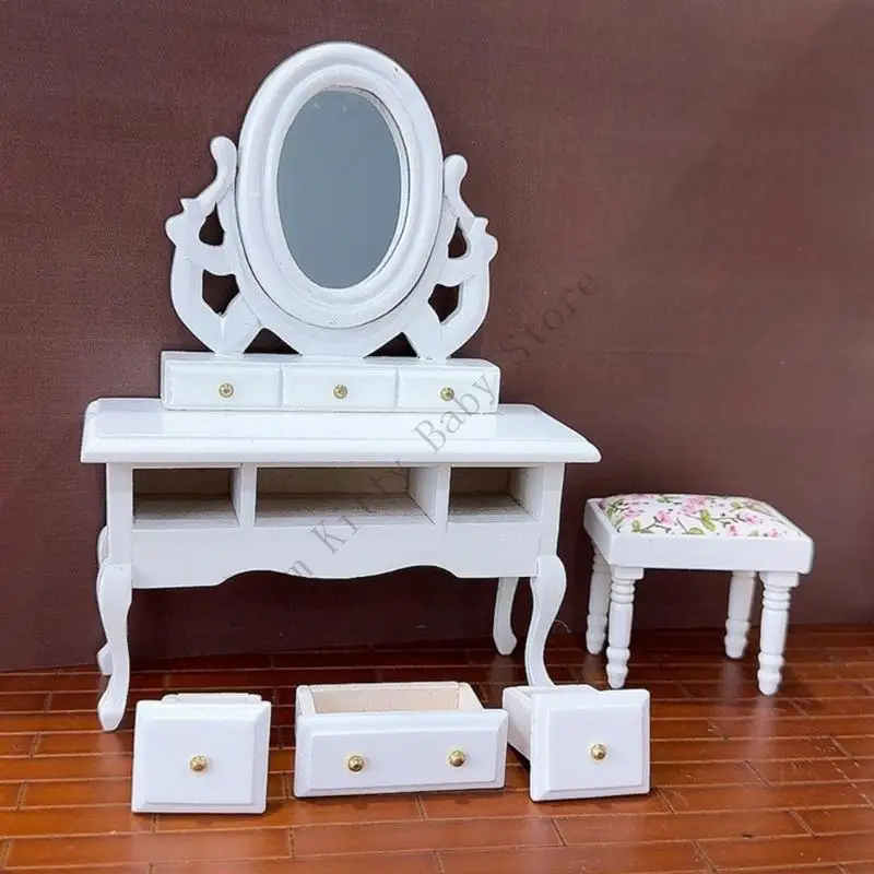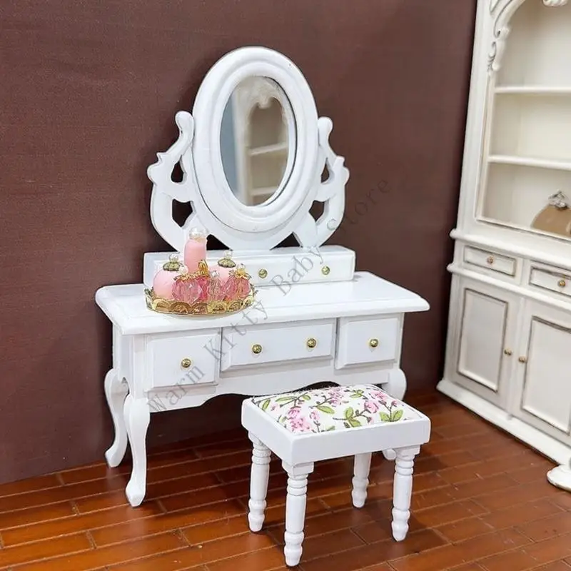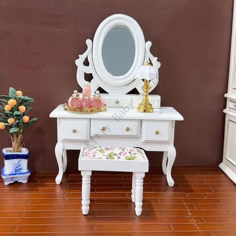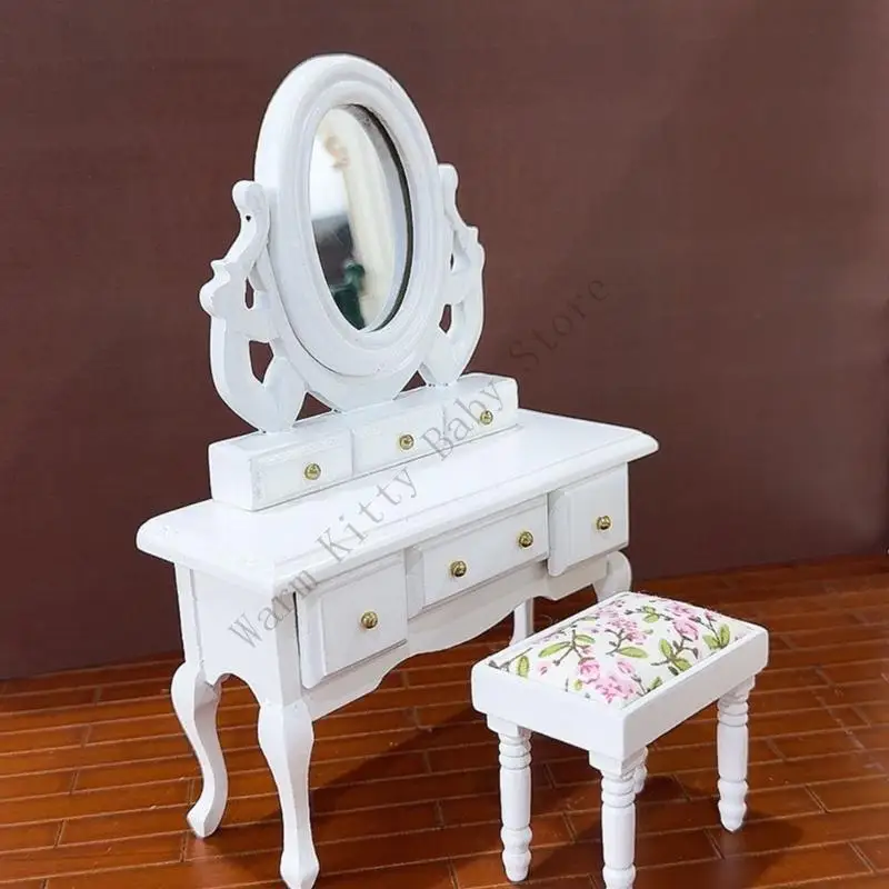 Comprar XXFE Entusiasta Grado 1/12 Escala Mini Muebles Tocador Madera Taburete Conjunto Detallado Diseño Tradicional