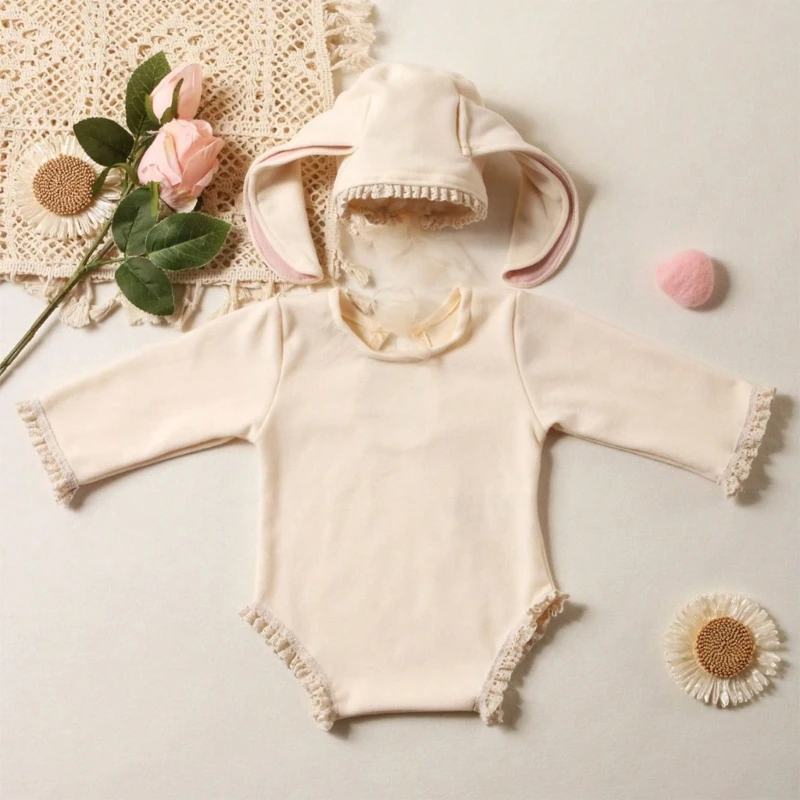 Características:OotdtyMomentos valiosos con este encantador conjunto de fotografía para recién nacidos con un traje temático de conejo y un sombrero. Perfecto para crear fotos memorables de su bebé.