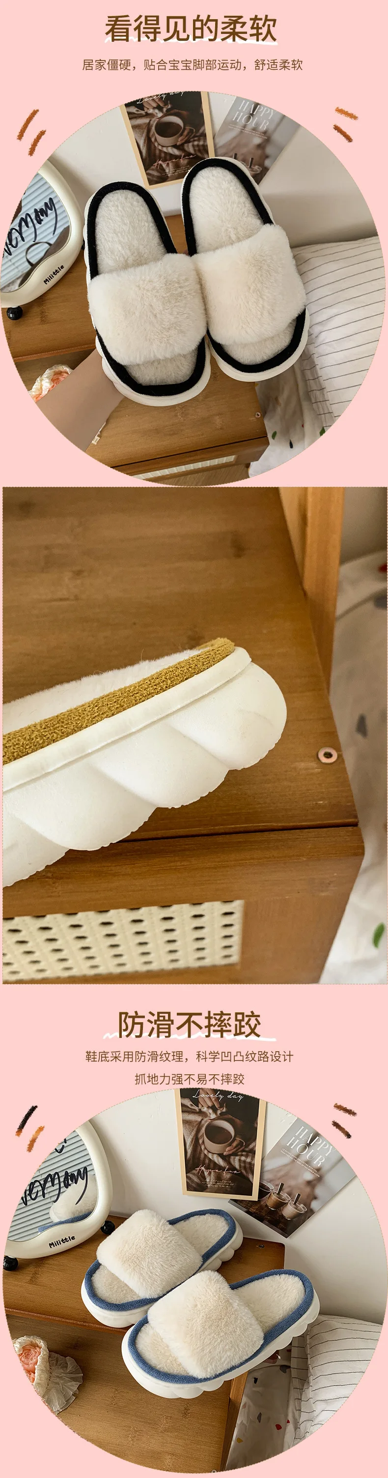 Zapatillas de algodón para el hogar para niños a la moda, chanclas de fondo suave para niña de princesa, zapatillas de algodón cálidas informales de felpa para bebé 2025