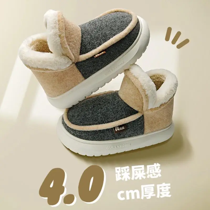 Zapatillas de algodón para hombre y mujer, zapatos cálidos de felpa suave, suela gruesa, botas de nieve para interiores y la calle, novedad de invierno, 2023