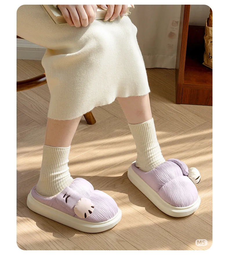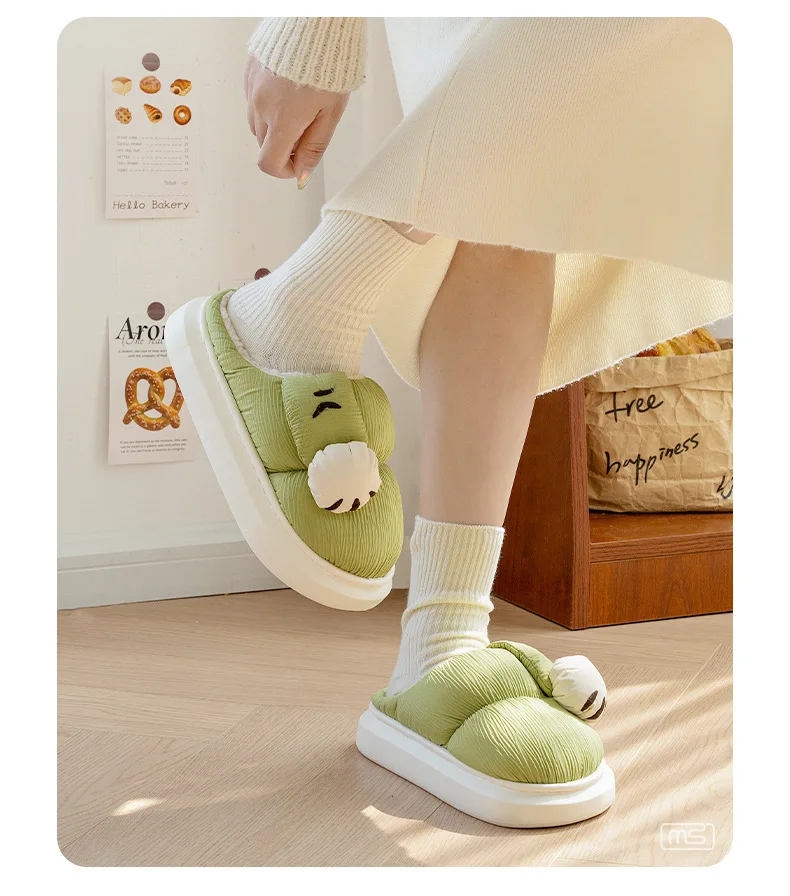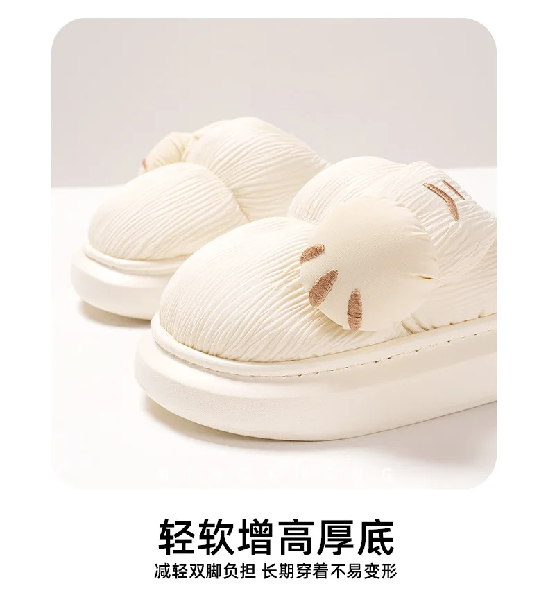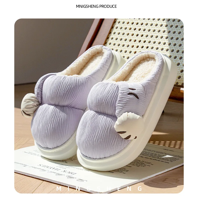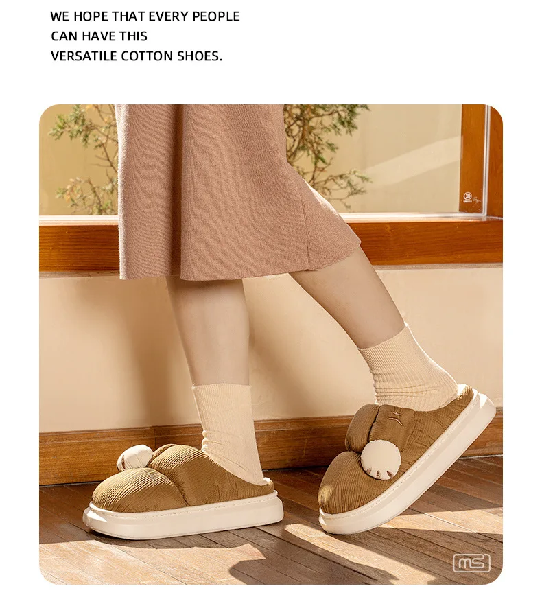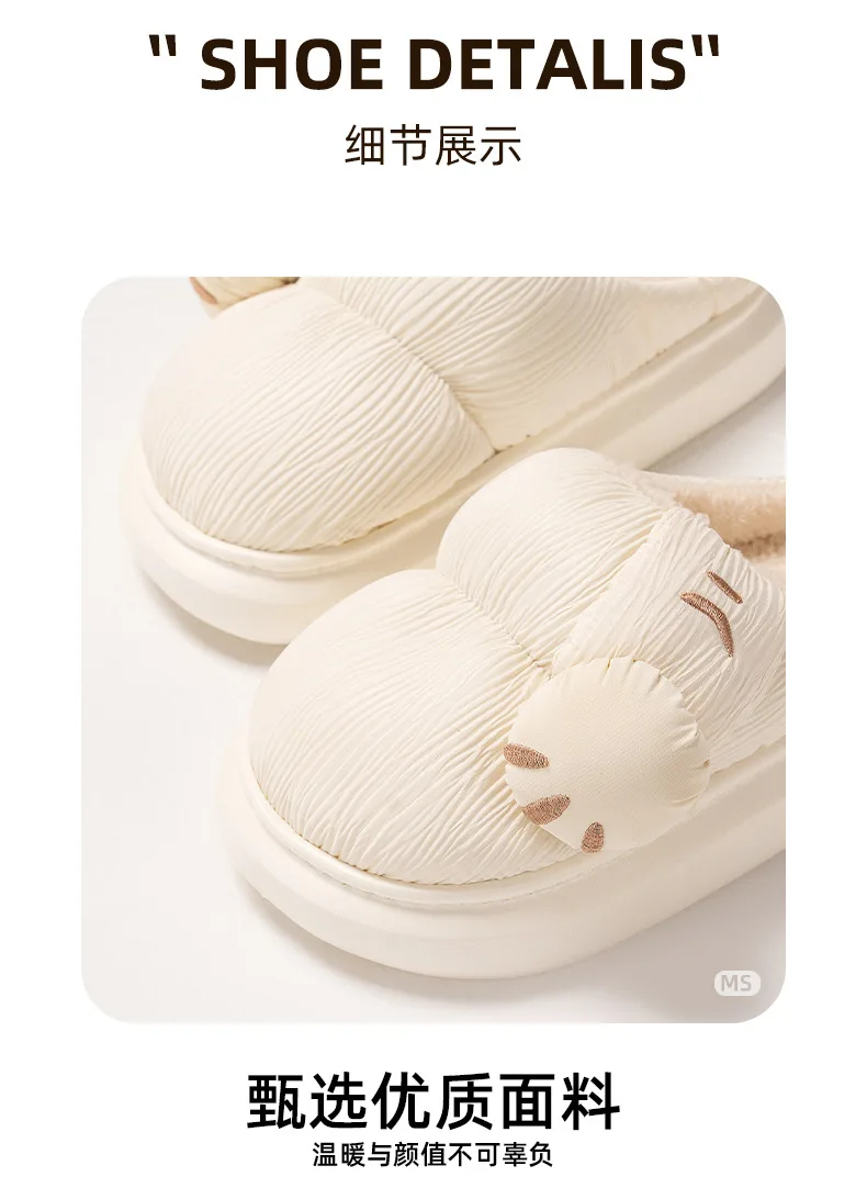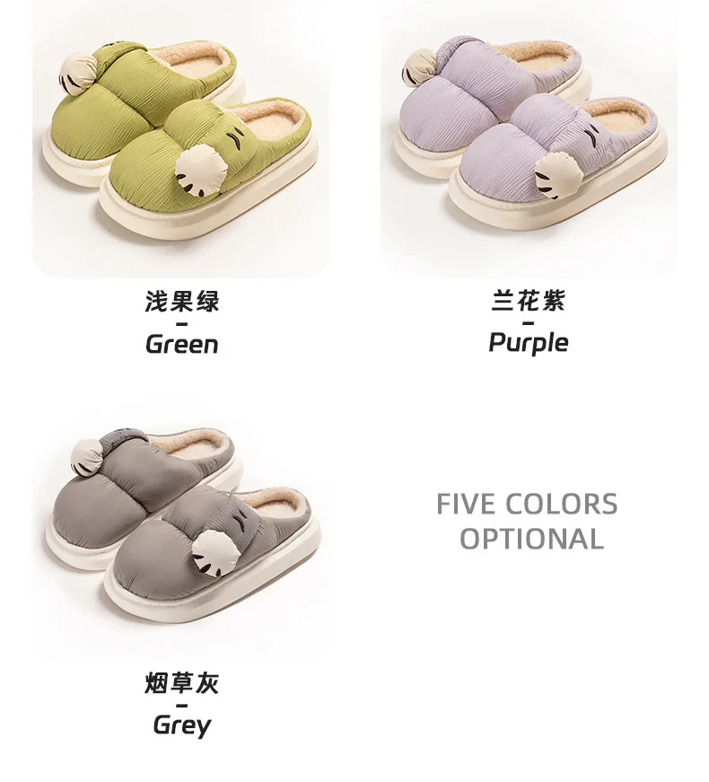Zapatillas de algodón para interiores para hombre y mujer, zapatos mullidos con pata de gato de dibujos animados, antideslizantes, suaves, de felpa, para casa, invierno y otoño