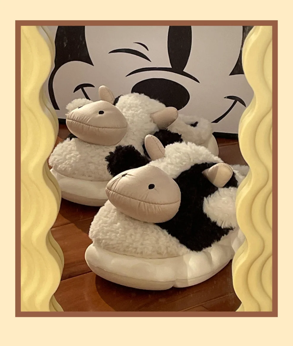 Comprar Zapatillas de algodón de vaca para hombre y mujer, pantuflas antideslizantes de fondo grueso de felpa para interiores y el hogar, Invierno