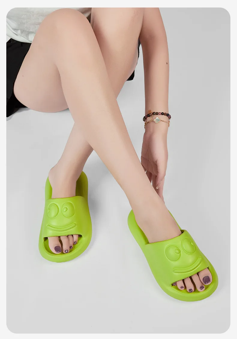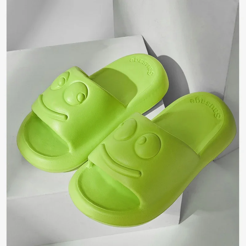 Zapatillas de baño para el hogar para mujer, bonitos dibujos animados, 2025, nuevos zapatos de plataforma de verano, toboganes de ducha interiores ligeros de EVA suave para parejas