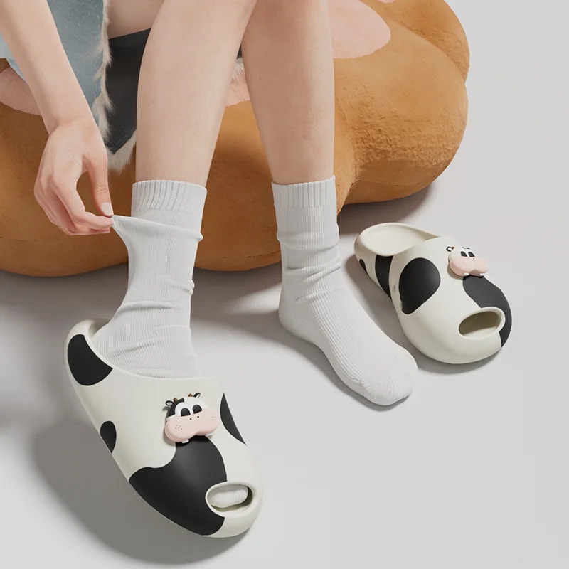 Zapatillas bonitas de vaca de dibujos animados para mujer, zapatos de plataforma de verano para baño interior, uso de ducha, sandalias antideslizantes de playa para niñas