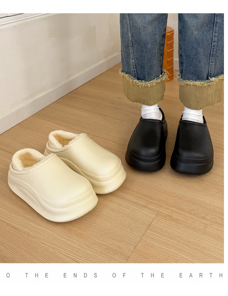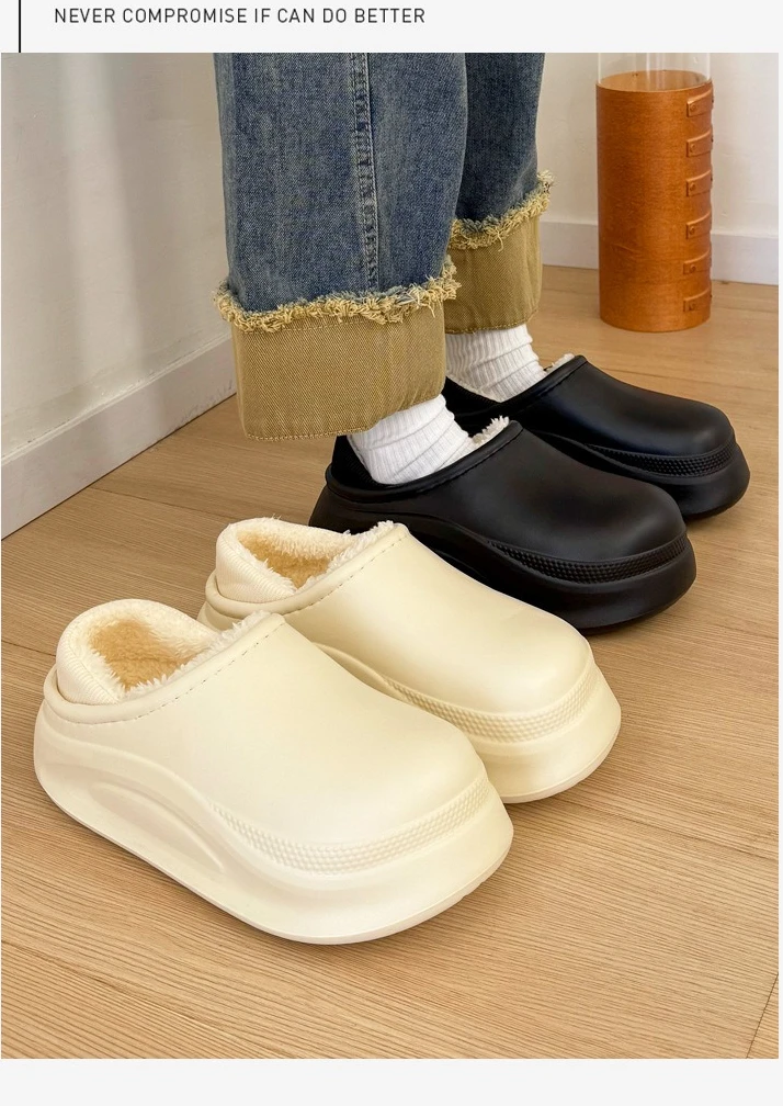 Comprar Zapatillas de calle de interior impermeables de EVA suave para mujeres y hombres, zapatos de plataforma de invierno, zapatos planos ligeros de felpa cálidos para parejas, pisos para el hogar