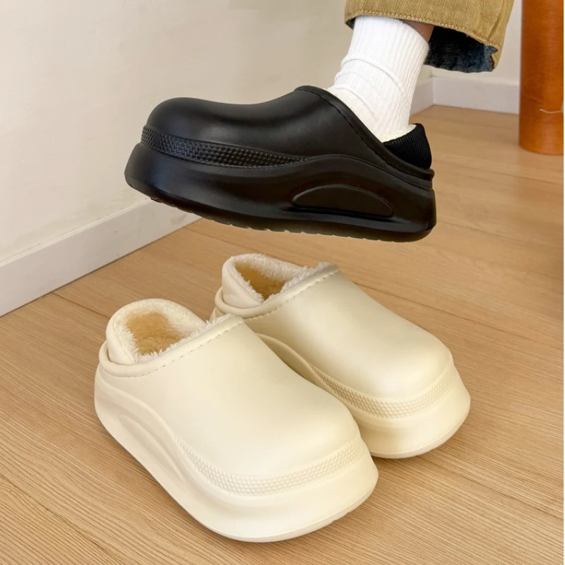 Comprar Zapatillas de calle de interior impermeables de EVA suave para mujeres y hombres, zapatos de plataforma de invierno, zapatos planos ligeros de felpa cálidos para parejas, pisos para el hogar