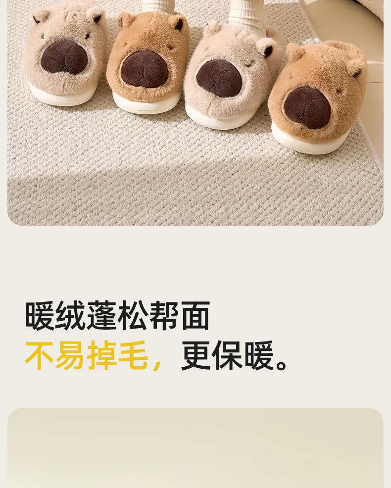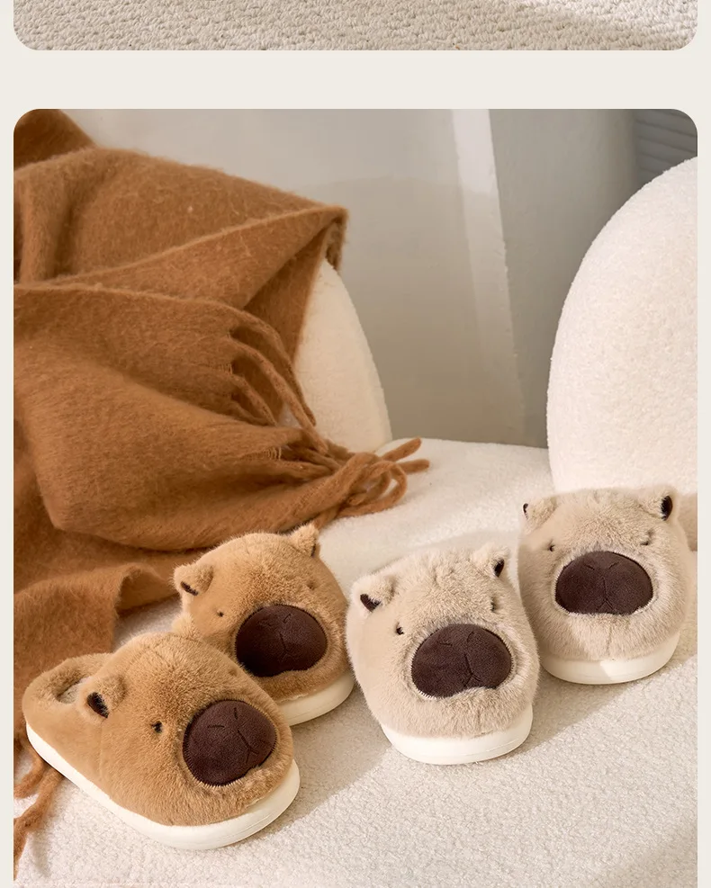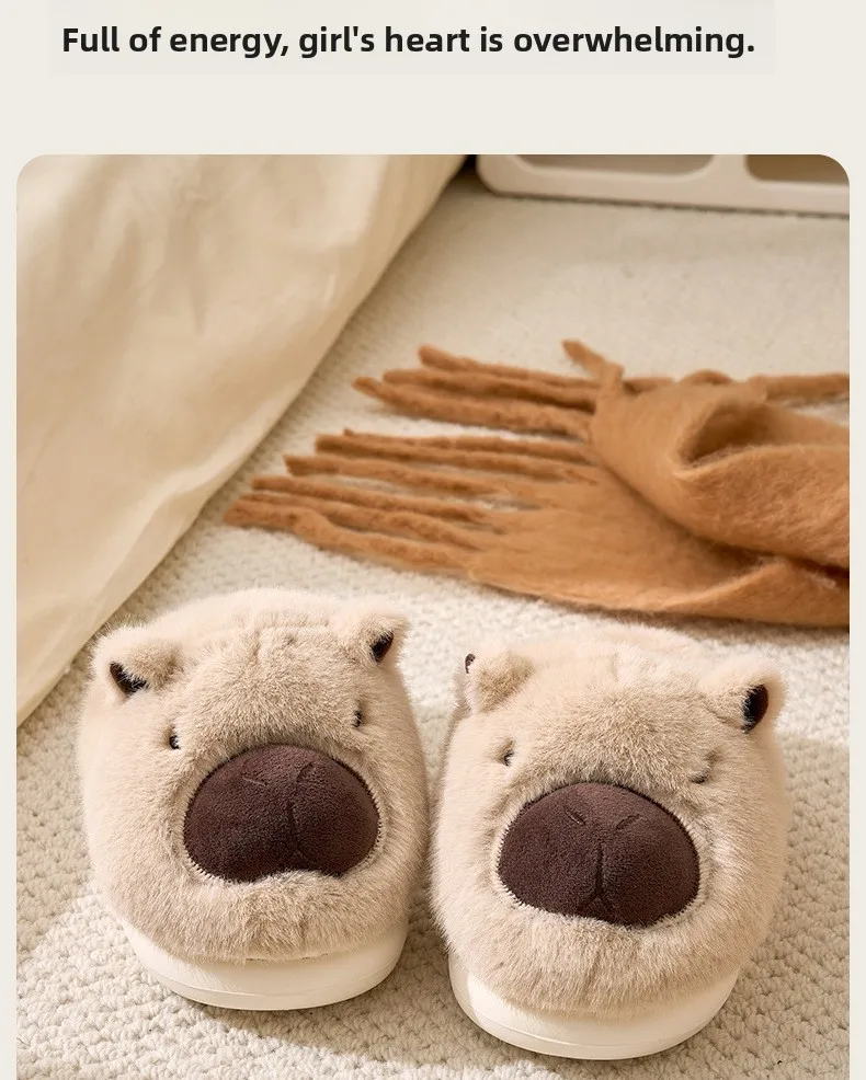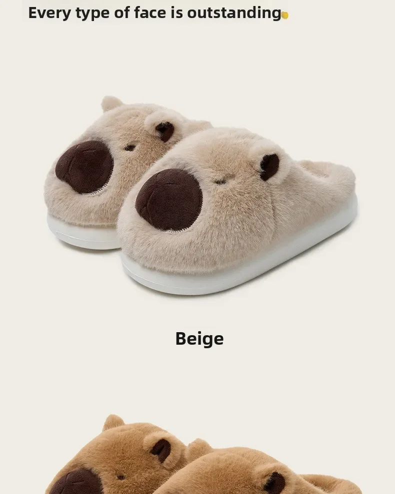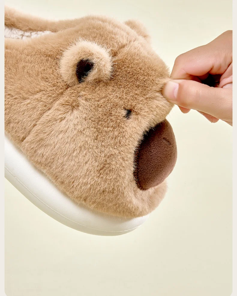 Zapatillas de capibara de felpa, zapatillas con punta cerrada, bonitos zapatos de casa sin cordones, zapatos cómodos peludos para caminar, antideslizantes para dormitorio interior