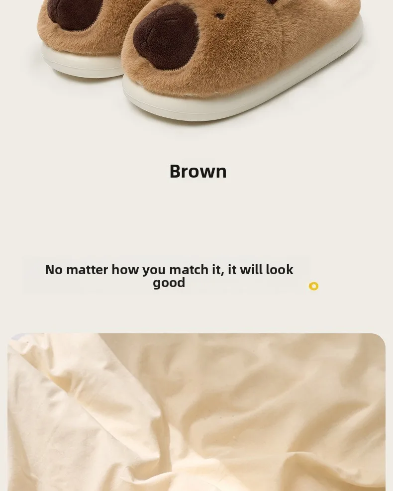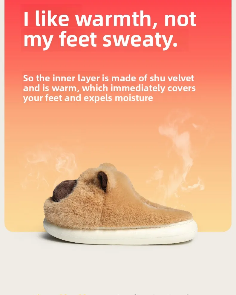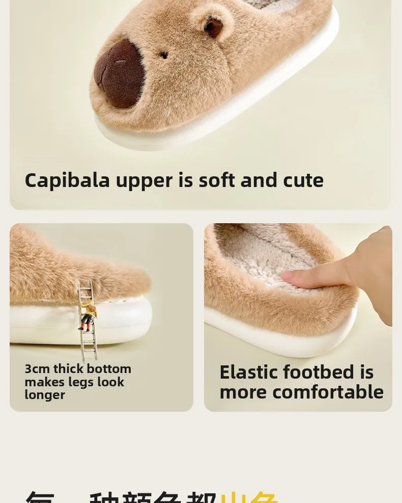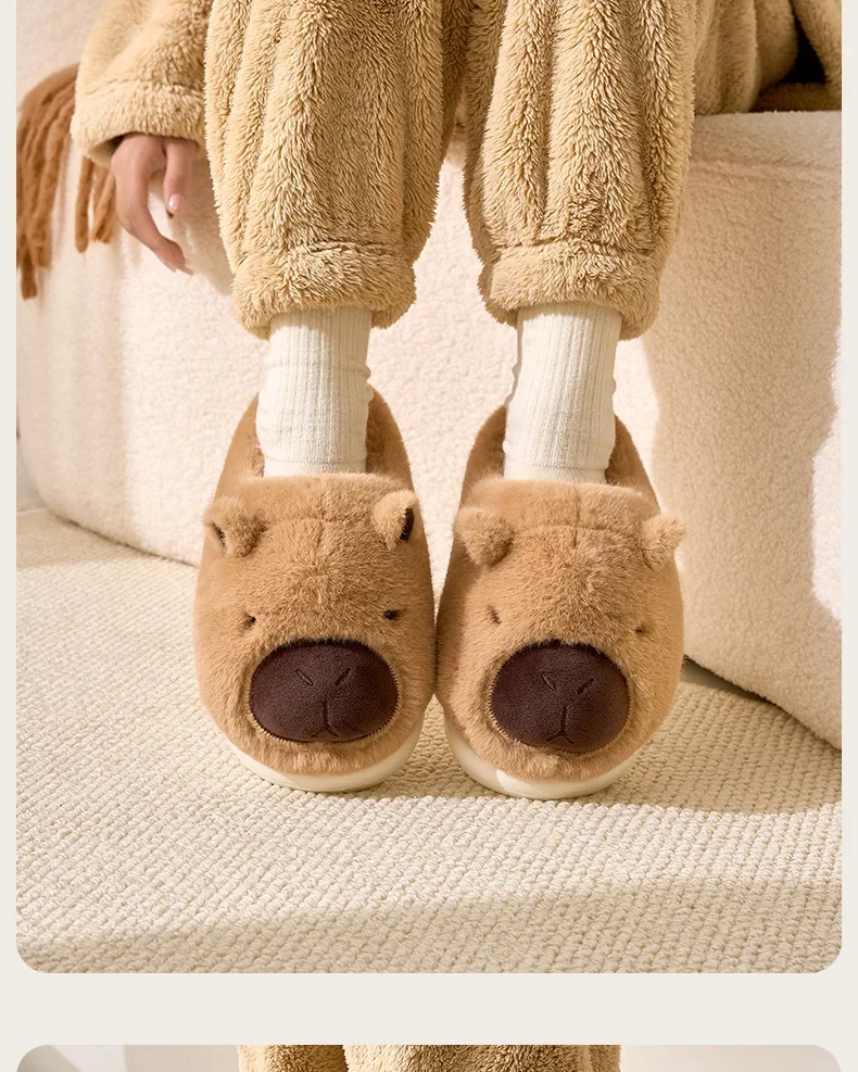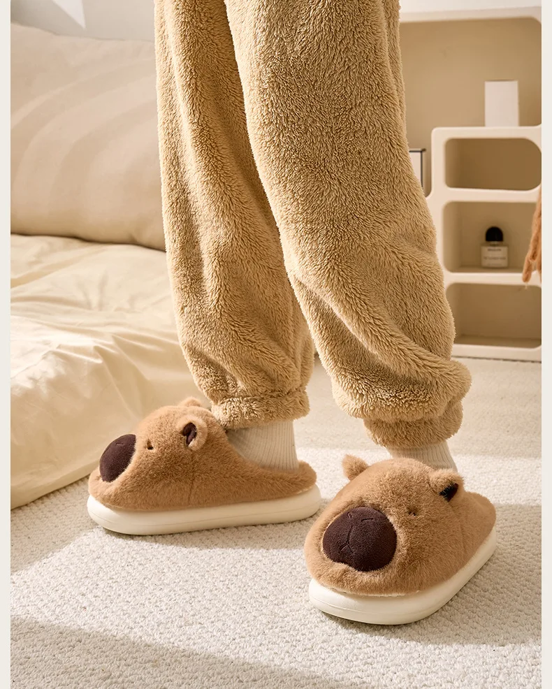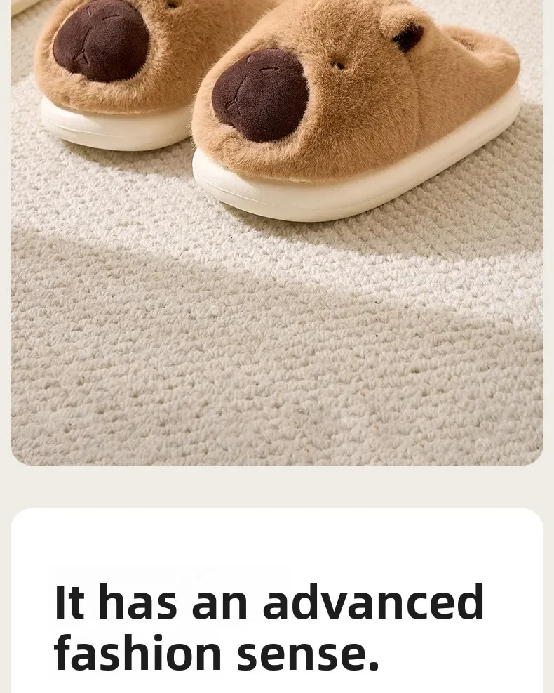 Zapatillas de capibara de felpa, zapatillas con punta cerrada, bonitos zapatos de casa sin cordones, zapatos cómodos peludos para caminar, antideslizantes para dormitorio interior