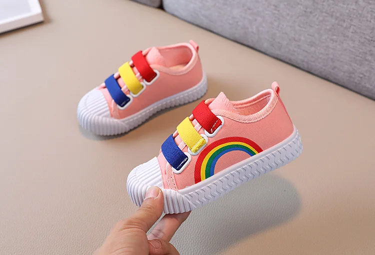 A mi hija le encantan sus zapatos de arcoíris, pero son un poco grandes y anchos y las costuras están un poco apagadas. No tienen velcro, basta con poner el pie y listo. Por el precio creo que está bien.