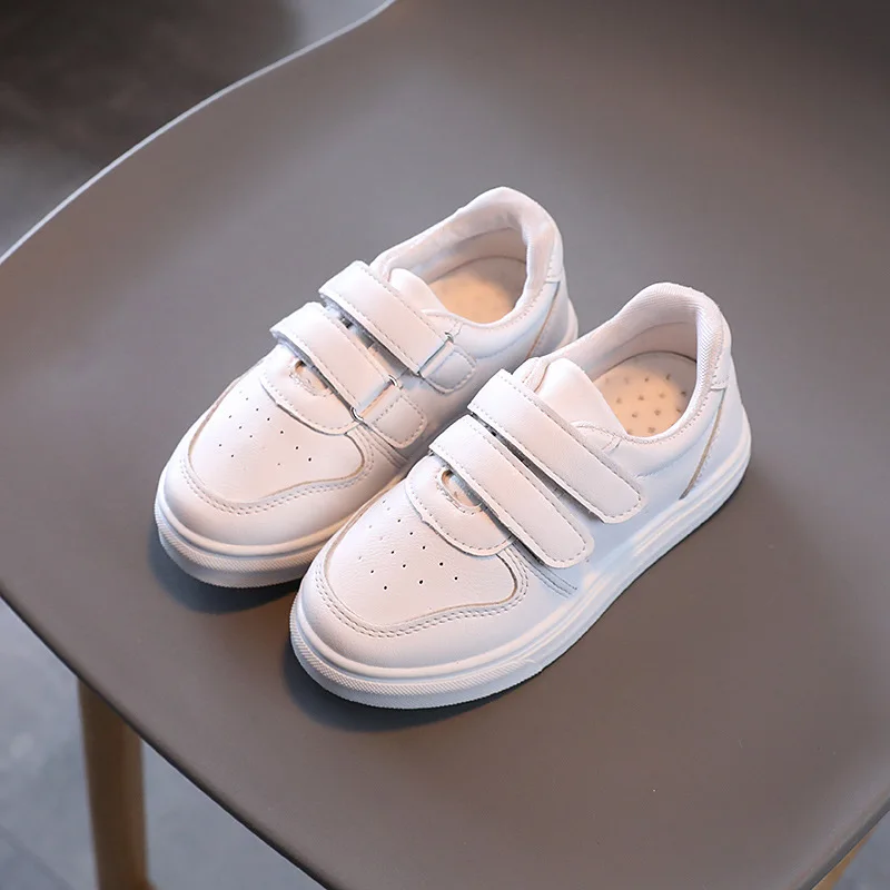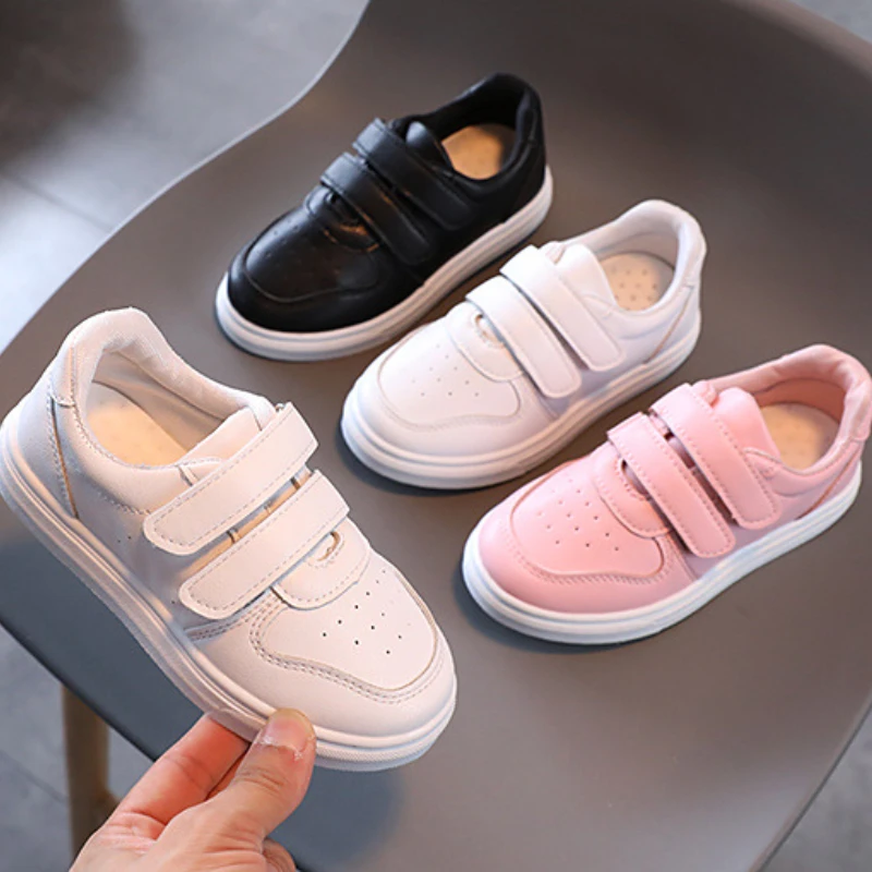 Comprar Zapatillas deportivas cómodas antideslizantes para niños y niñas, zapatos informales de cuero PU, color blanco y negro