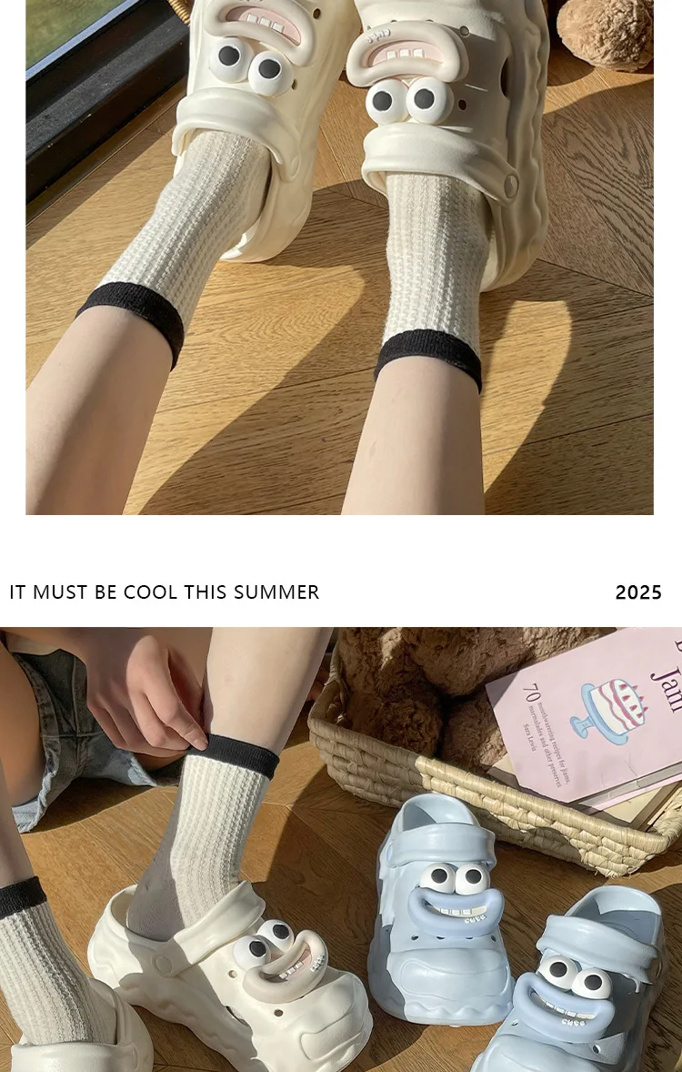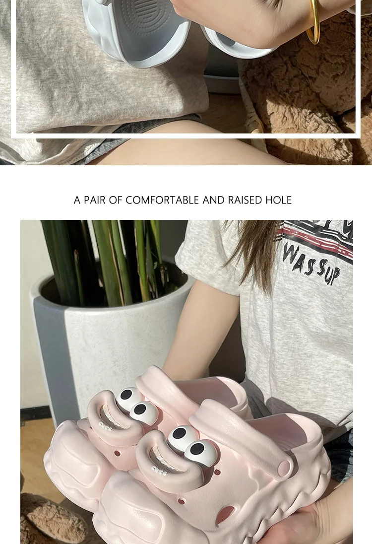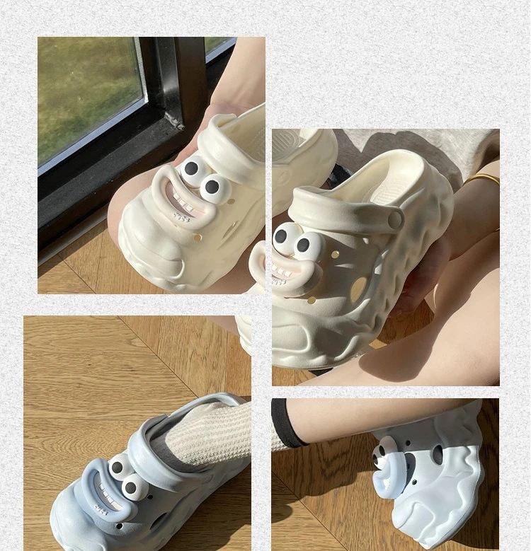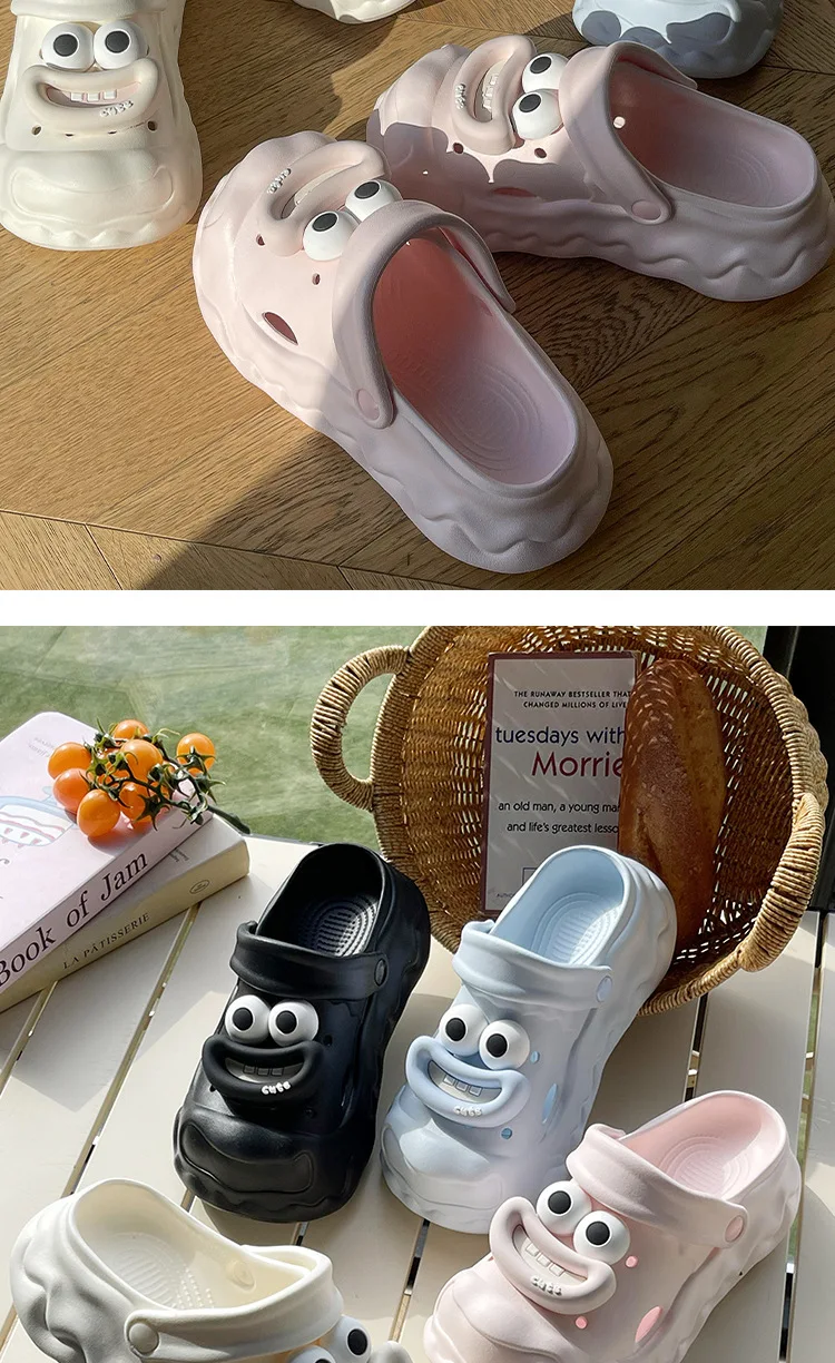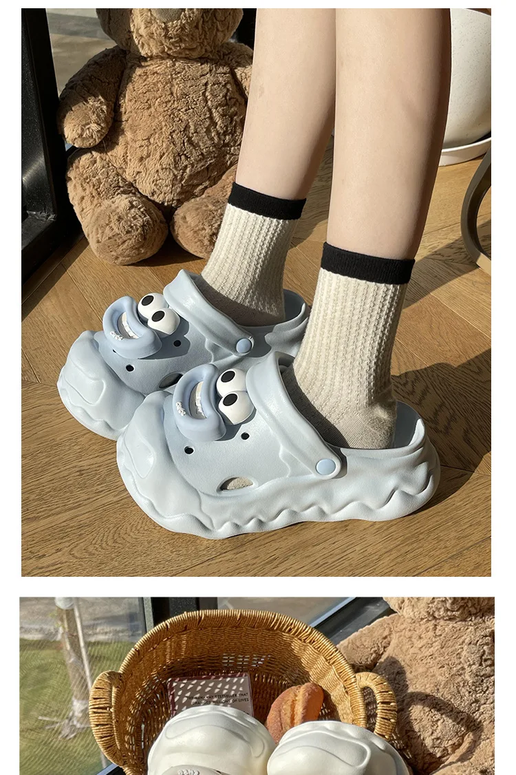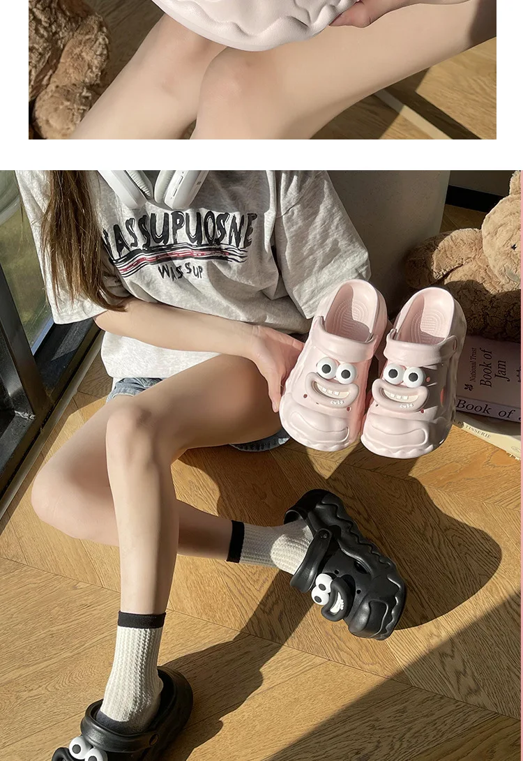 Zapatillas de dibujos animados para mujer, zapatos de calle para interiores, zuecos de moda de EVA suave, suela gruesa, punta cerrada, sandalias de plataforma para mujer
