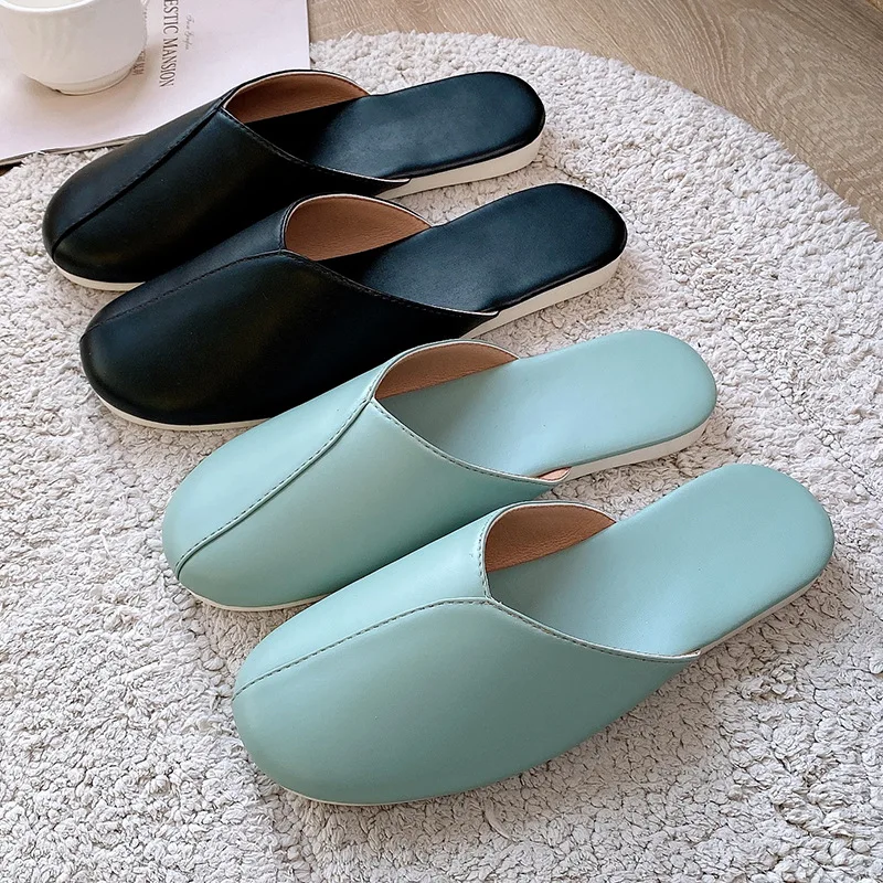 Zapatillas de Interior para mujer, zapatillas impermeables de cuero PU suave para amantes, zapatos de verano y otoño, zapatillas de suelo para el hogar para hombre y mujer