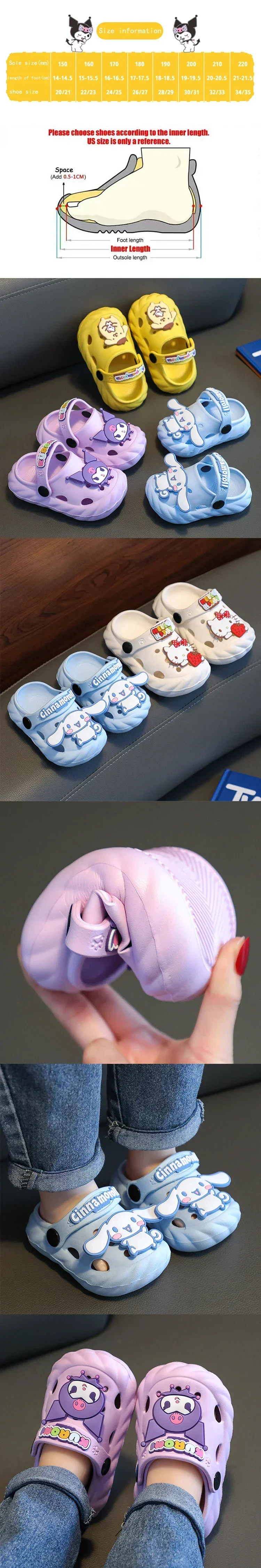 Zapatillas Kawaii Sanrio de verano para niños, zapatillas de interior de dibujos animados de Anime Kuromi Cinnamoroll para niños, chanclas antideslizantes para el hogar, regalo para niñas
