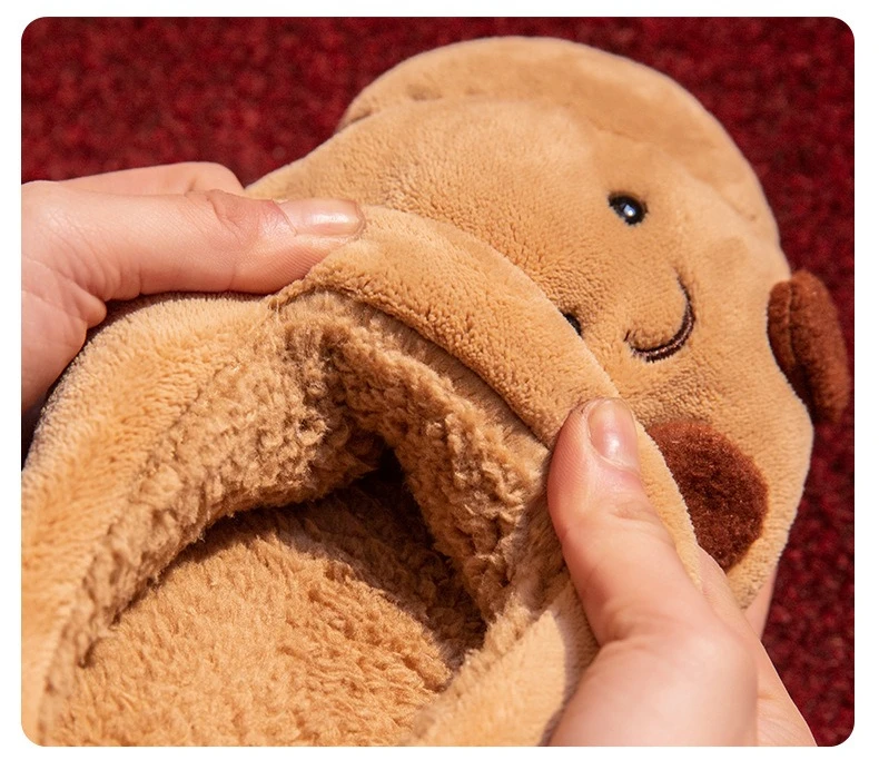 Comprar Zapatillas mullidas de dibujos animados para mujer y hombre, zapatos de casa de invierno, Croissant peludo, estilo pan, antideslizantes, chanclas de algodón para el hogar