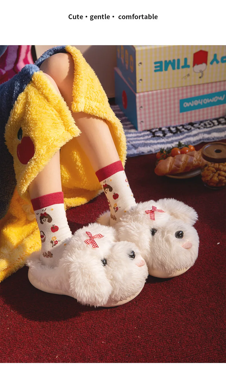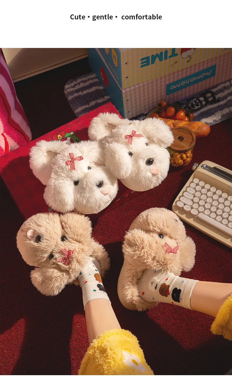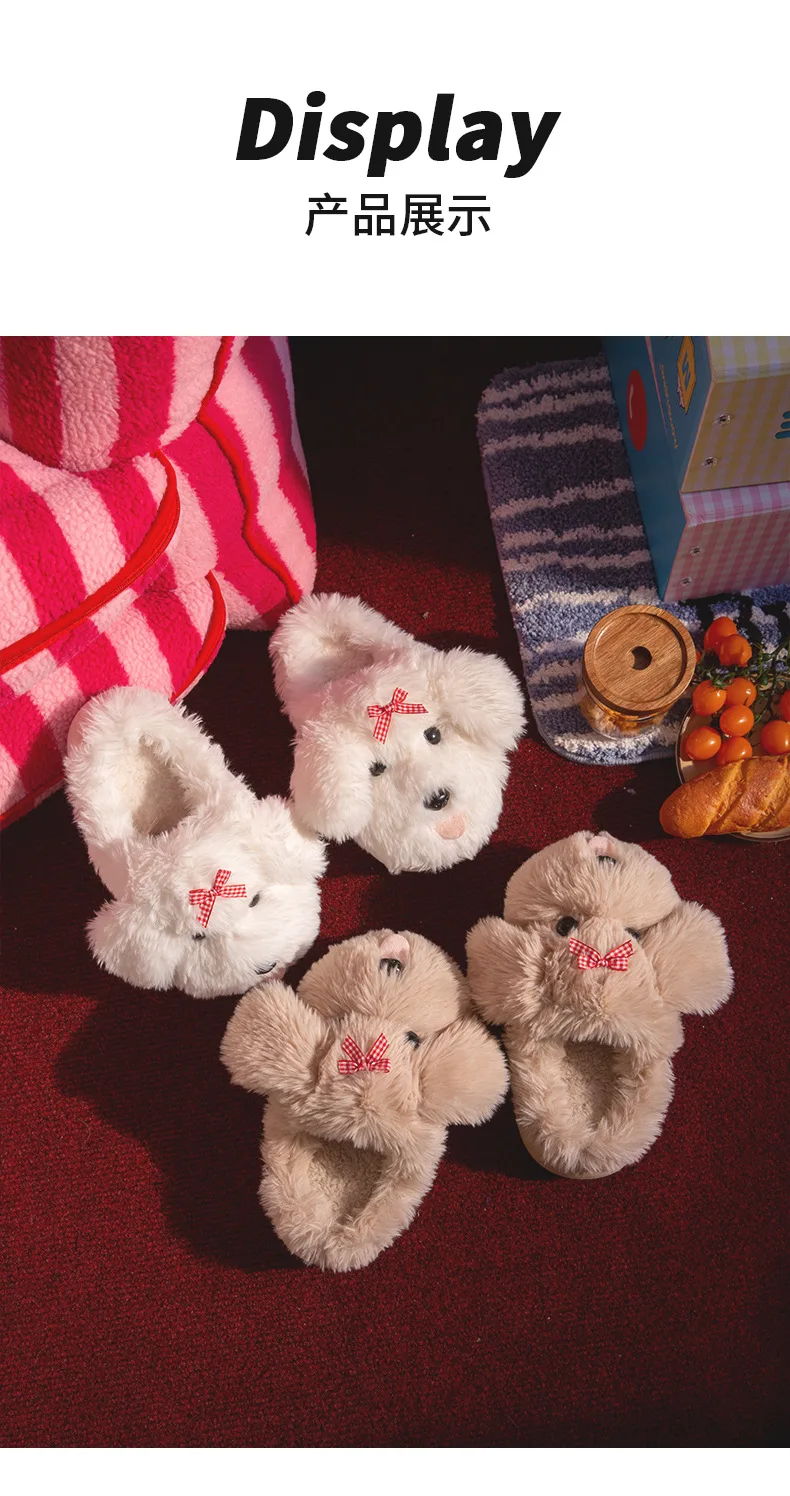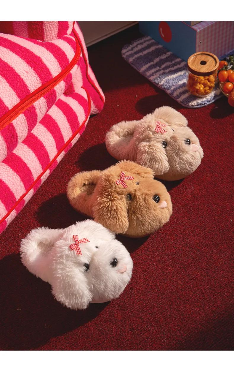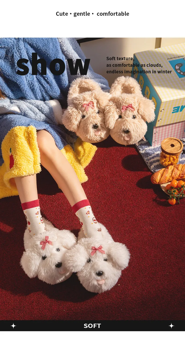 Zapatillas mullidas de dibujos animados para mujer, zapatos cálidos de invierno, chanclas de algodón suaves de felpa con perro divertido para interior del hogar, novedad de 2025