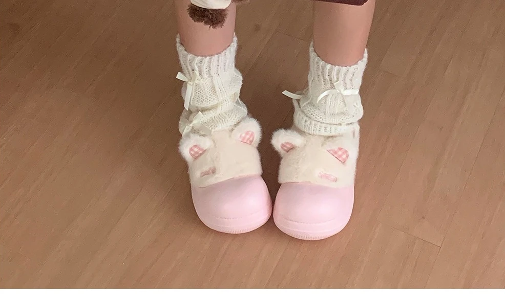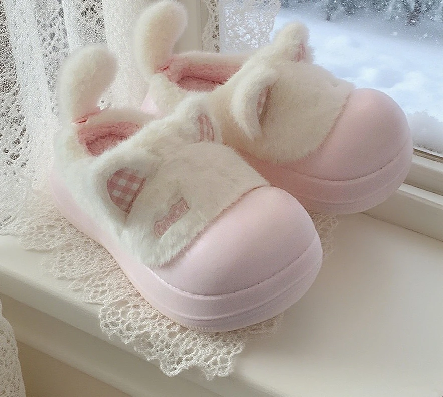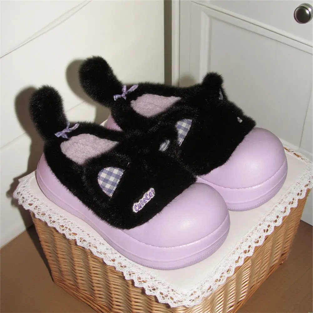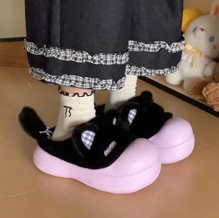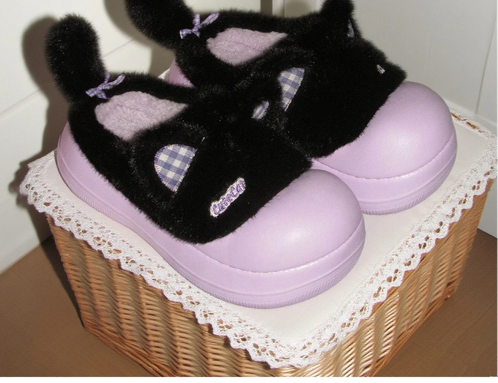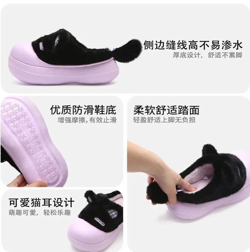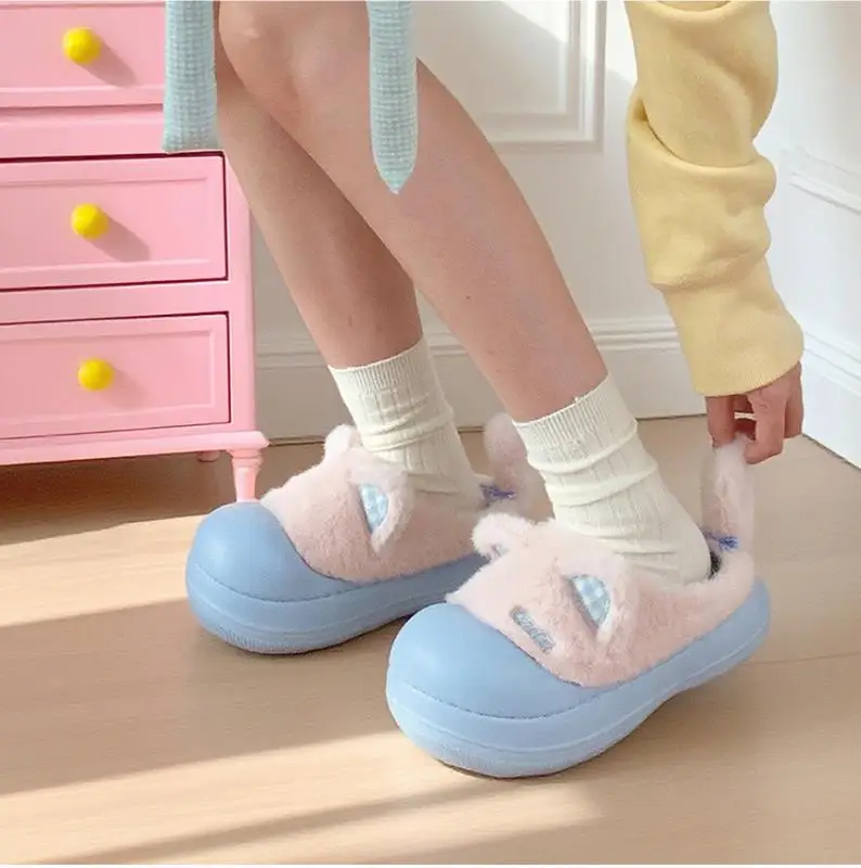 Zapatillas mullidas impermeables con bonito gato de dibujos animados para niñas, zapatos cálidos para el hogar y la calle, zapatillas de algodón antideslizantes suaves de EVA para el hogar para mujer