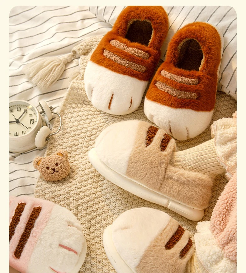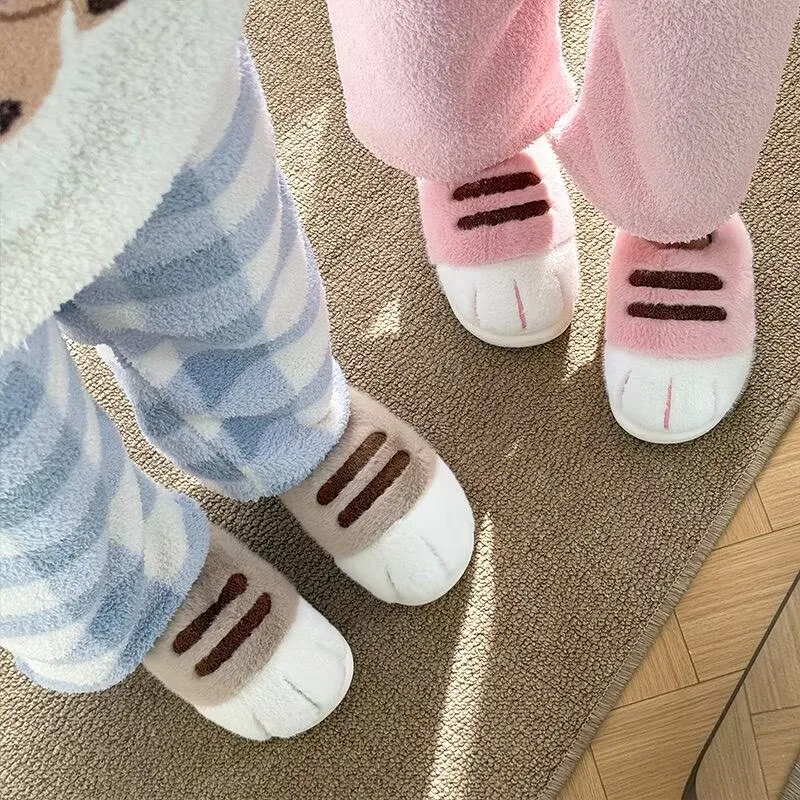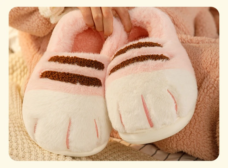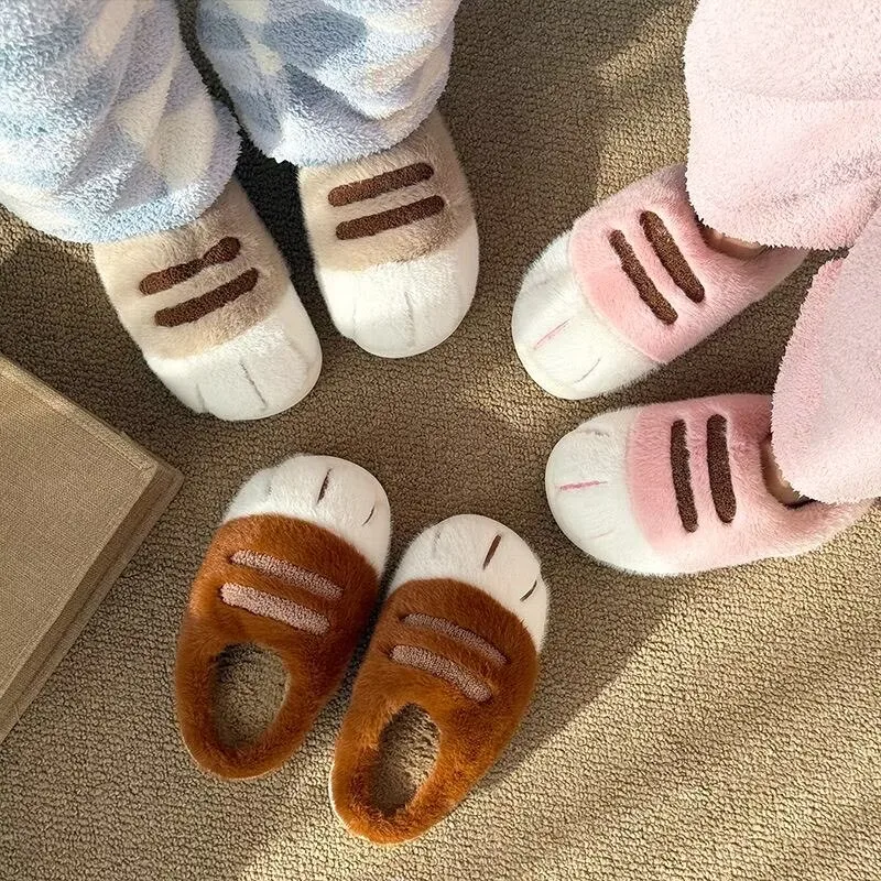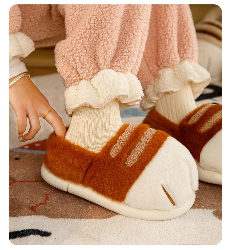 Comprar Zapatillas mullidas de otoño e invierno para mujeres y hombres, zapatos de casa de invierno, bonita pata de dibujos animados, antideslizante, suela gruesa, zapatilla peluda para interiores