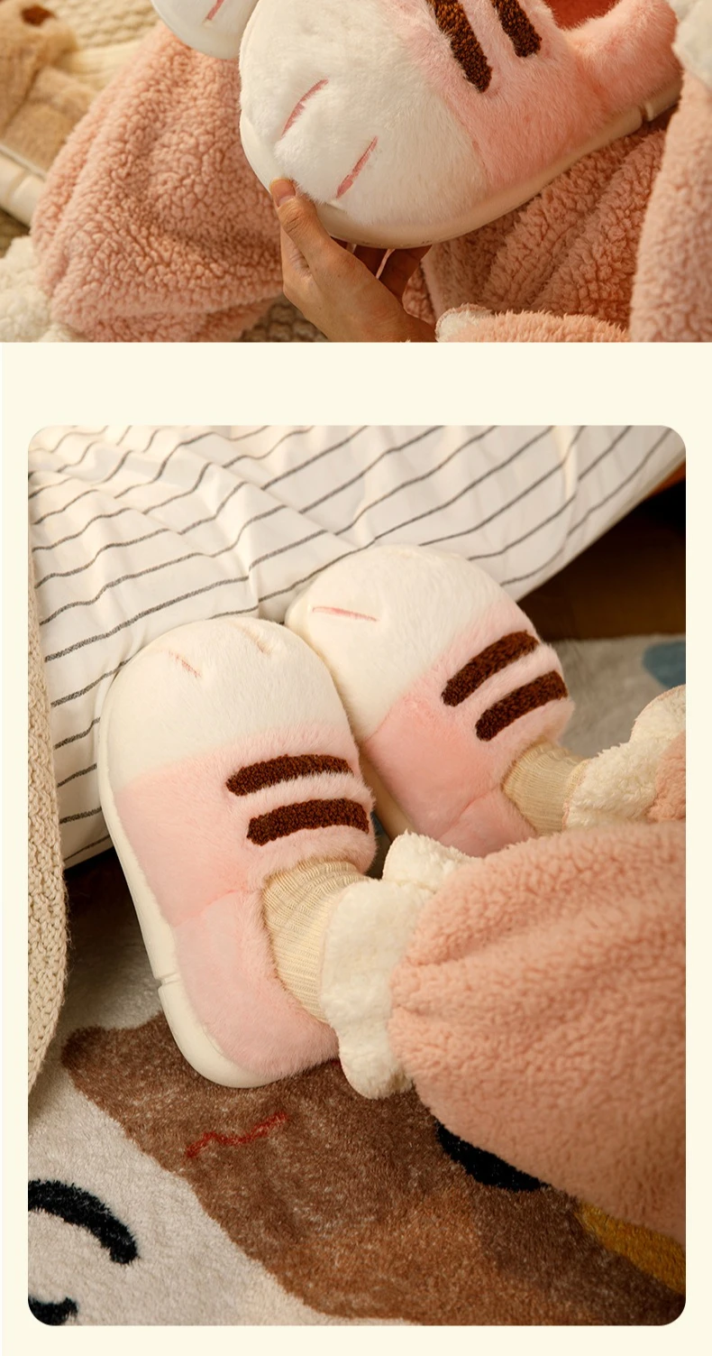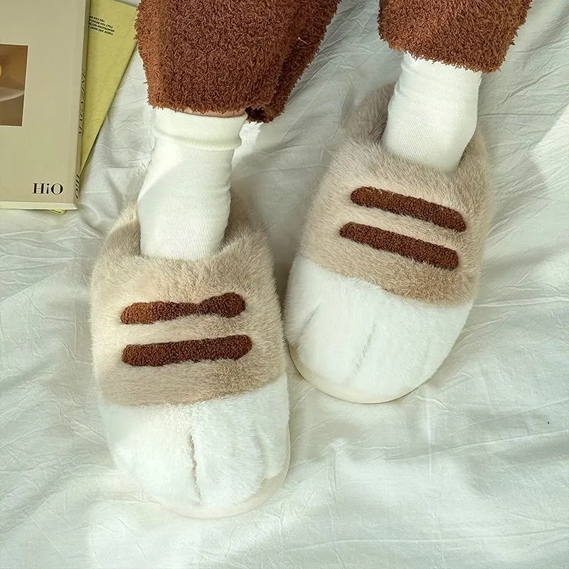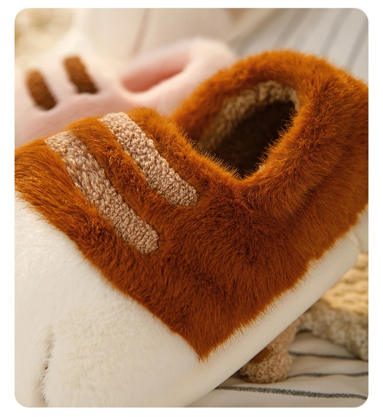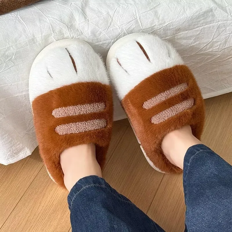 Comprar Zapatillas mullidas de otoño e invierno para mujeres y hombres, zapatos de casa de invierno, bonita pata de dibujos animados, antideslizante, suela gruesa, zapatilla peluda para interiores