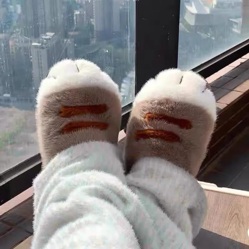 Comprar Zapatillas mullidas de otoño e invierno para mujeres y hombres, zapatos de casa de invierno, bonita pata de dibujos animados, antideslizante, suela gruesa, zapatilla peluda para interiores