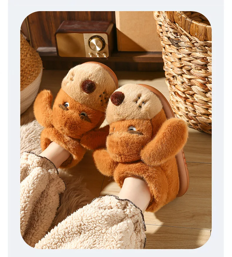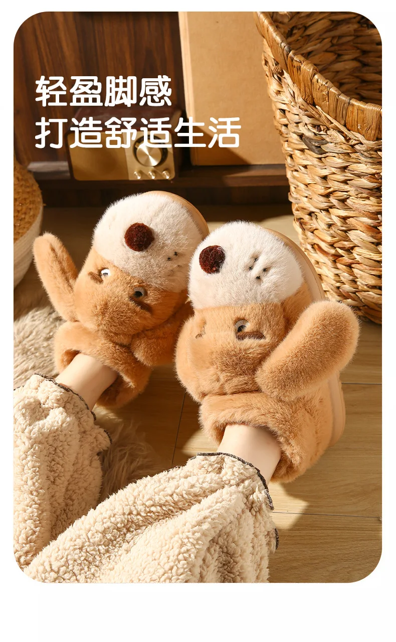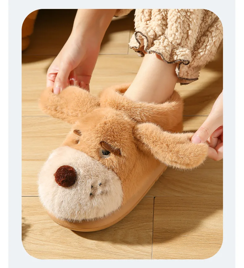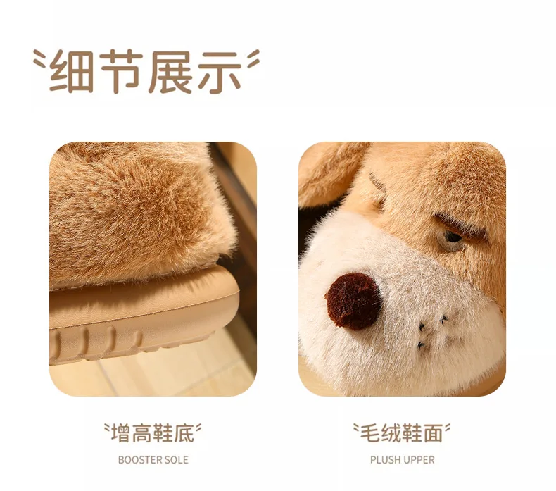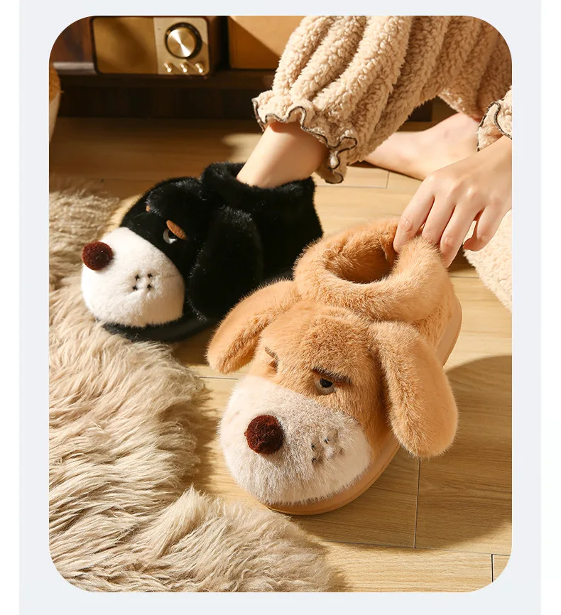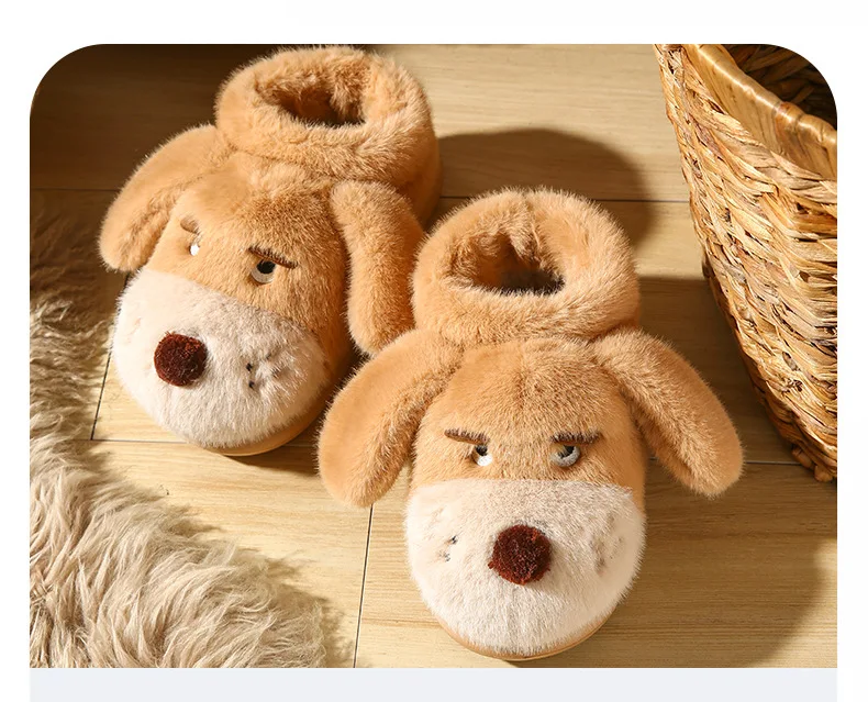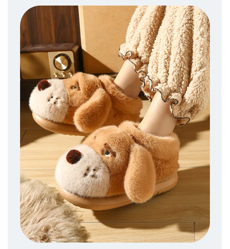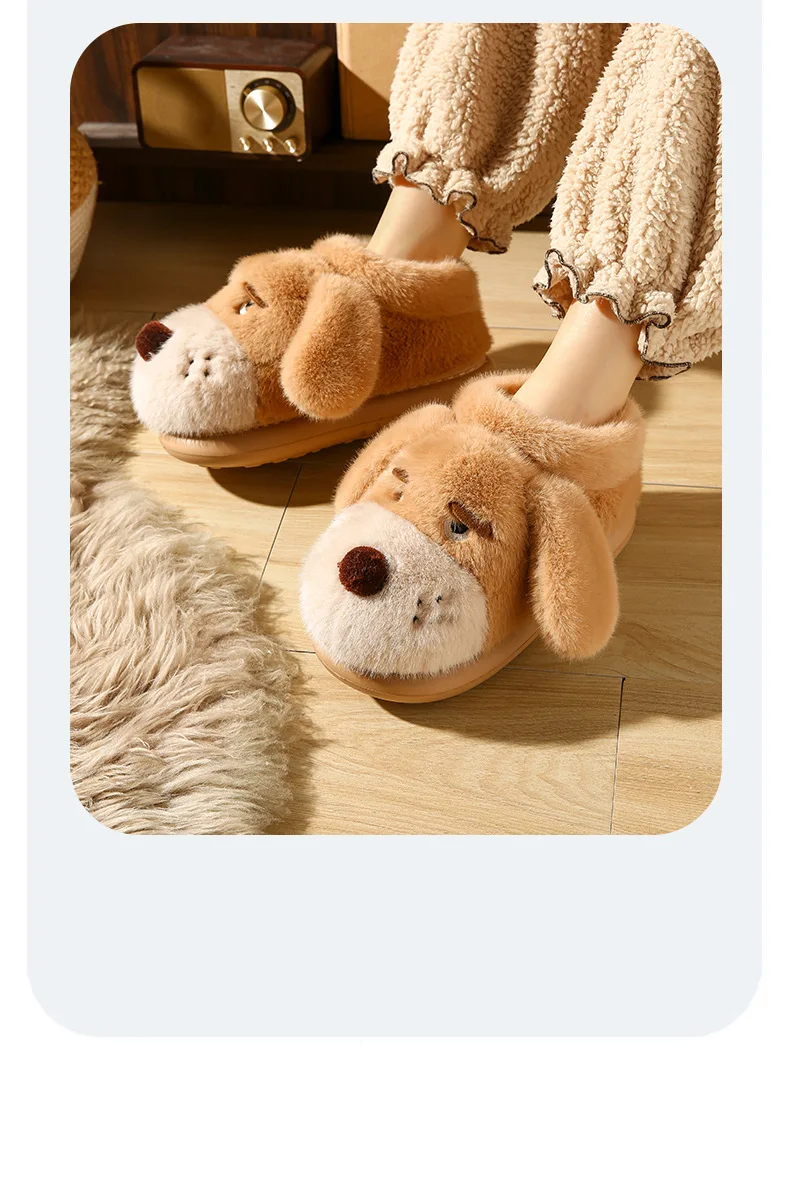 Zapatillas mullidas de perro peludo para mujer, zapatos de casa de invierno de estilo alto, botas de nieve cálidas de felpa con dibujos animados para jardín interior