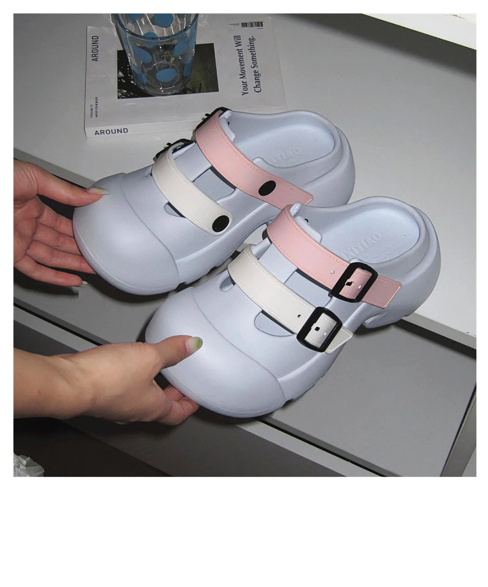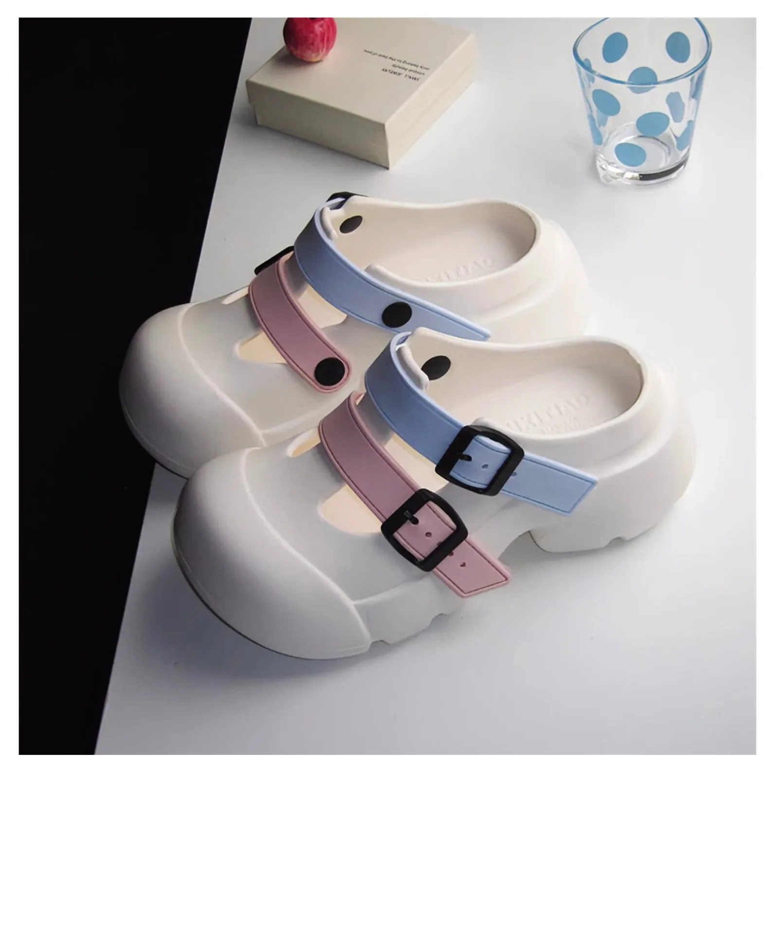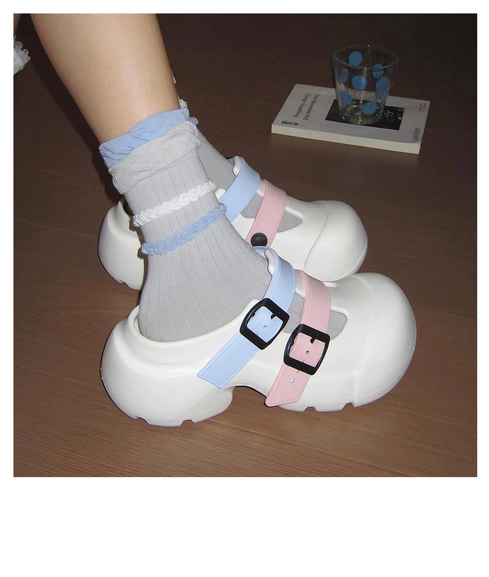 Zapatillas de plataforma de estilo coreano para mujer, zapatos Mary Jane para interiores y exteriores, cinturón colorido, suela gruesa, zuecos de moda, sandalias de calle para niñas