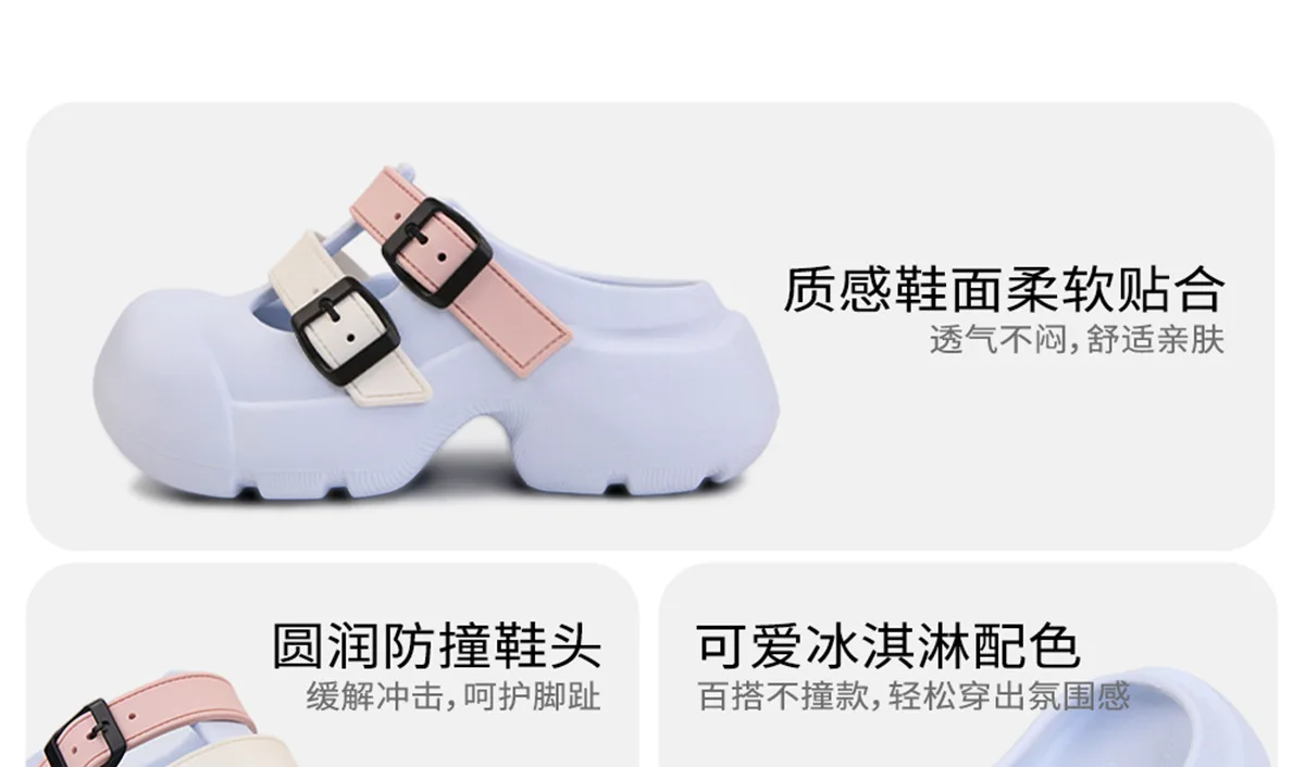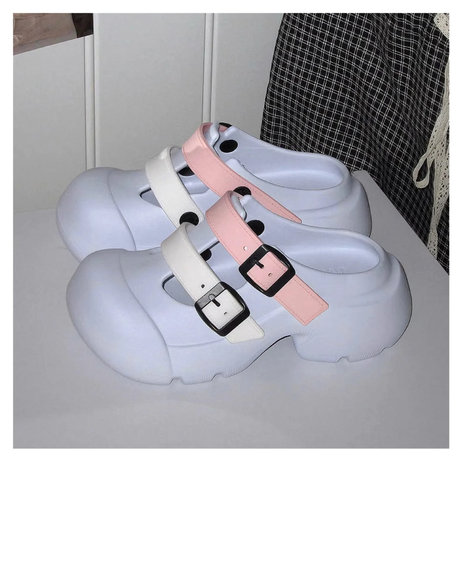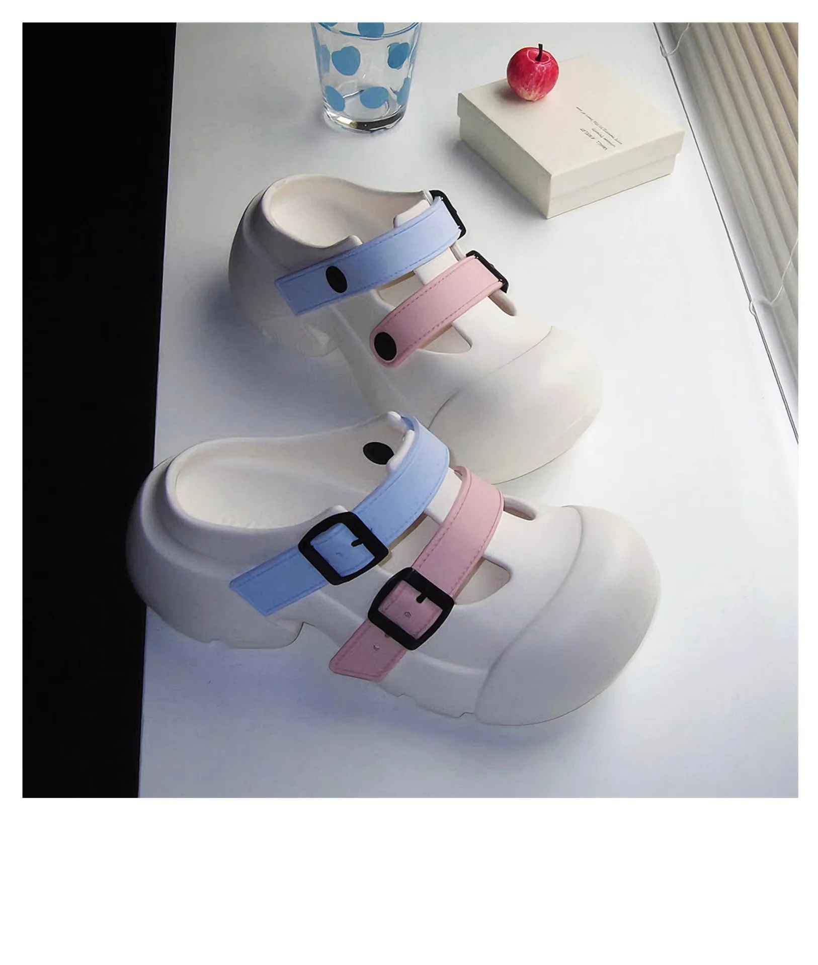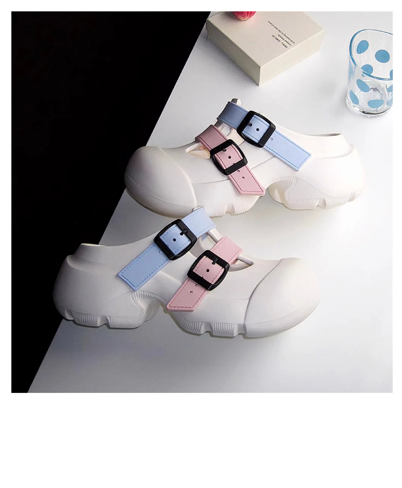 Zapatillas de plataforma de estilo coreano para mujer, zapatos Mary Jane para interiores y exteriores, cinturón colorido, suela gruesa, zuecos de moda, sandalias de calle para niñas