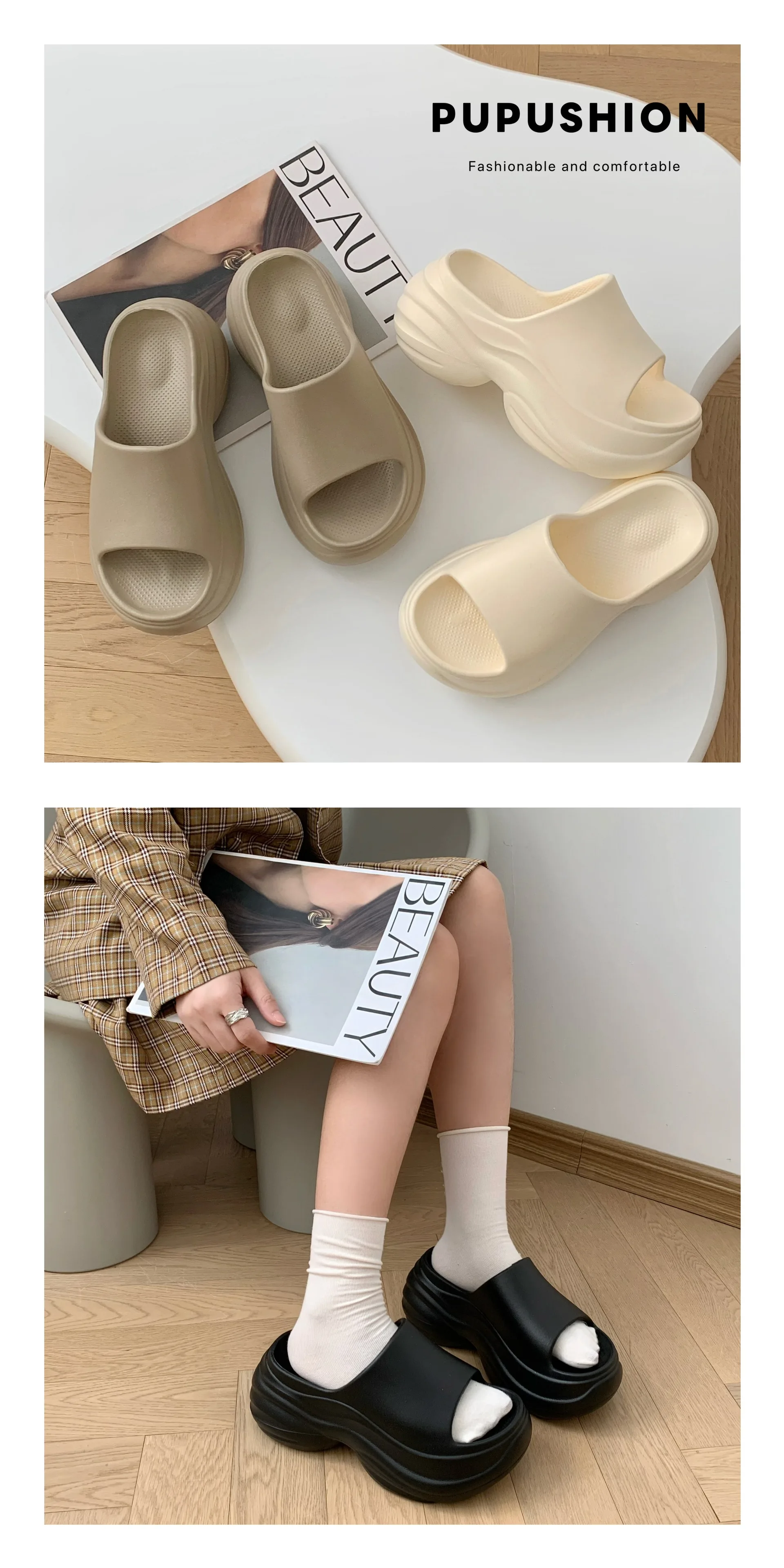 Comprar Zapatillas de plataforma gruesas a la moda para mujer, sandalias de cuña antideslizantes para verano 2025, chanclas de EVA con parte inferior gruesa para exteriores para mujer