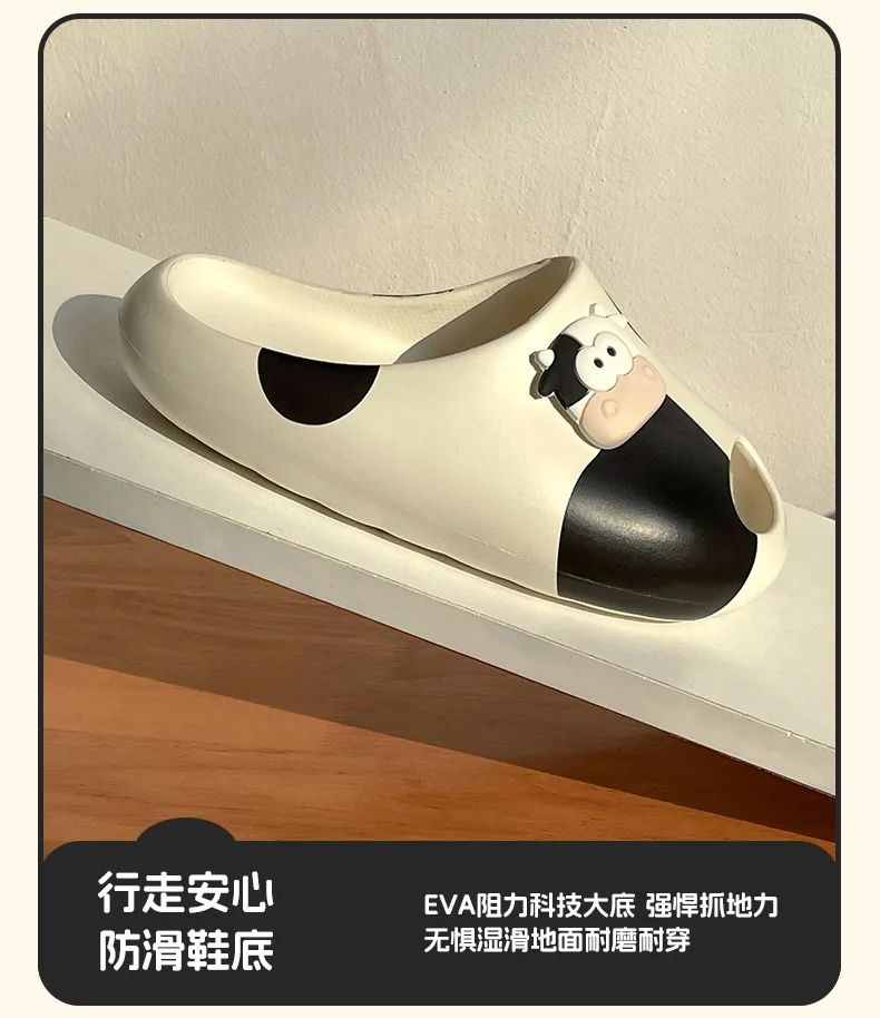 Comprar Zapatillas con plataforma interior de vaca de dibujos animados para mujer, zapatos de verano con suela gruesa, antideslizantes, toboganes de ducha para el baño y el hogar