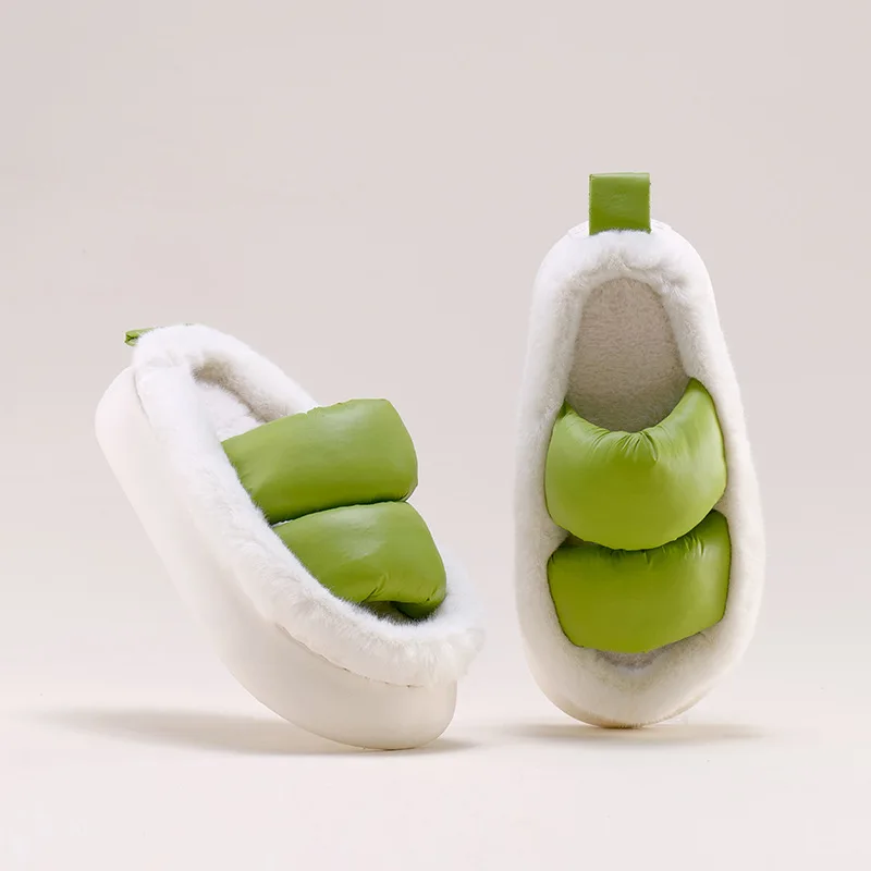 Comprar Zapatillas de plataforma para mujer, zapatos de piel suave, toboganes de moda, suela gruesa, Punta abierta, interior, calle, cálido, peludo, Invierno