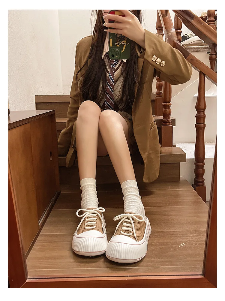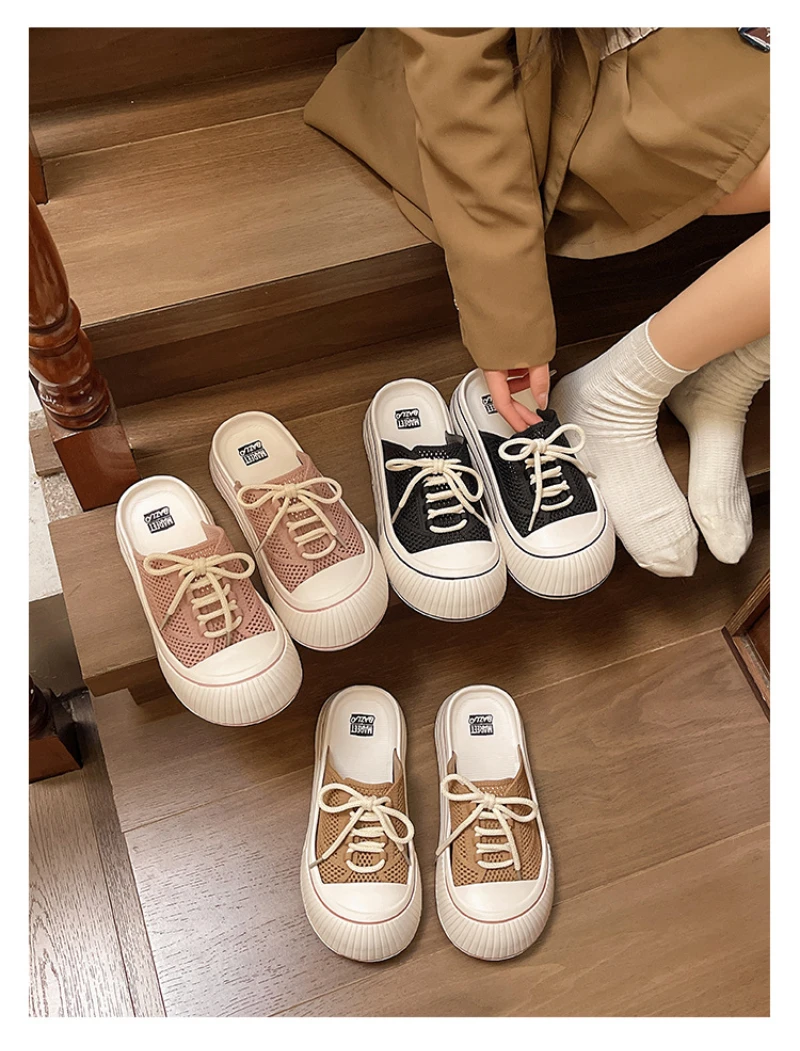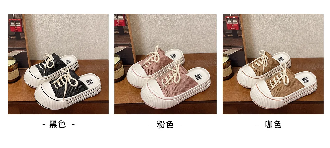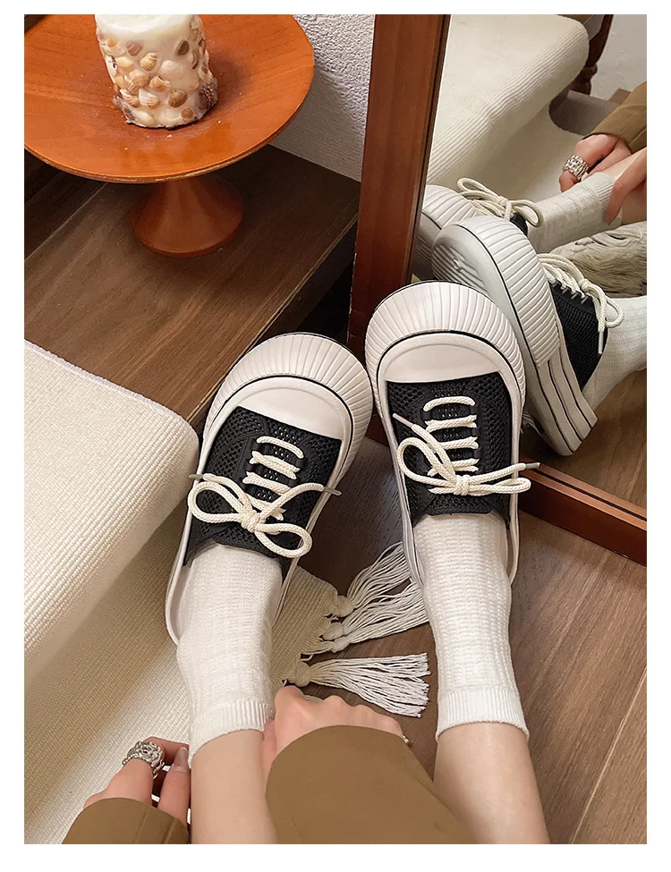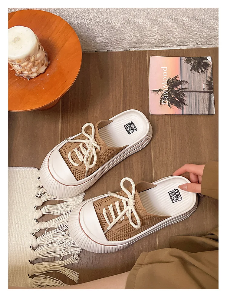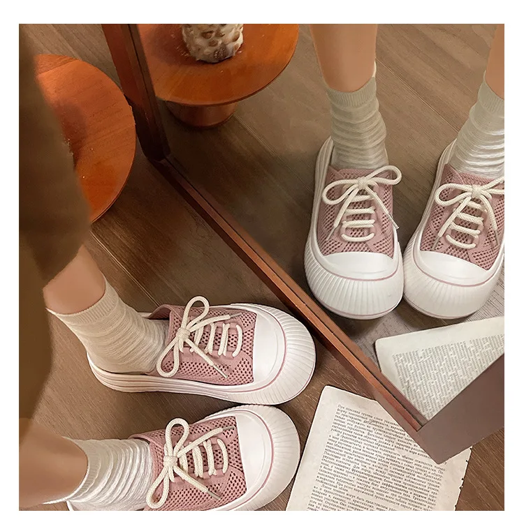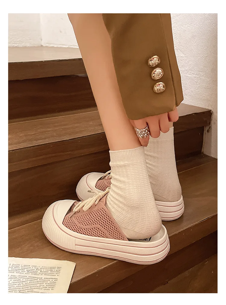 Zapatillas de plataforma de verano con cordones de malla transpirable para mujer, zapatos de calle para el hogar, sandalias sin cordones de estilo coreano con suela gruesa para niñas