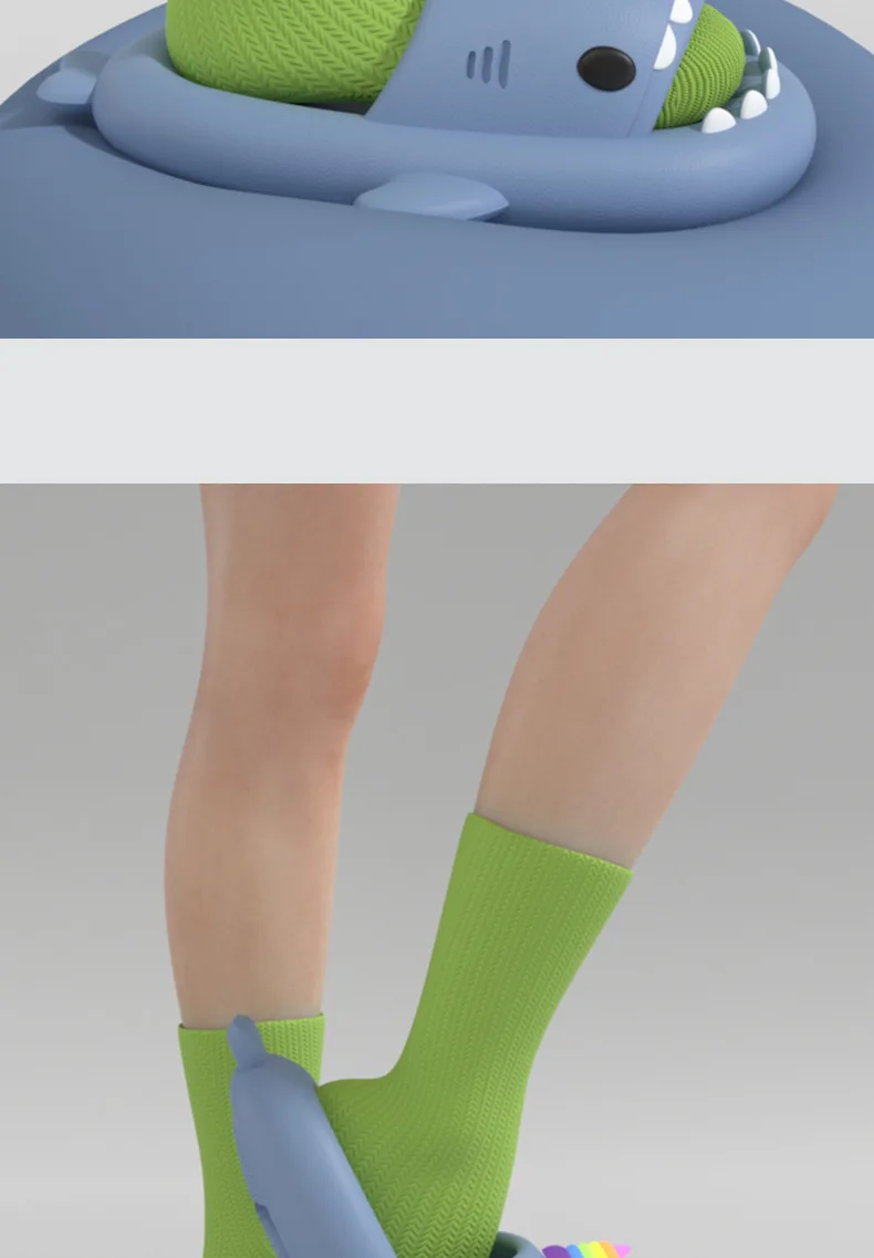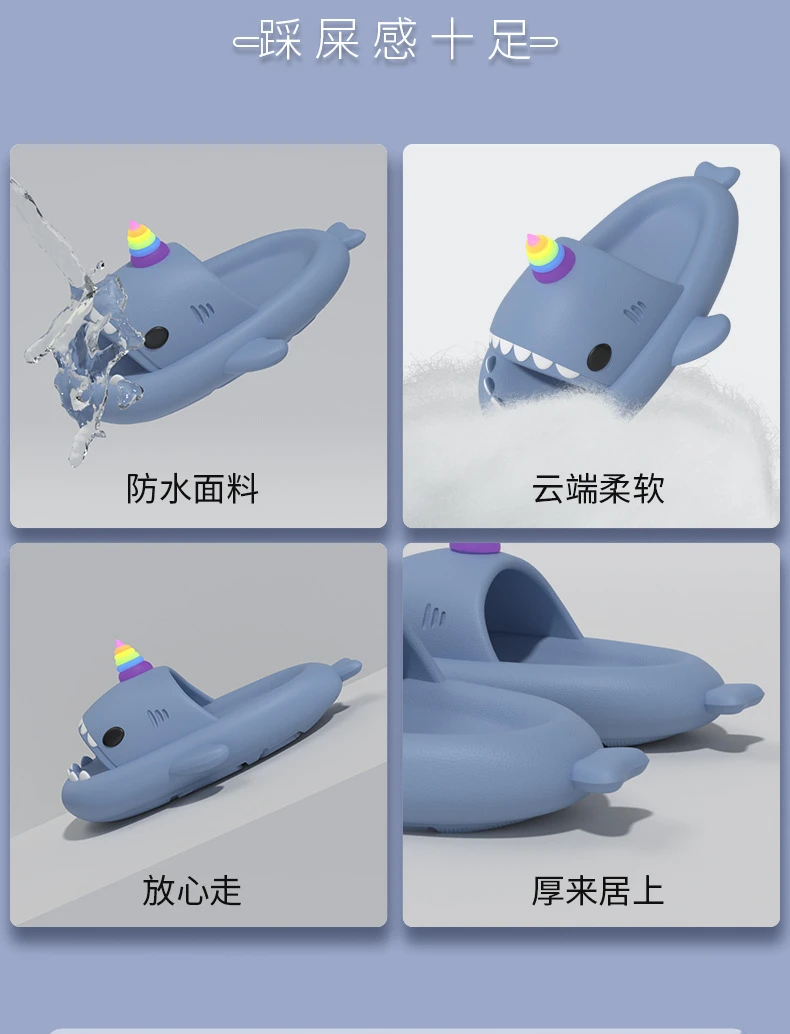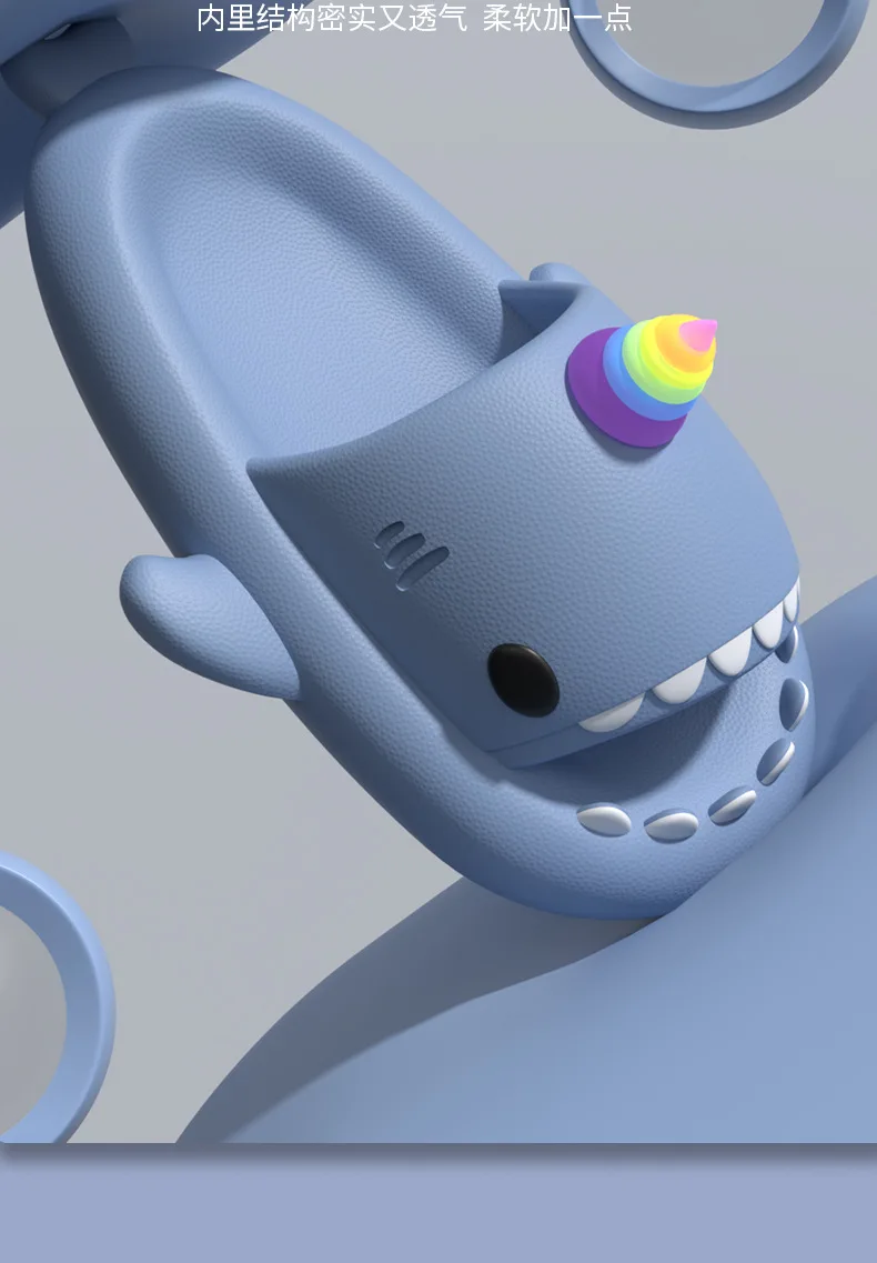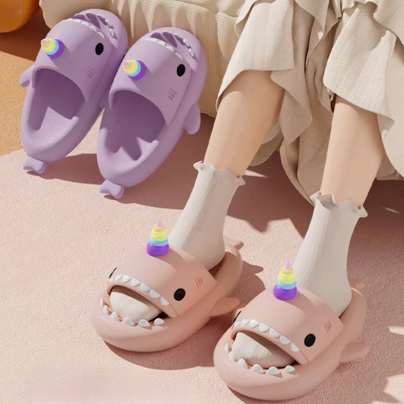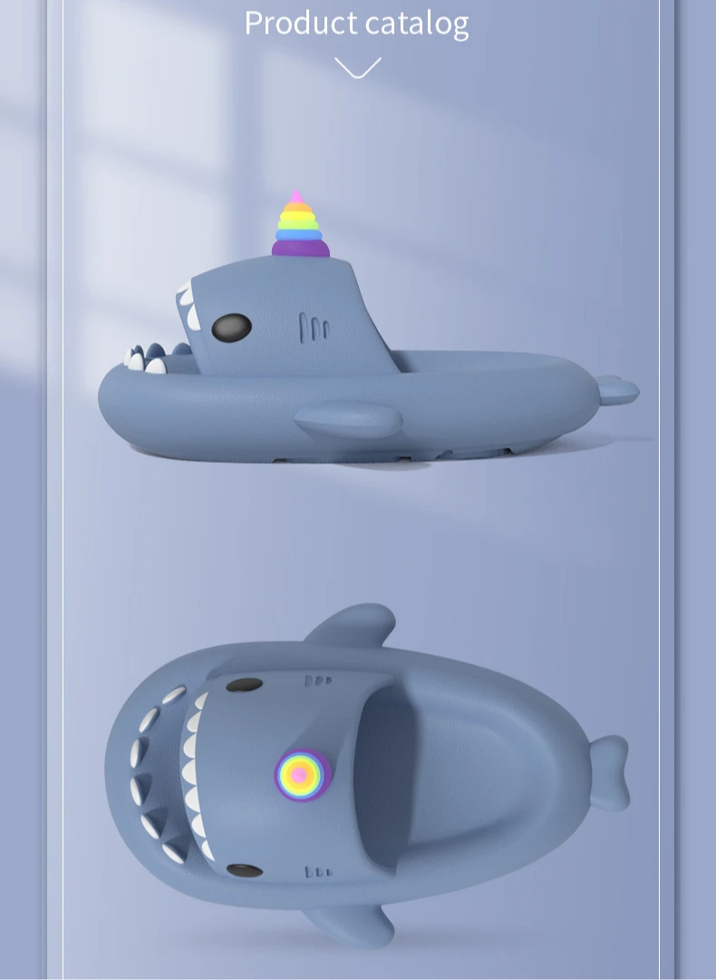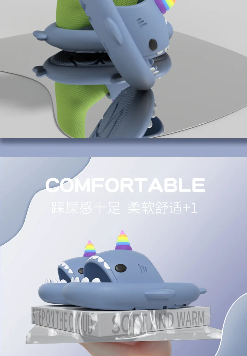 Comprar Zapatillas de tiburón de suela gruesa de 4CM para mujer y hombre, zapatos de plataforma de verano, aletas brillantes de noche, toboganes de playa para el hogar con dibujos animados DIY