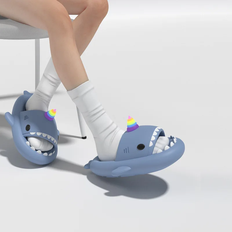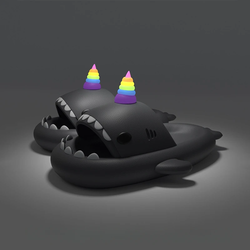 Comprar Zapatillas de tiburón de suela gruesa de 4CM para mujer y hombre, zapatos de plataforma de verano, aletas brillantes de noche, toboganes de playa para el hogar con dibujos animados DIY