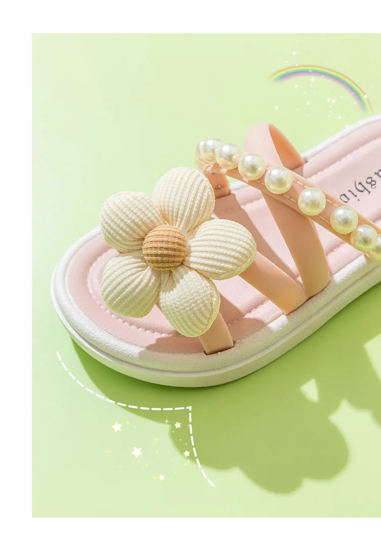 Comprar Zapatillas de verano para niña, chanclas antideslizantes de suela gruesa con flores, Chanclas de playa de princesa