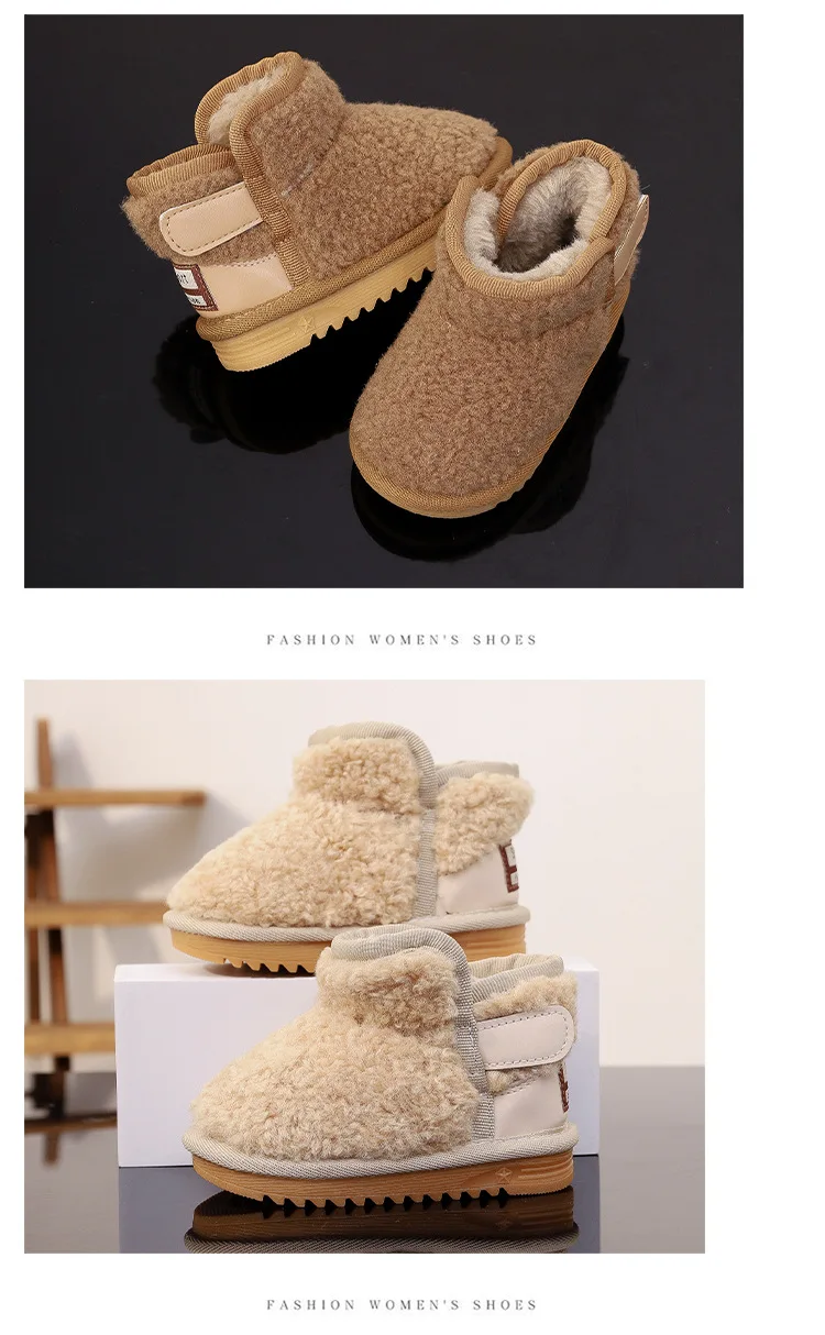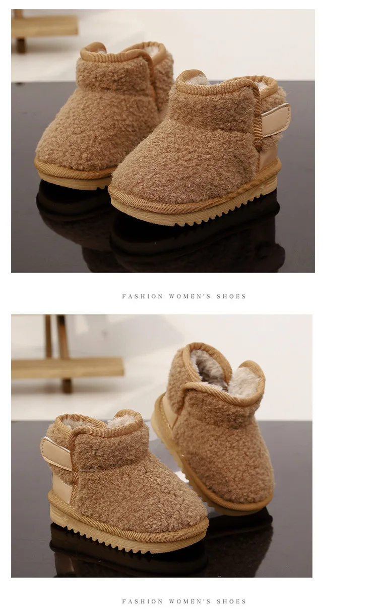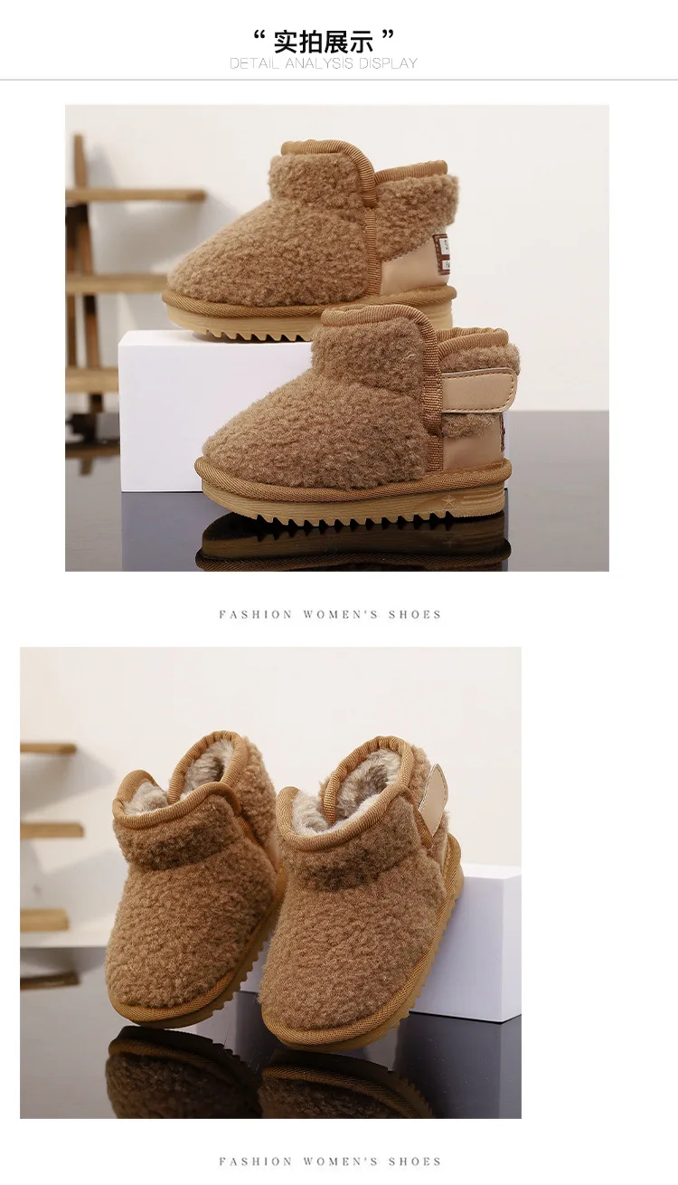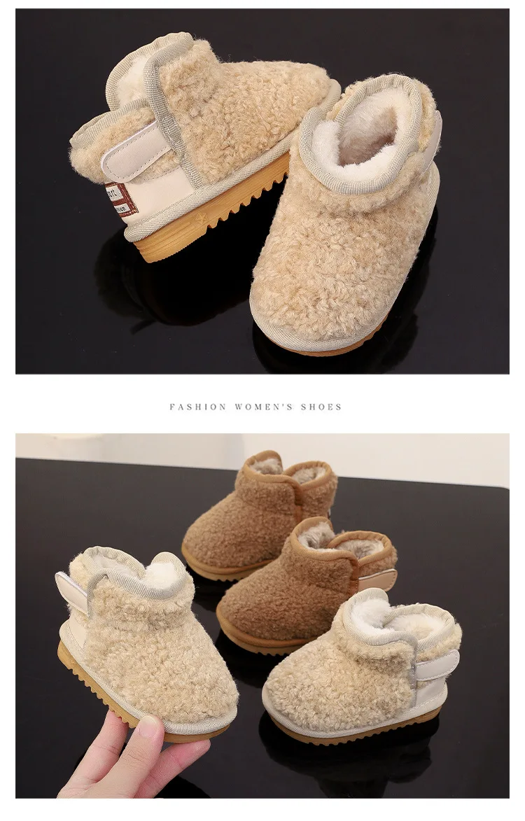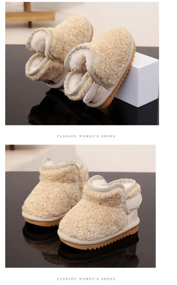 Zapato de algodón para caminar para bebé, versión coreana, bota de nieve Retro para niña, zapatos planos simples e informales antideslizantes, botas cortas con cinturón blanco cálido, 2025