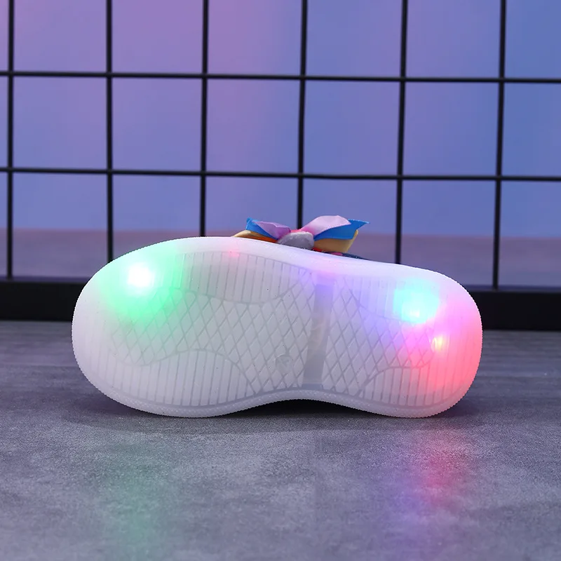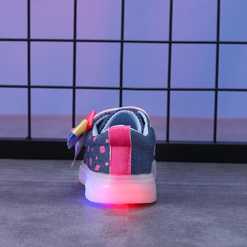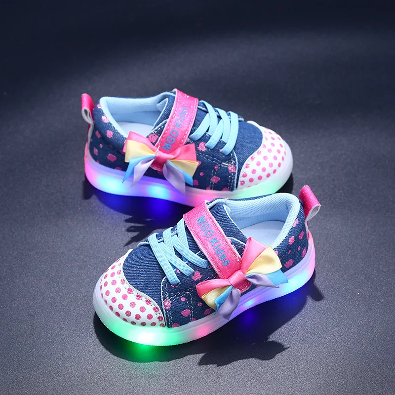 Zapato informal para niños 2025, nuevo zapato iluminado de fondo plano para las cuatro estaciones, zapatos deportivos a la moda para niños, zapatos escolares con lazo para niñas